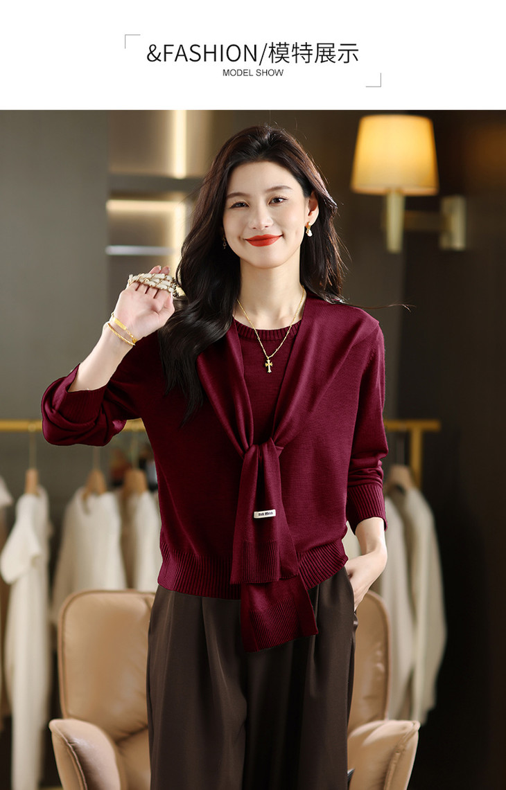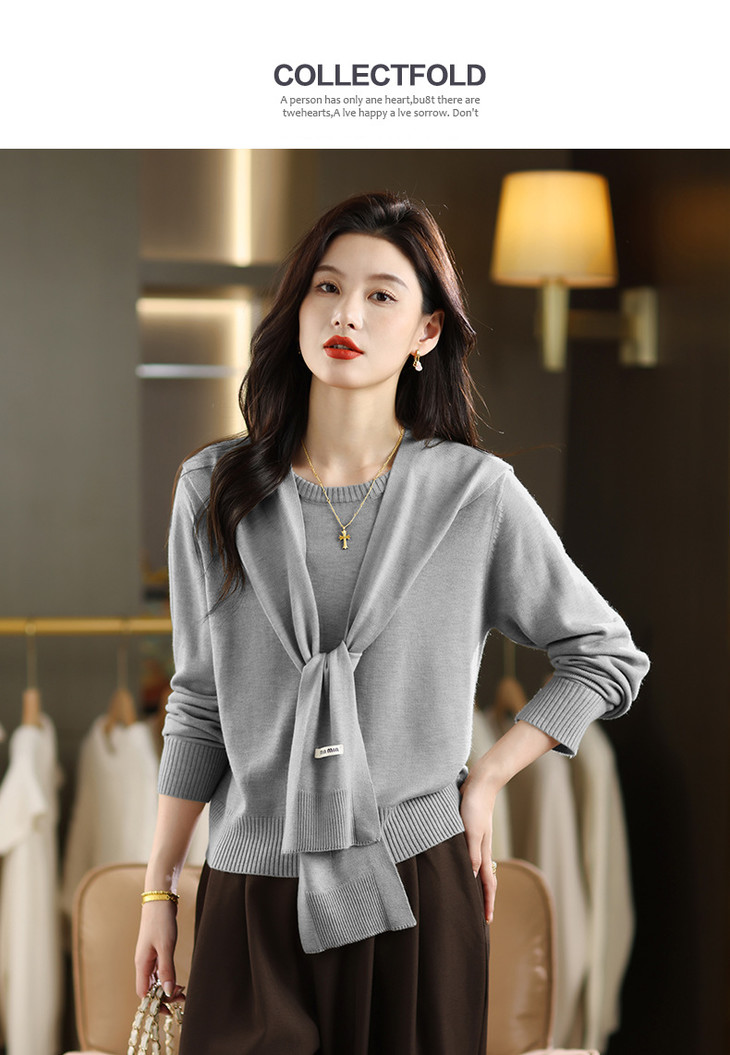 圆领长袖t恤,带披肩假两件针织衫上衣CC-101-9512