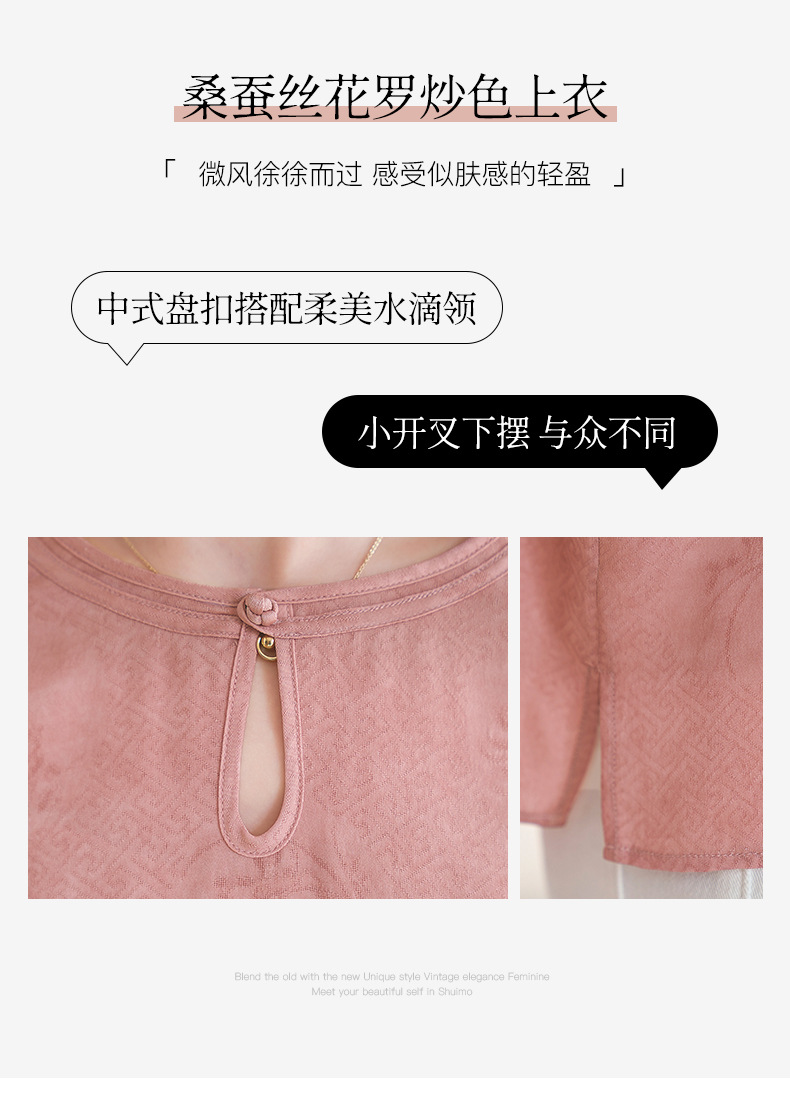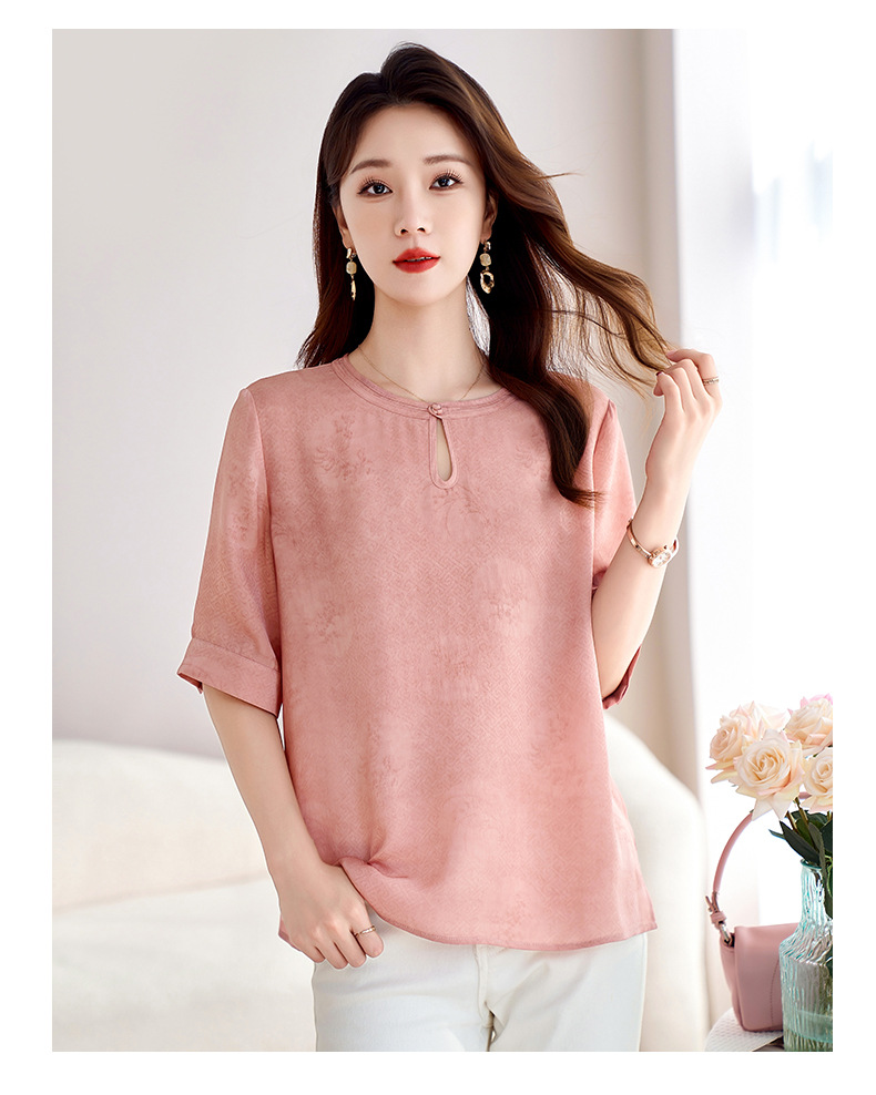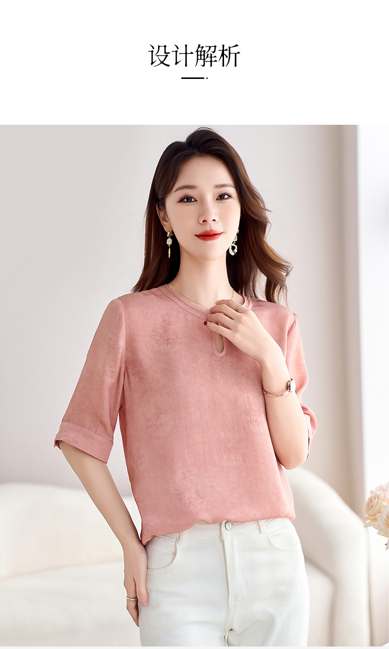 桑蚕丝花螺炒色短袖衬衣,显瘦圆领真丝衬衫SM-12599910