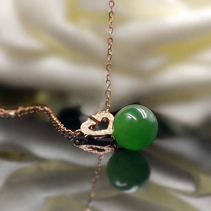 18K玫瑰金和田玉(碧玉)镶钻玉珠项链