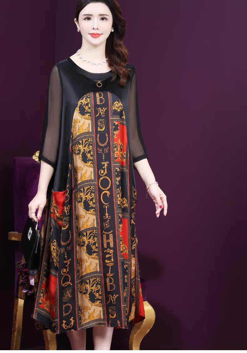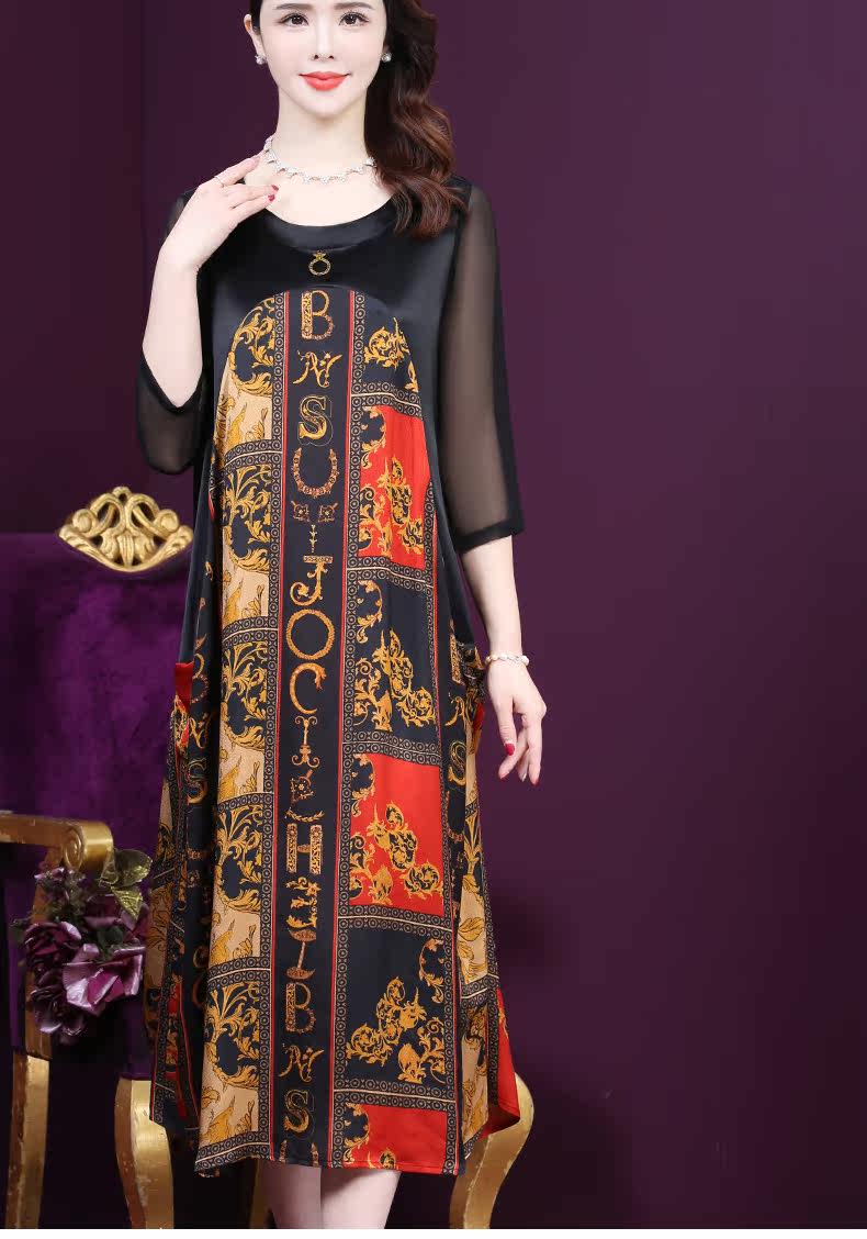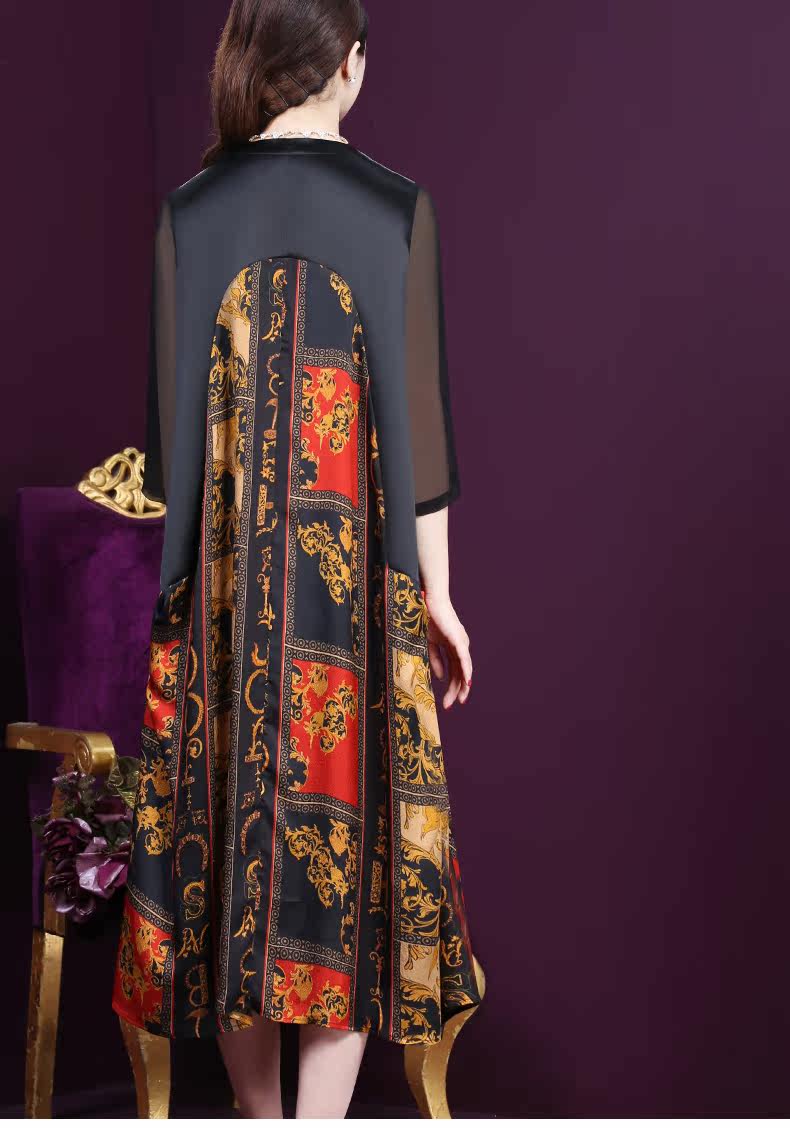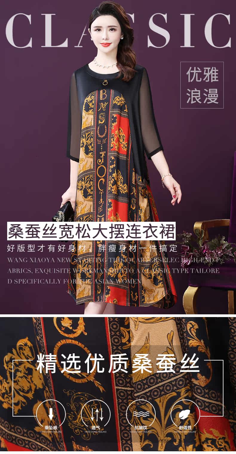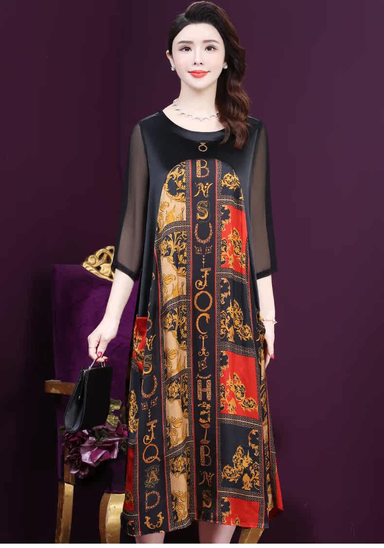 WXY-9180夏装新款真丝宽松优雅印花连衣裙