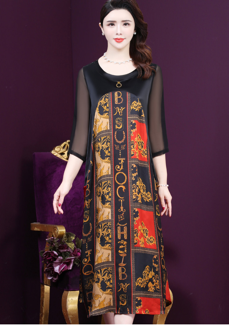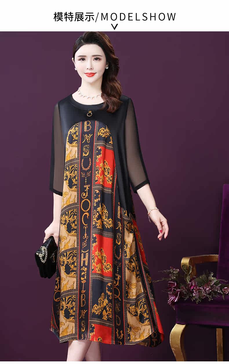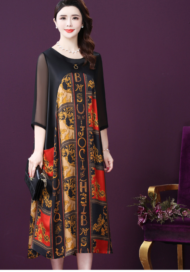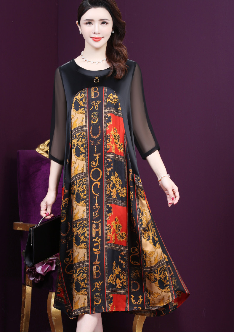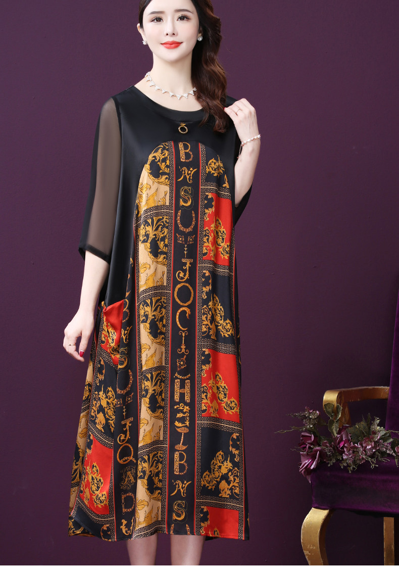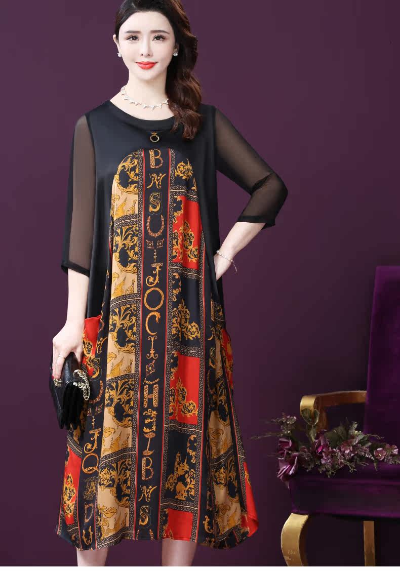 WXY-9180夏装新款真丝宽松优雅印花连衣裙