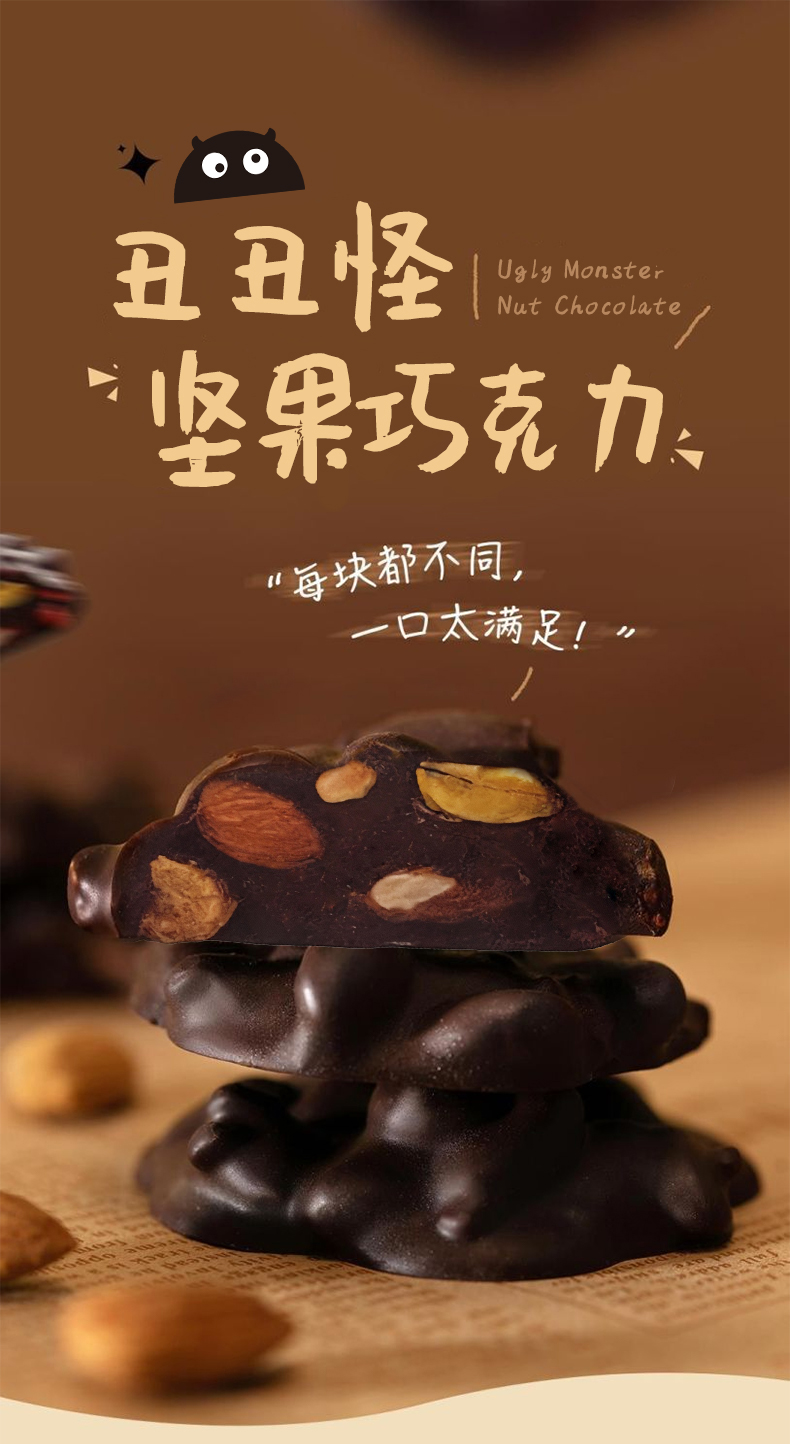 七年五季丑丑怪坚果巧克力 纯可可脂,大粒坚果