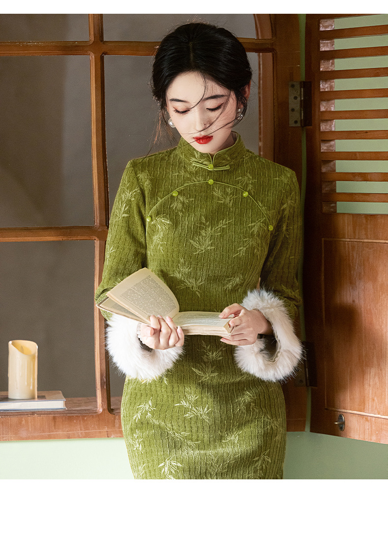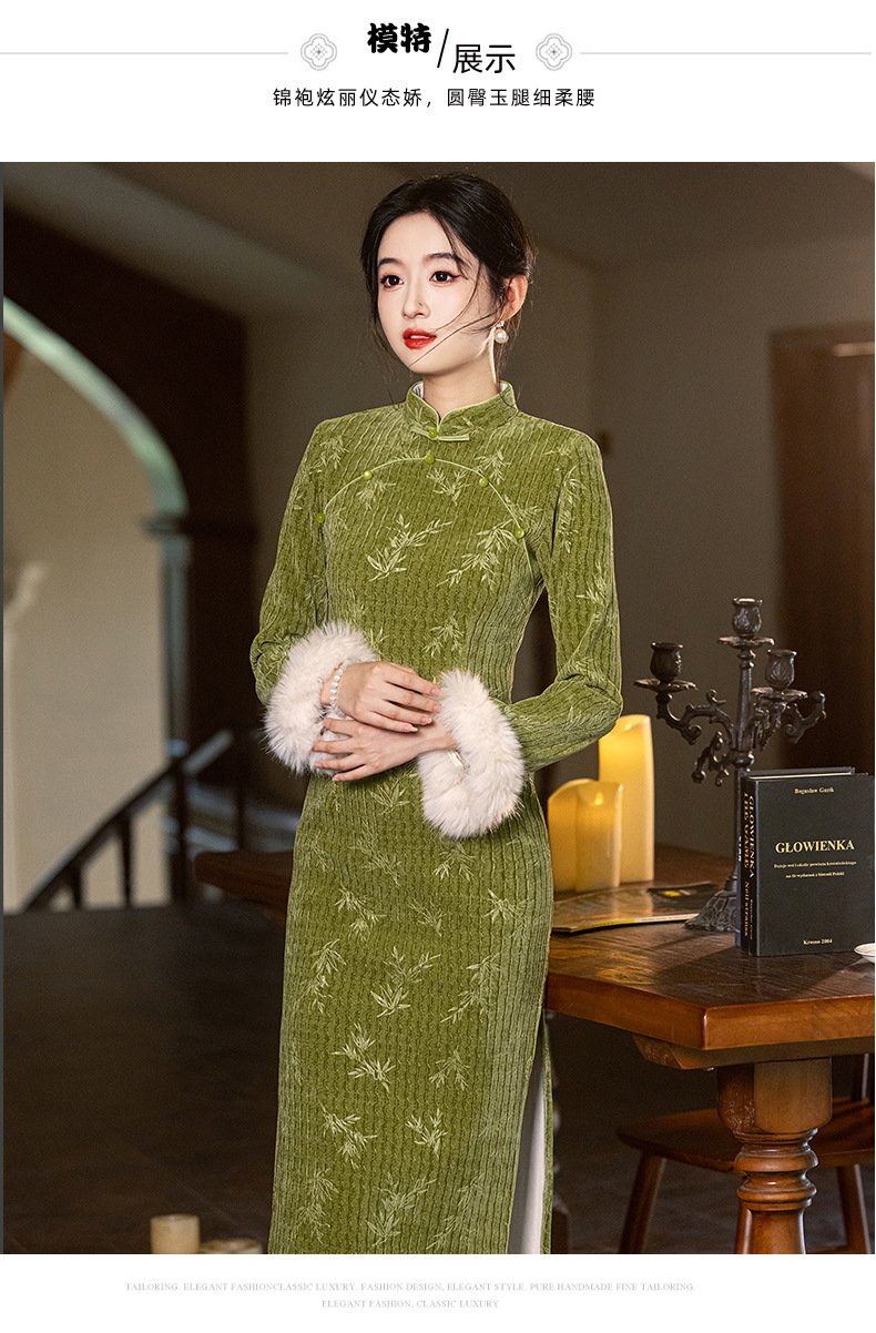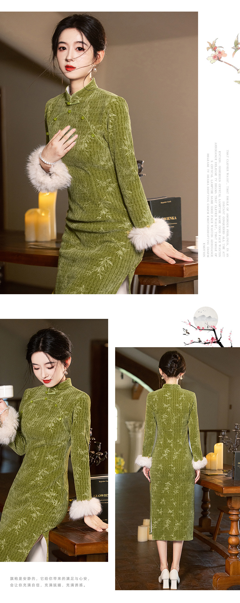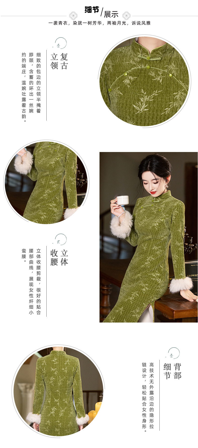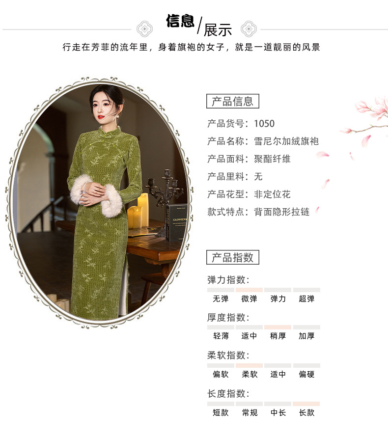 秋款显瘦复古改良加绒雪尼尔旗袍BJS1050