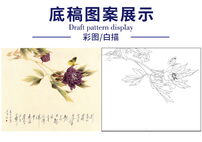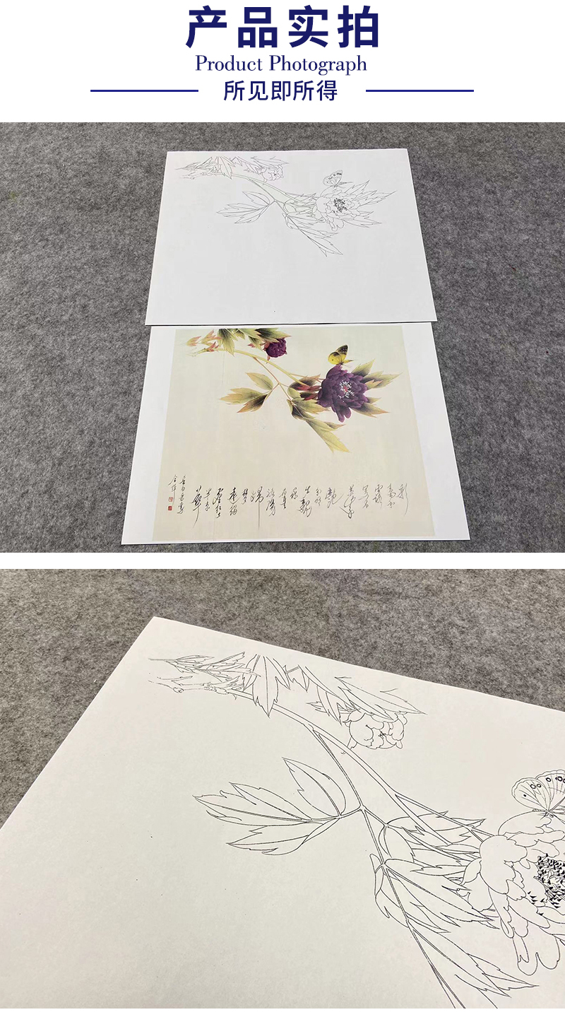 【无步骤】李长白工笔花鸟画白描底稿《碟恋花 》斗方小品册页-LB05