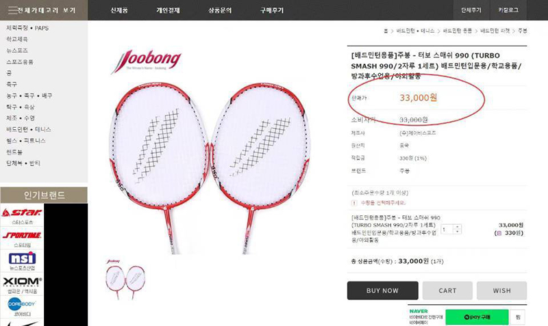 品名:韩国JOOBONG990羽毛球拍(两支)