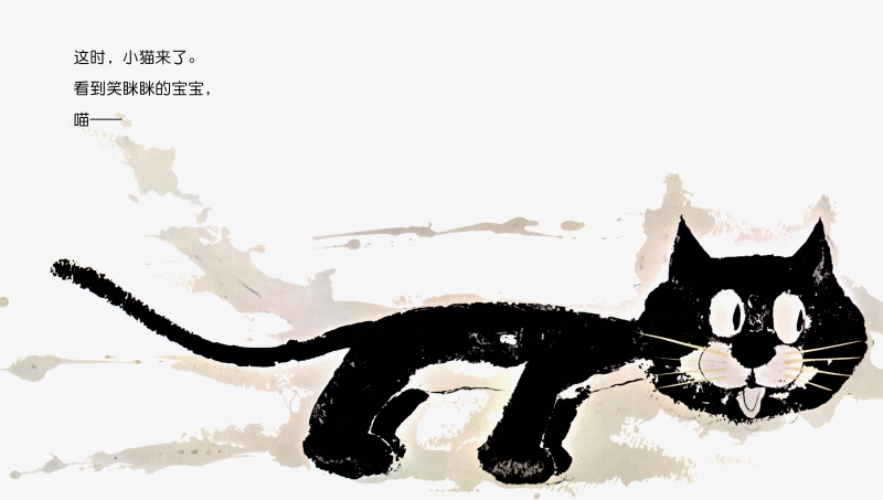 宝宝一个人,笑眯眯地坐着。这时,小猫来了,看到笑眯眯的宝宝,小猫也学宝宝的样子,笑眯眯地坐下了。接下来,还有谁会来呢?