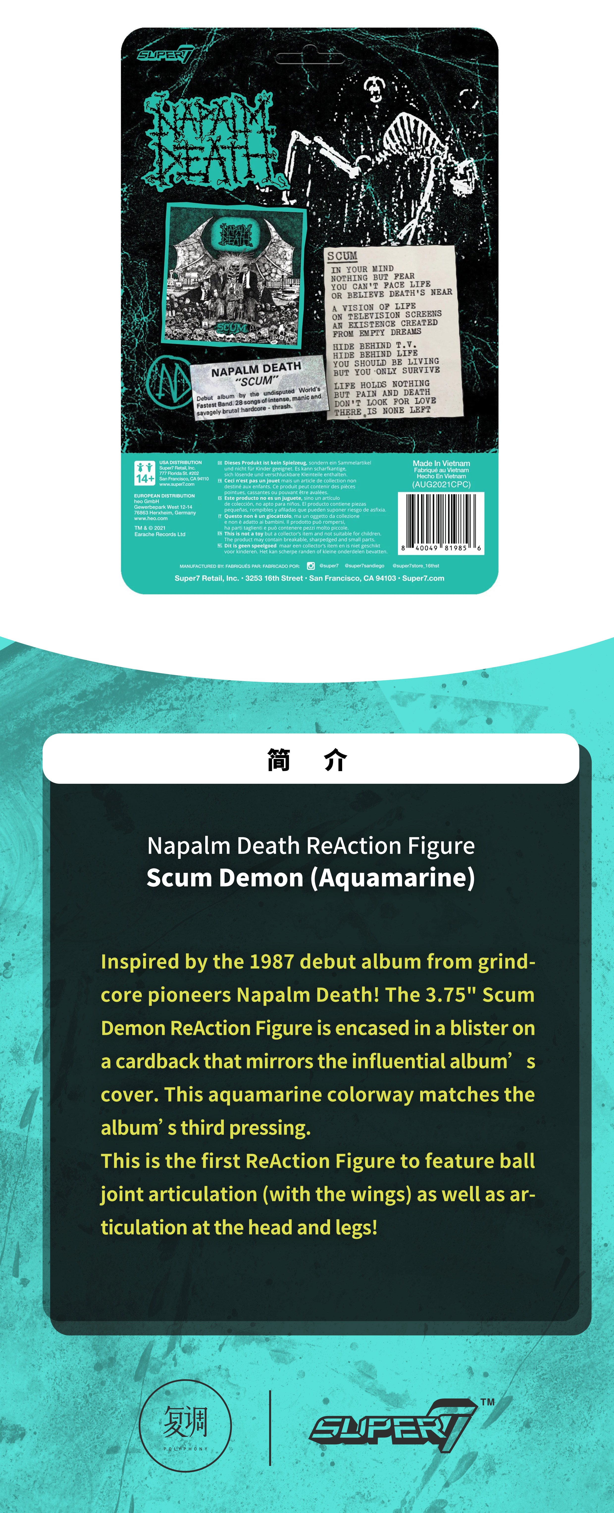 现货 Super7 Napalm Death 挂卡蓝绿色 系列3 Scum Demon