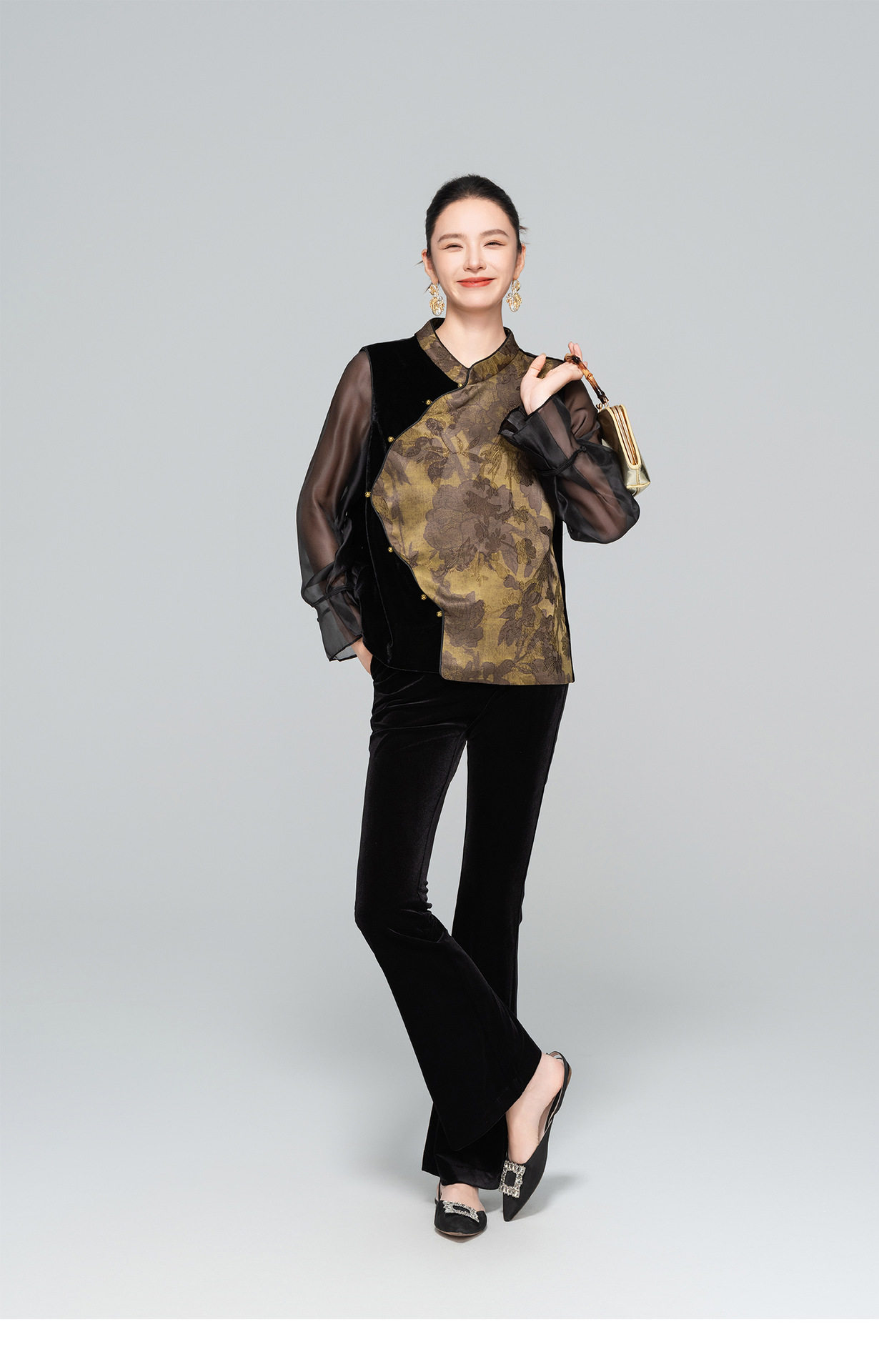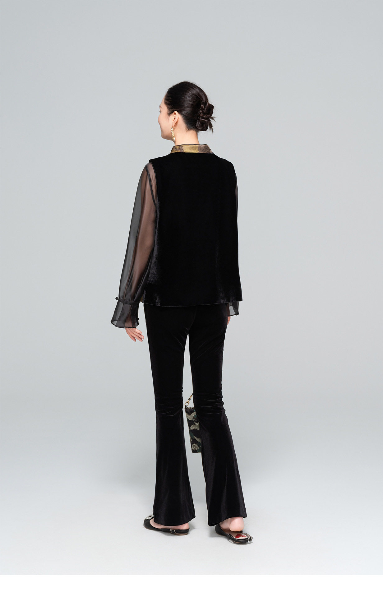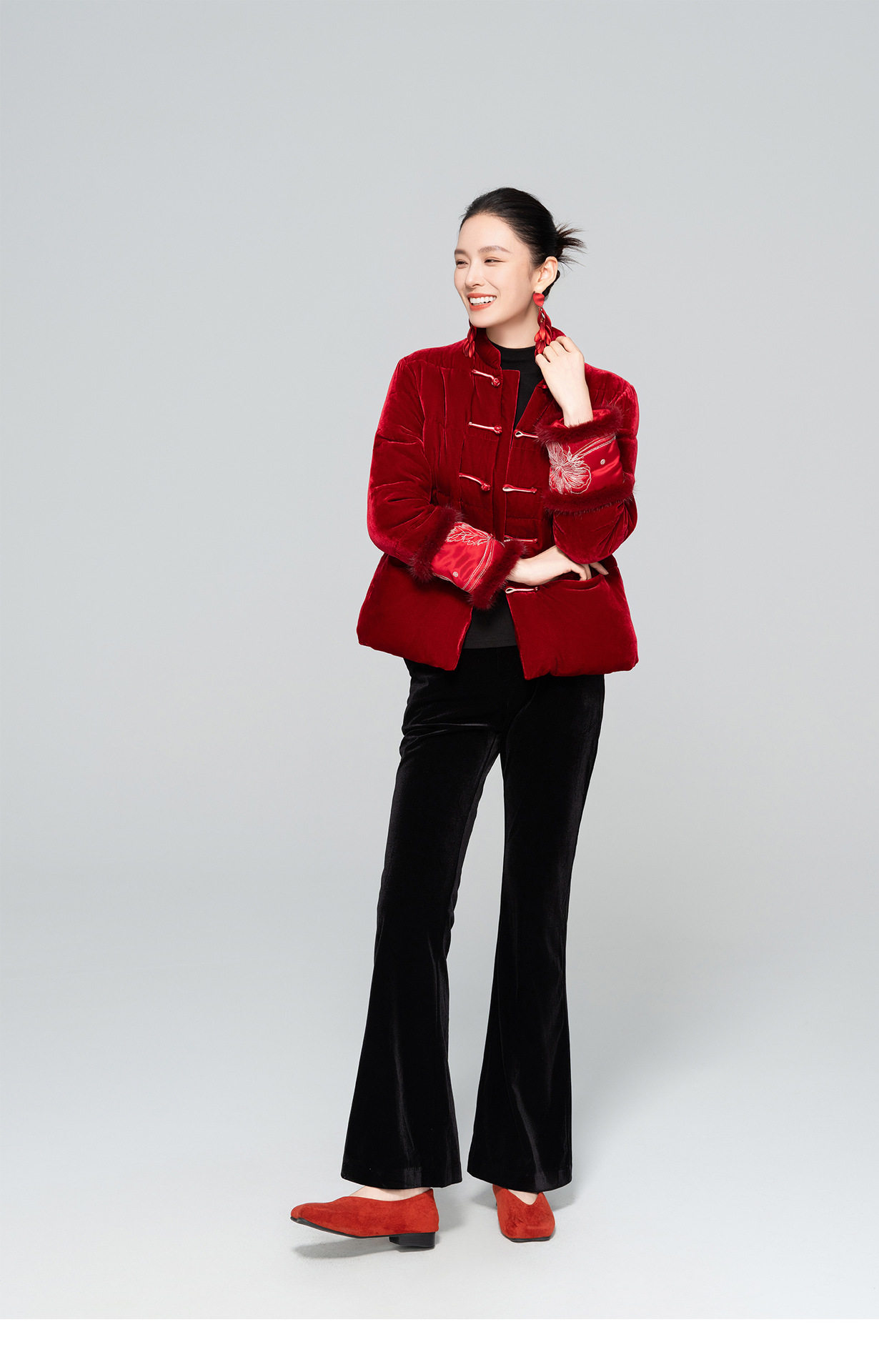 「自」全新升级【铂金会员266/天猫359/差价93】(12500)洛诗琳松紧高腰微喇裤2025冬季优雅显瘦休闲丝绒长裤