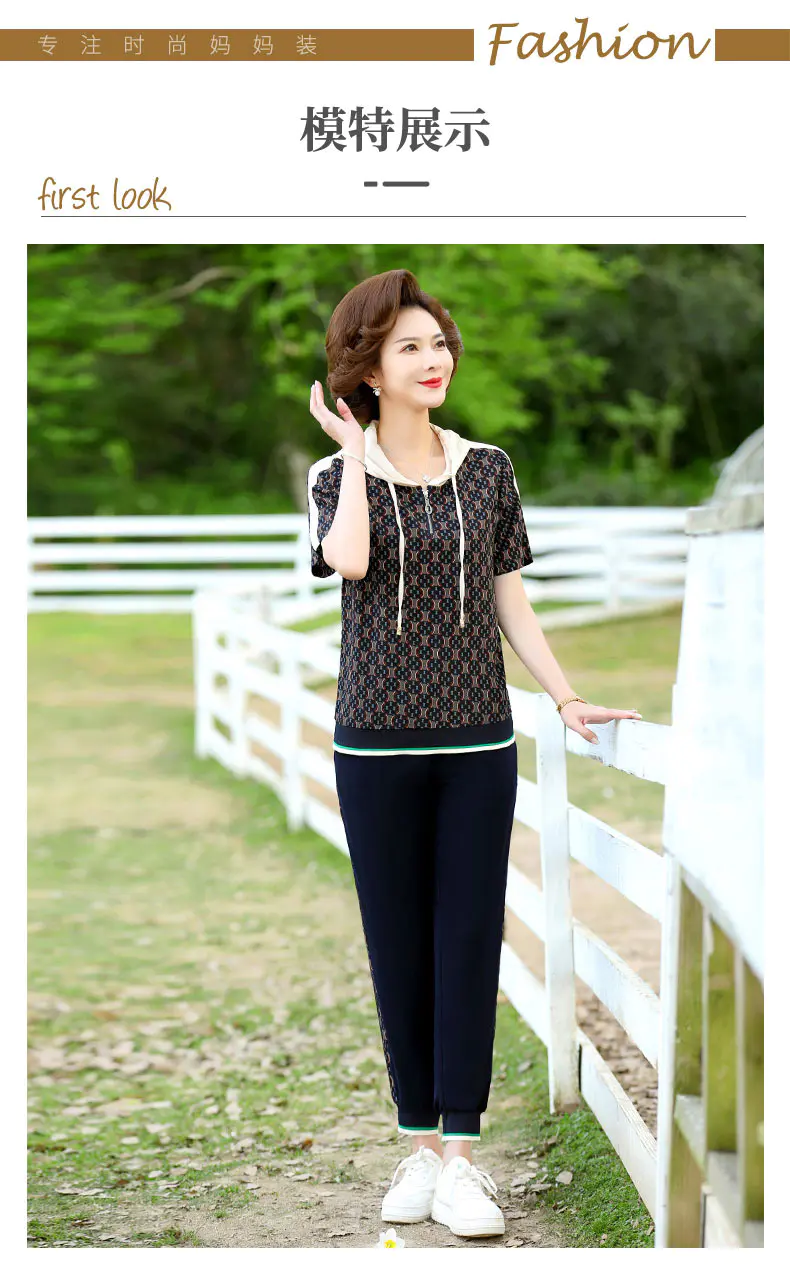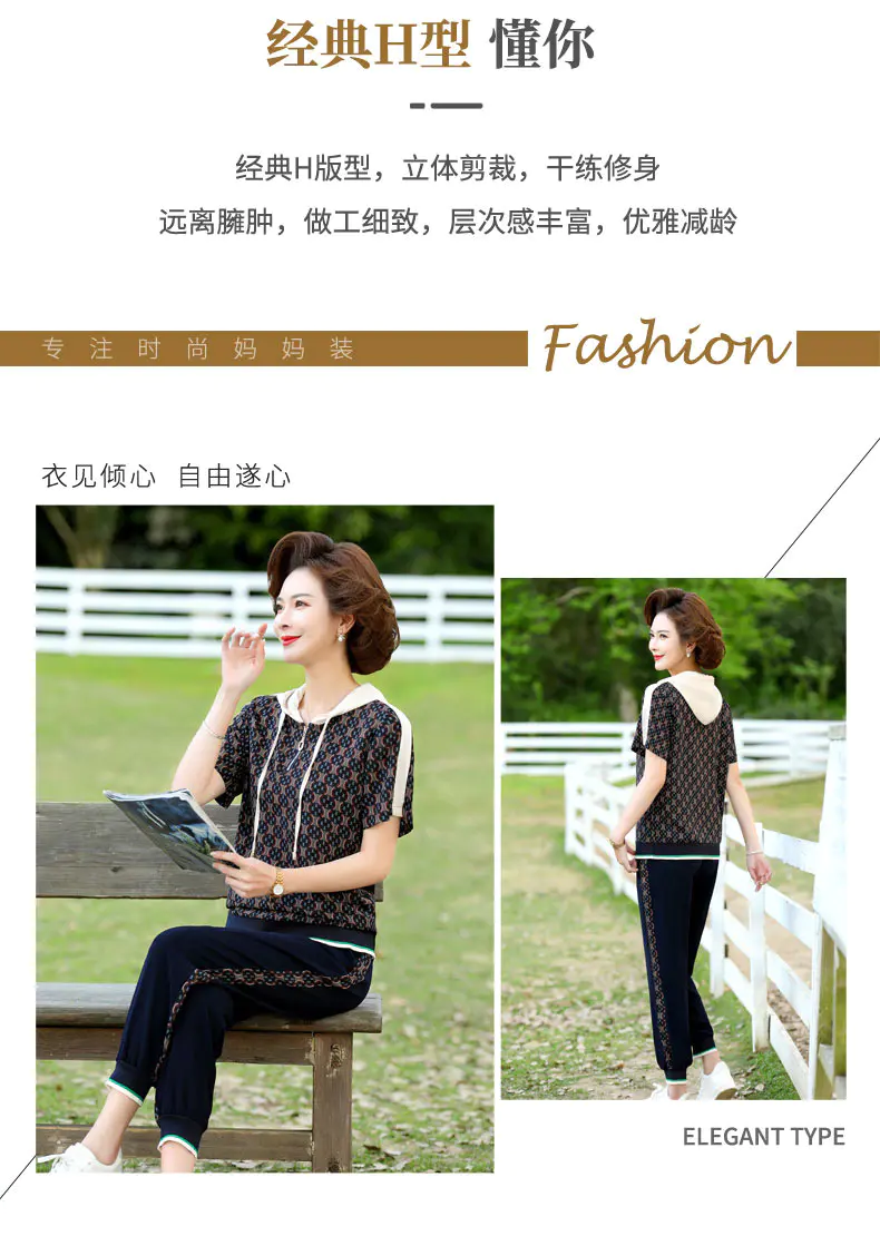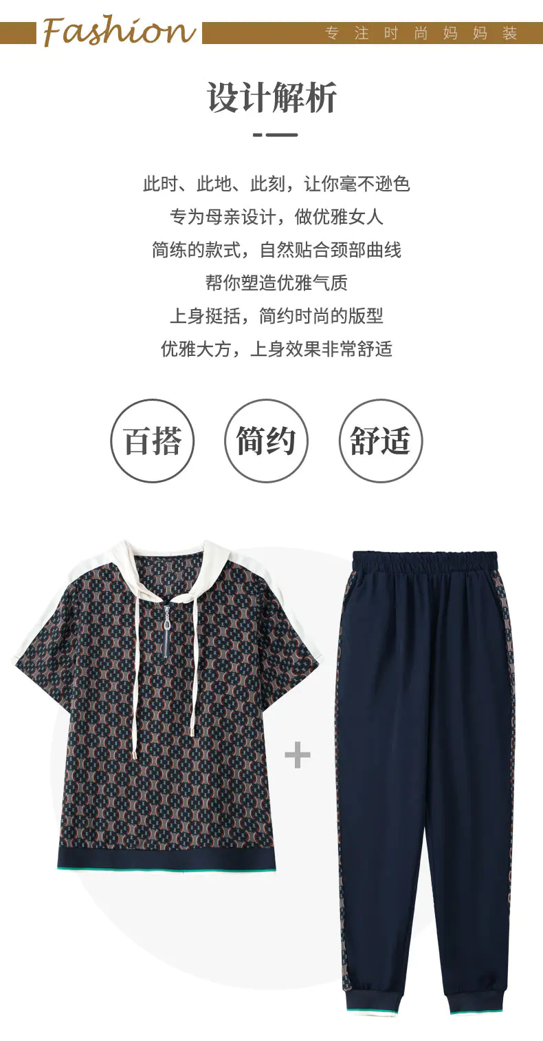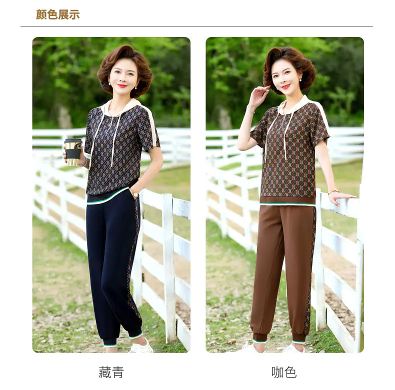 JXGW-新款休闲中年妈妈装连帽上衣小脚裤两件套气质显瘦套装