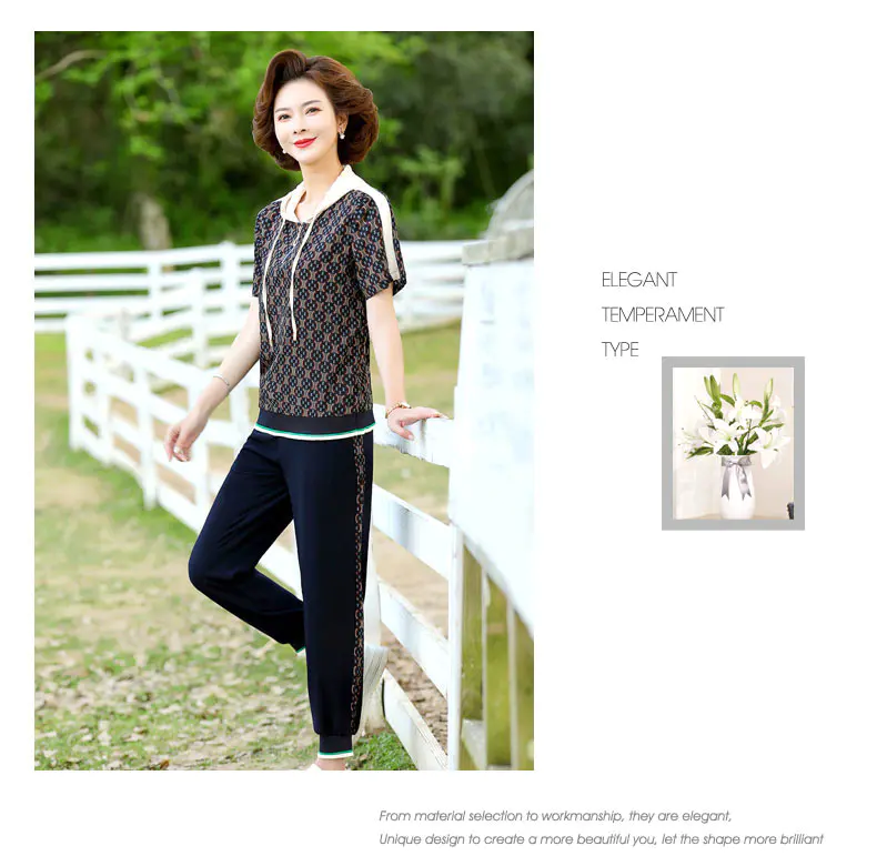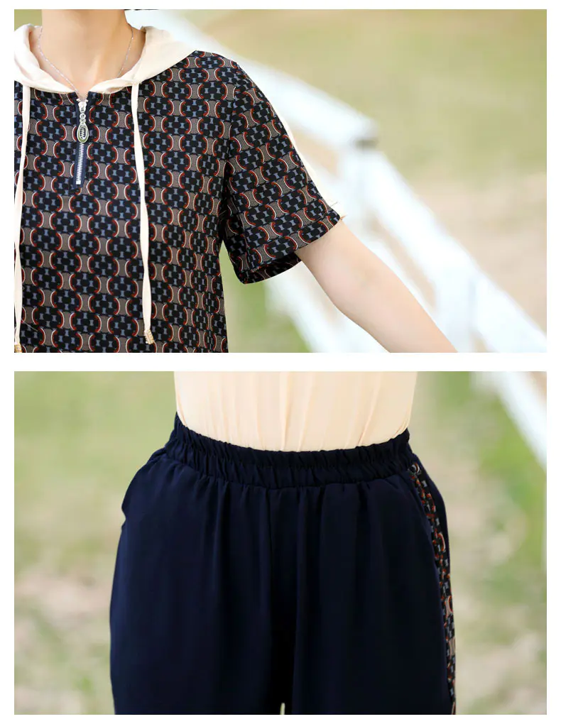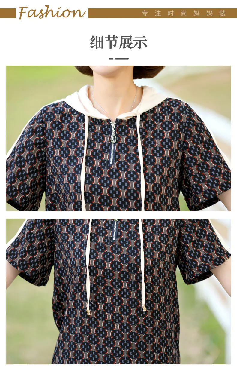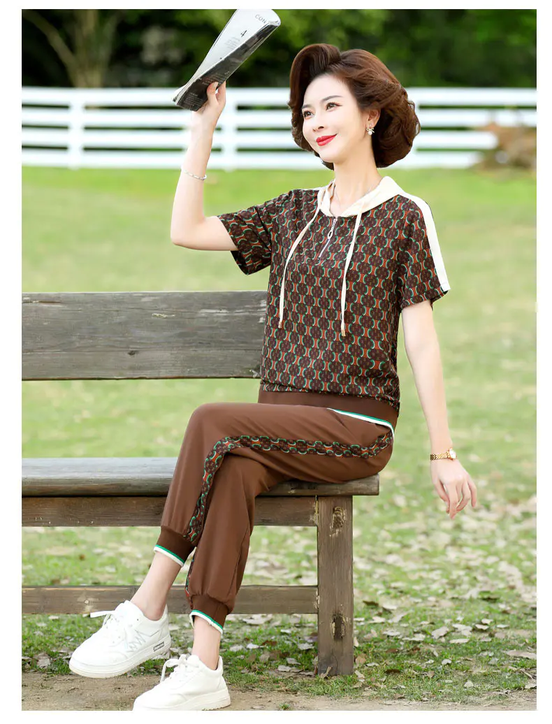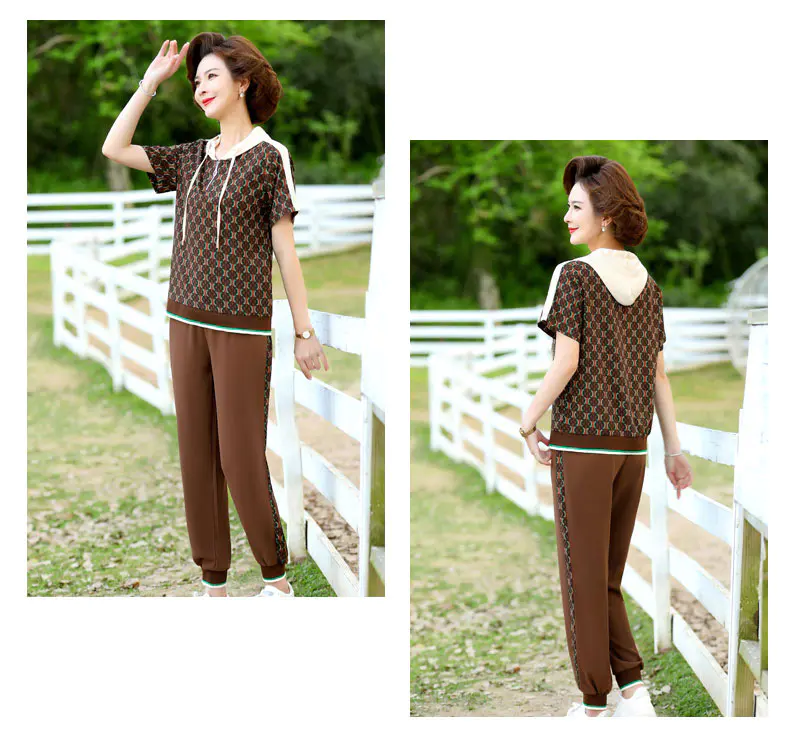 JXGW-新款休闲中年妈妈装连帽上衣小脚裤两件套气质显瘦套装
