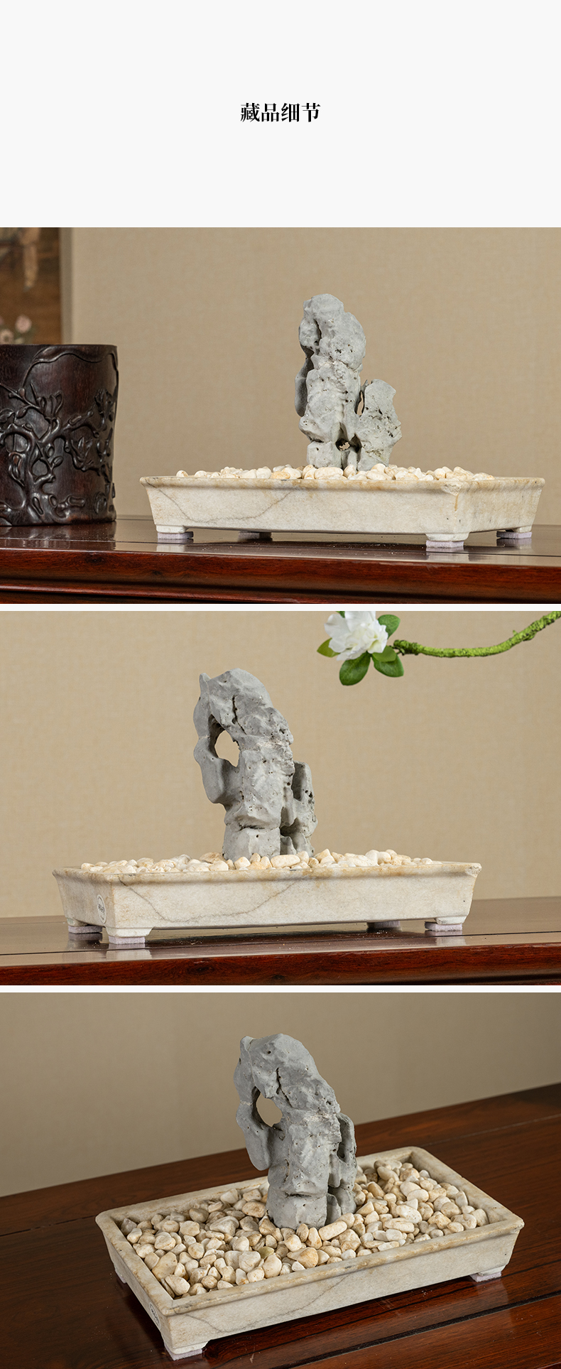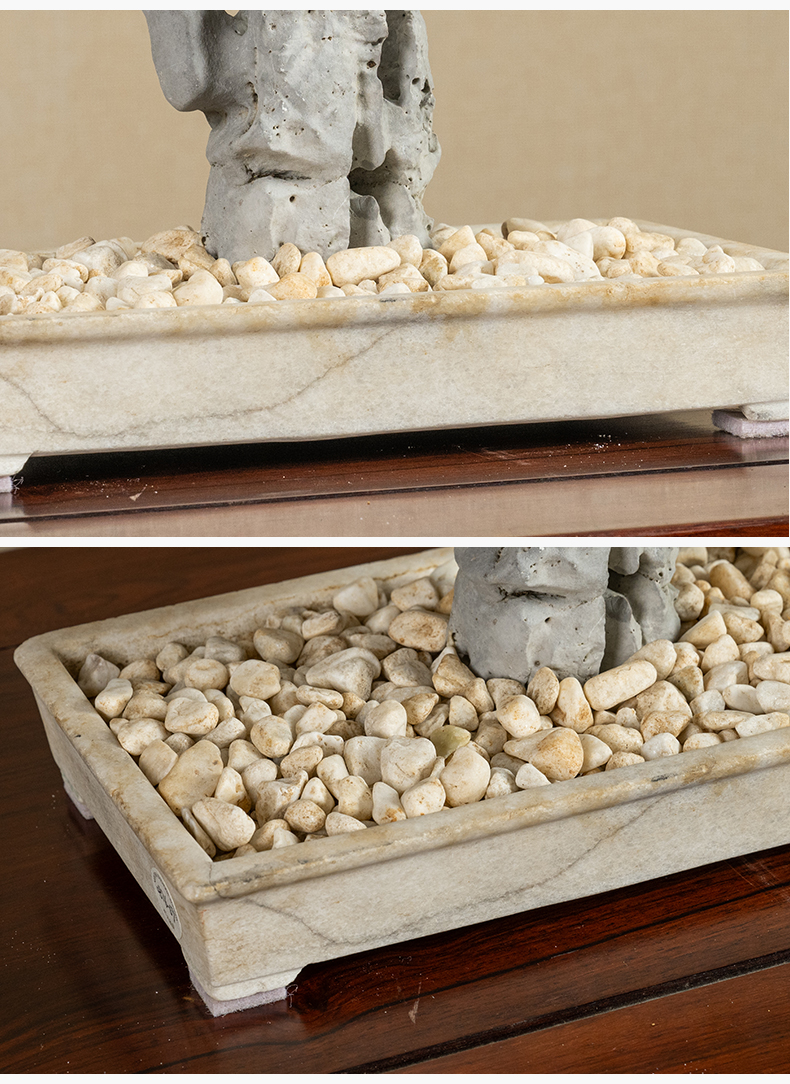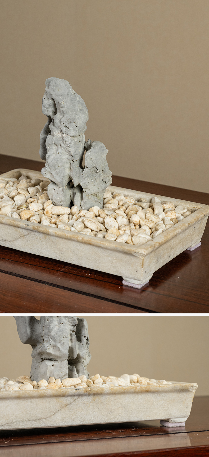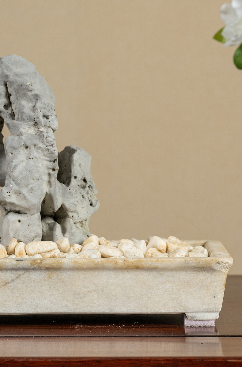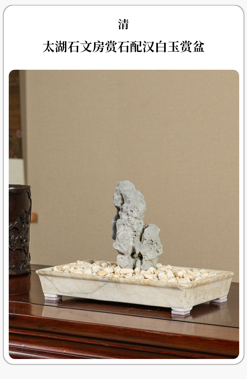 清 太湖石文房赏石配汉白玉赏盆