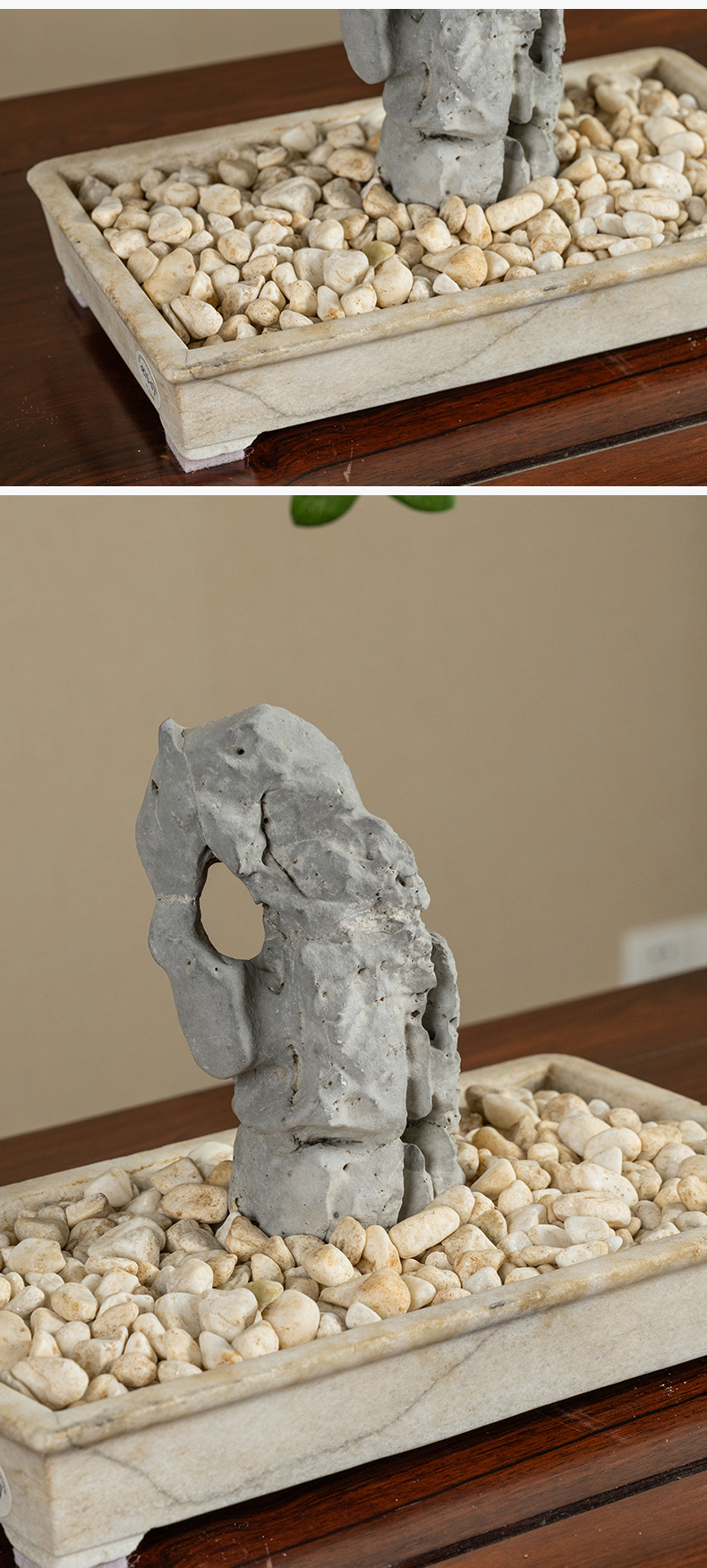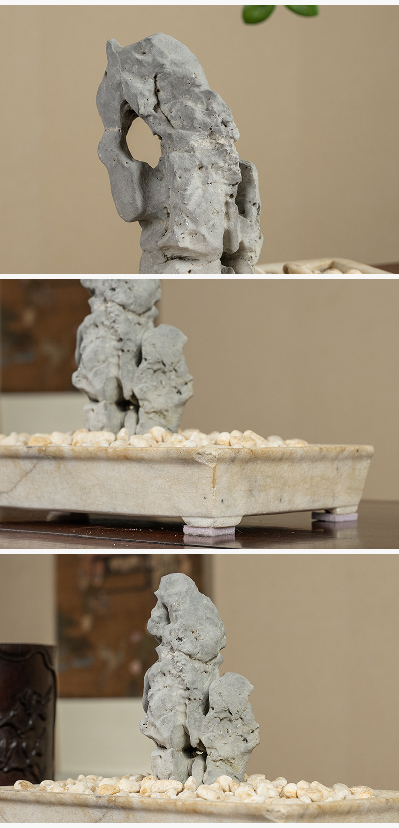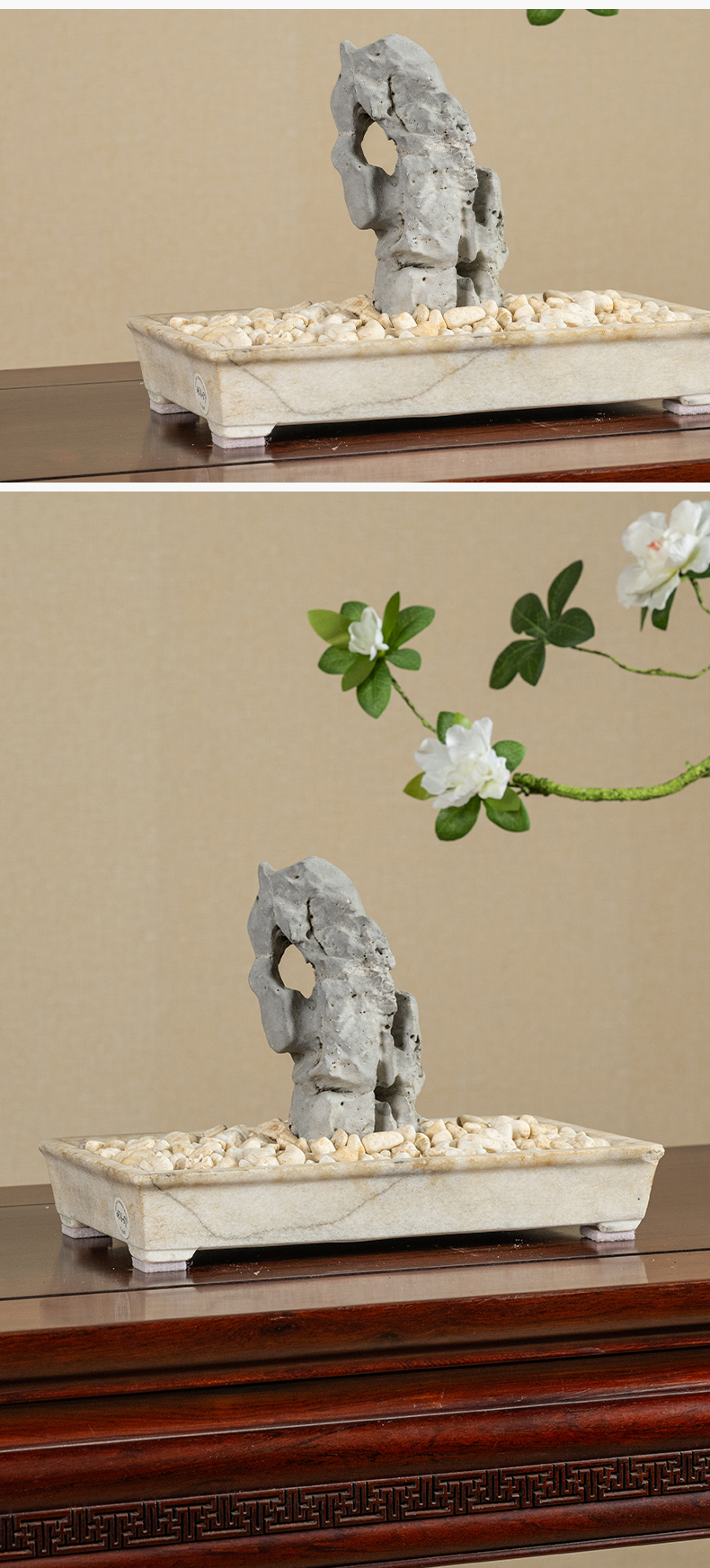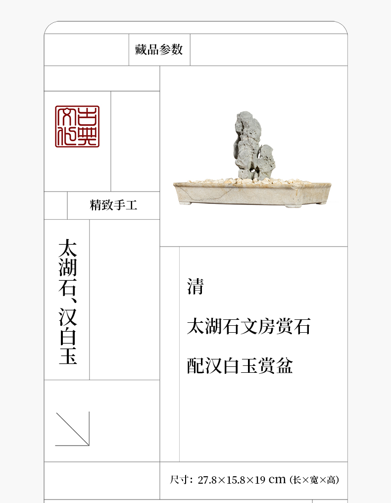 清 太湖石文房赏石配汉白玉赏盆
