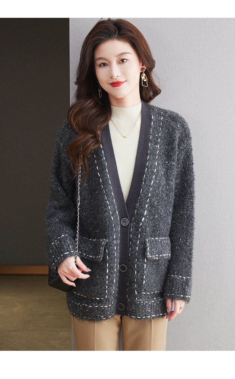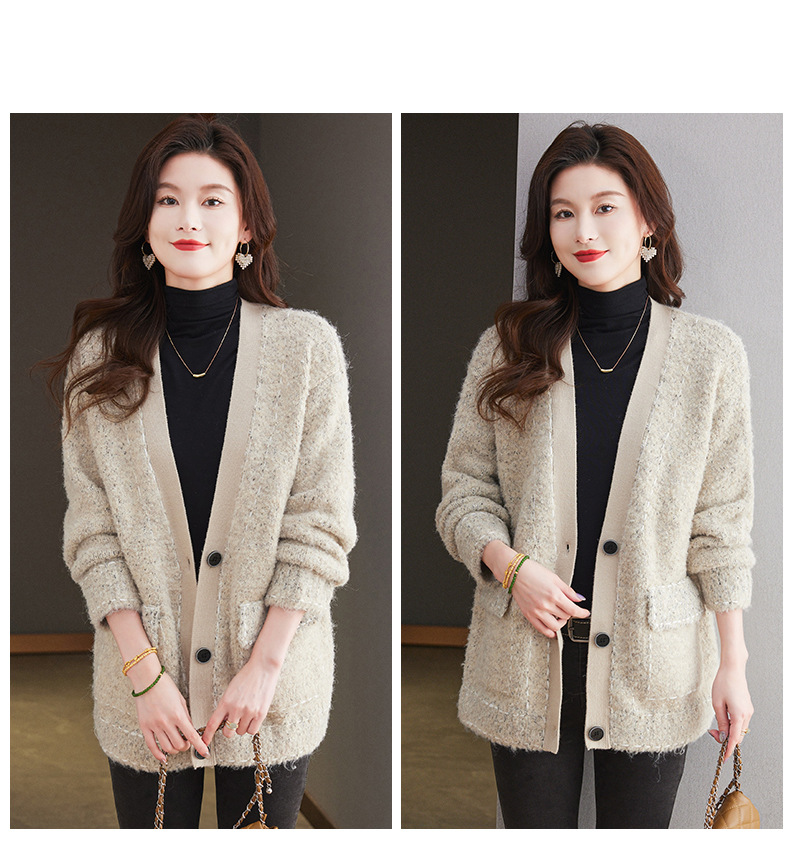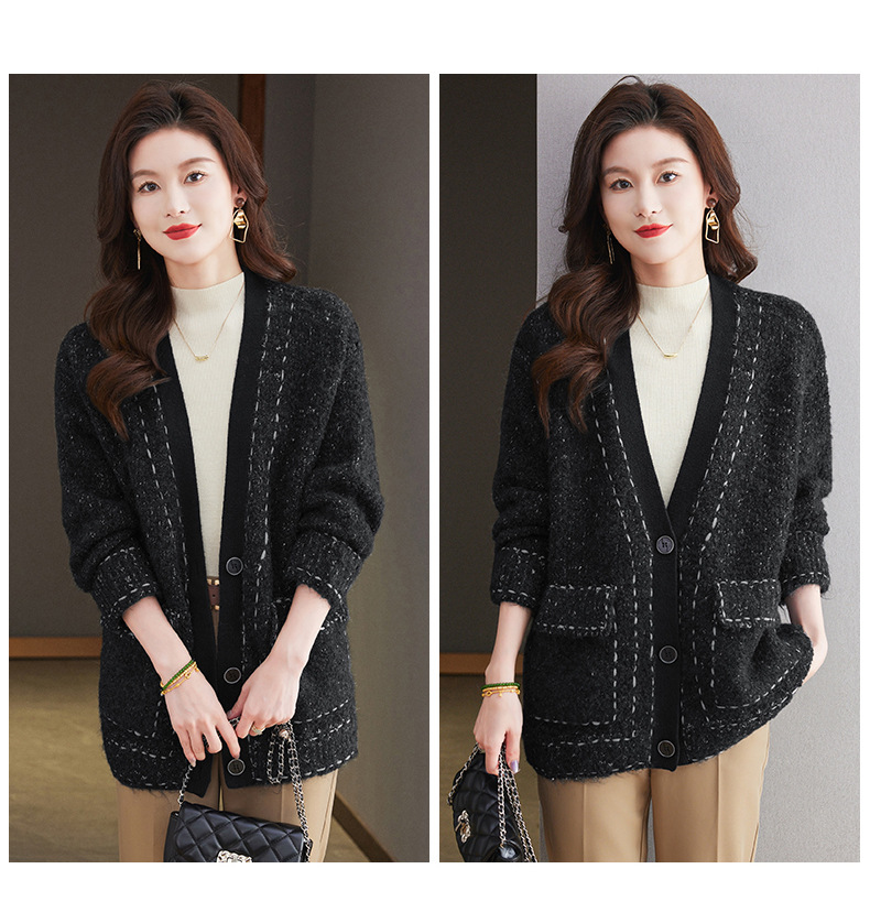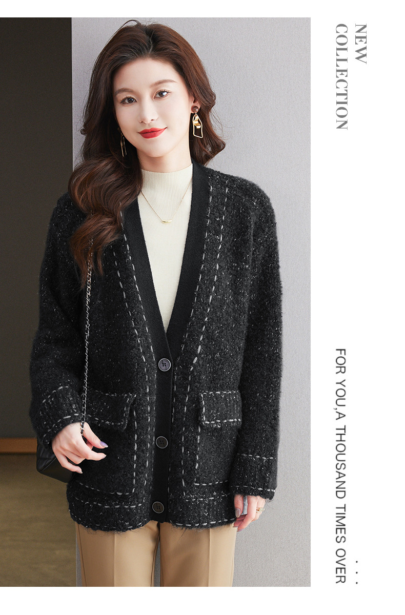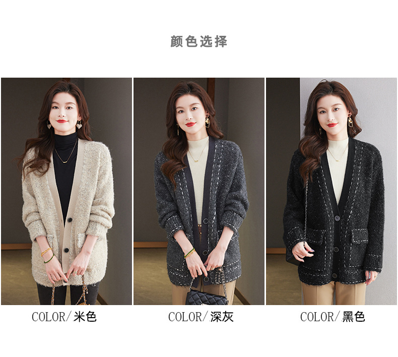 CC-10-5995大码女装外套胖mm显瘦遮肉上衣中长款洋气时尚加厚羊毛针织开衫女