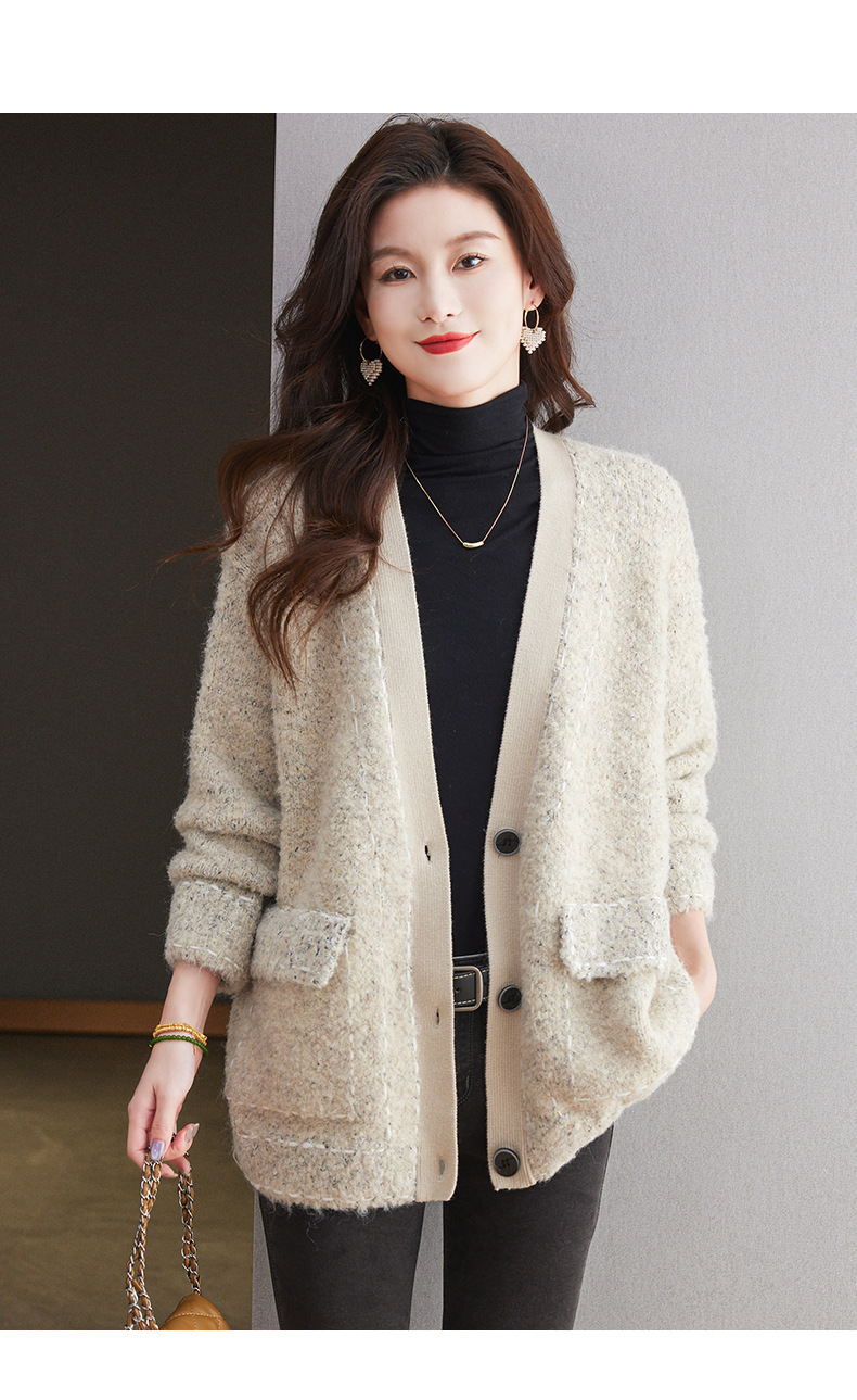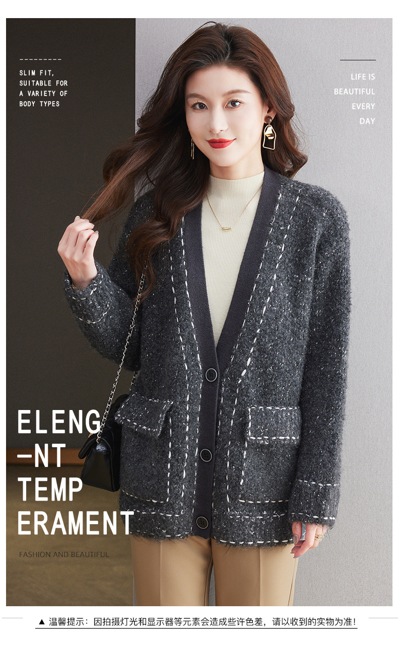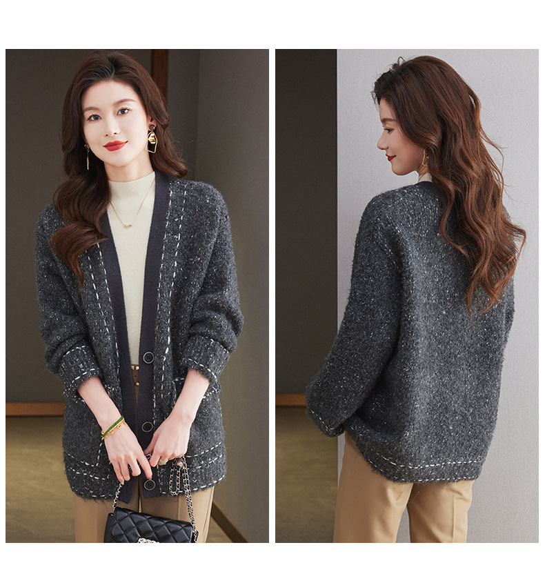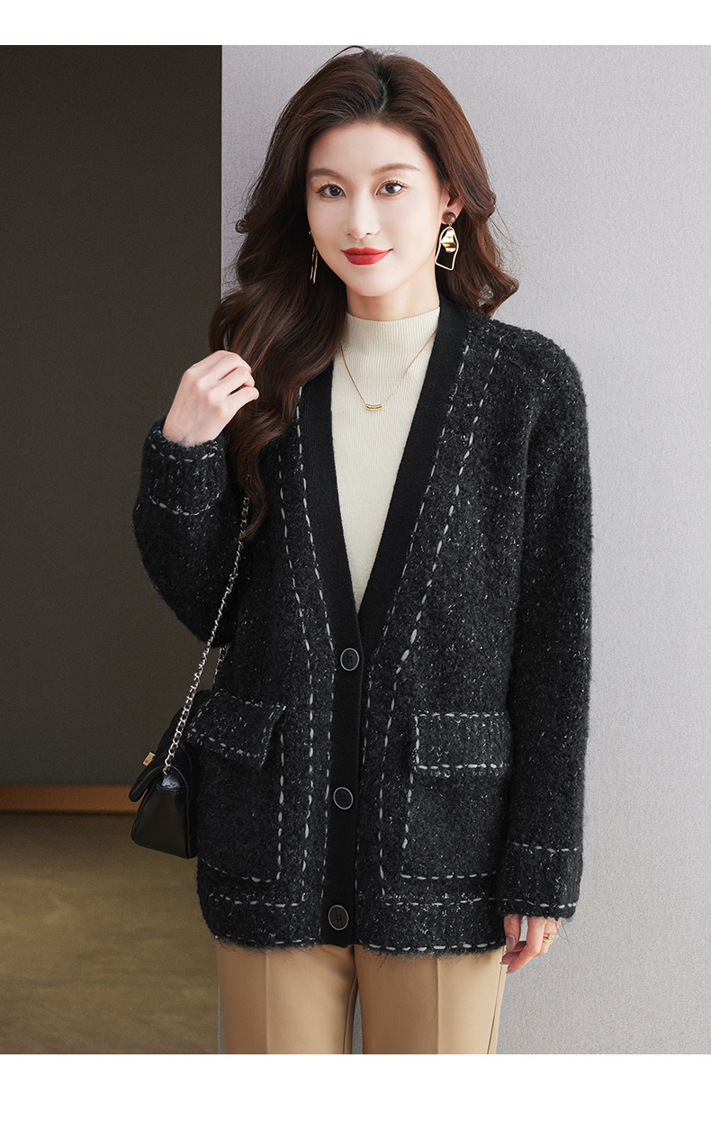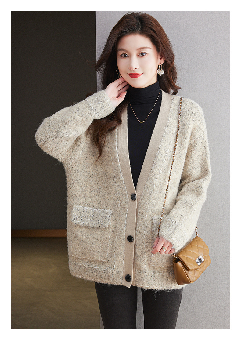 CC-10-5995大码女装外套胖mm显瘦遮肉上衣中长款洋气时尚加厚羊毛针织开衫女