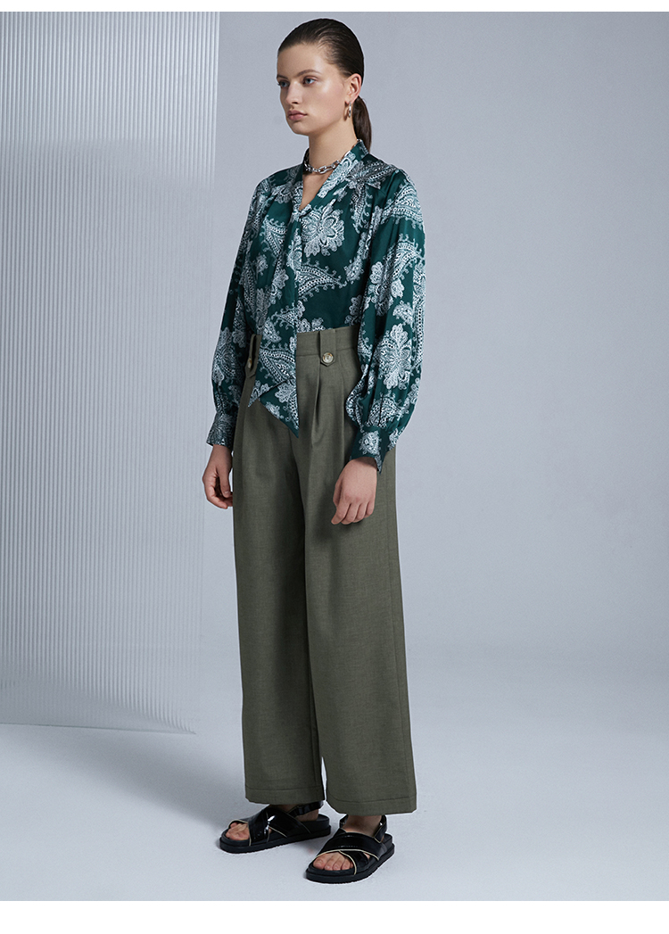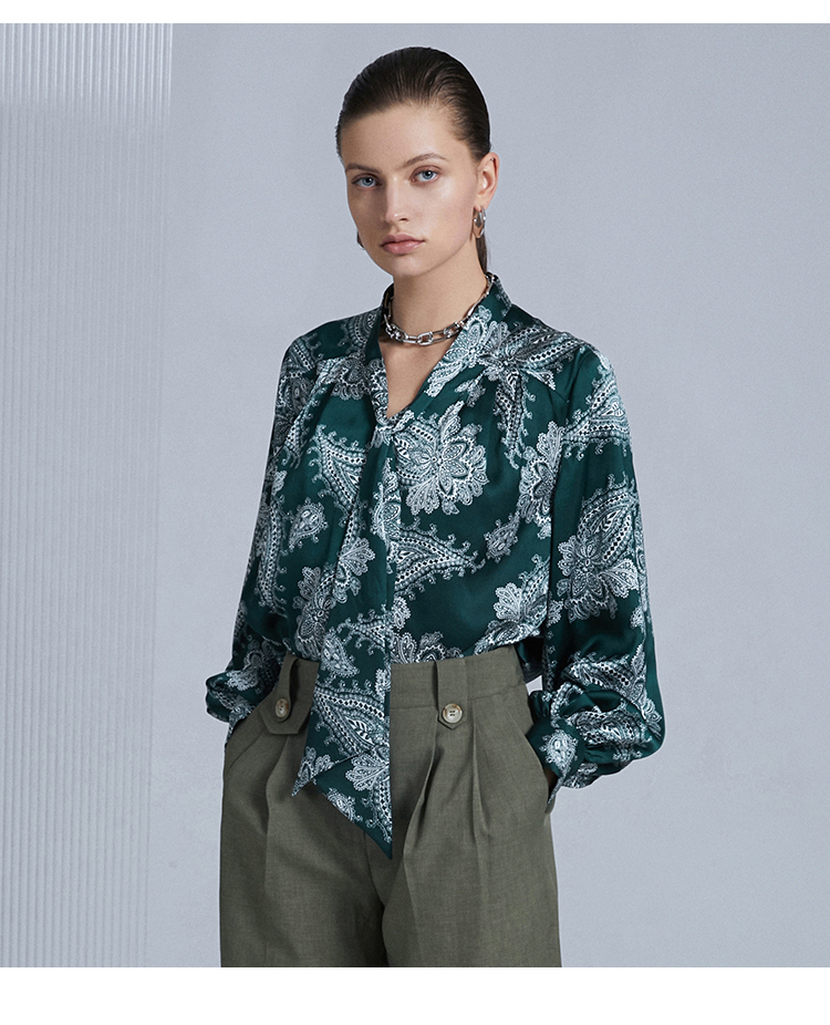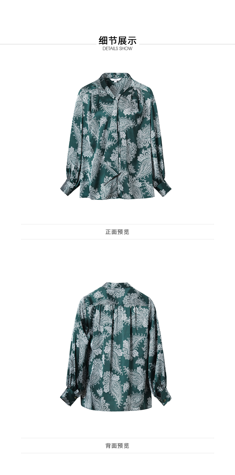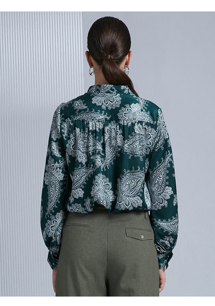 VIMAGE纬漫纪立领花色上衣印花宽松复古长袖衬衫衬衣V1509104