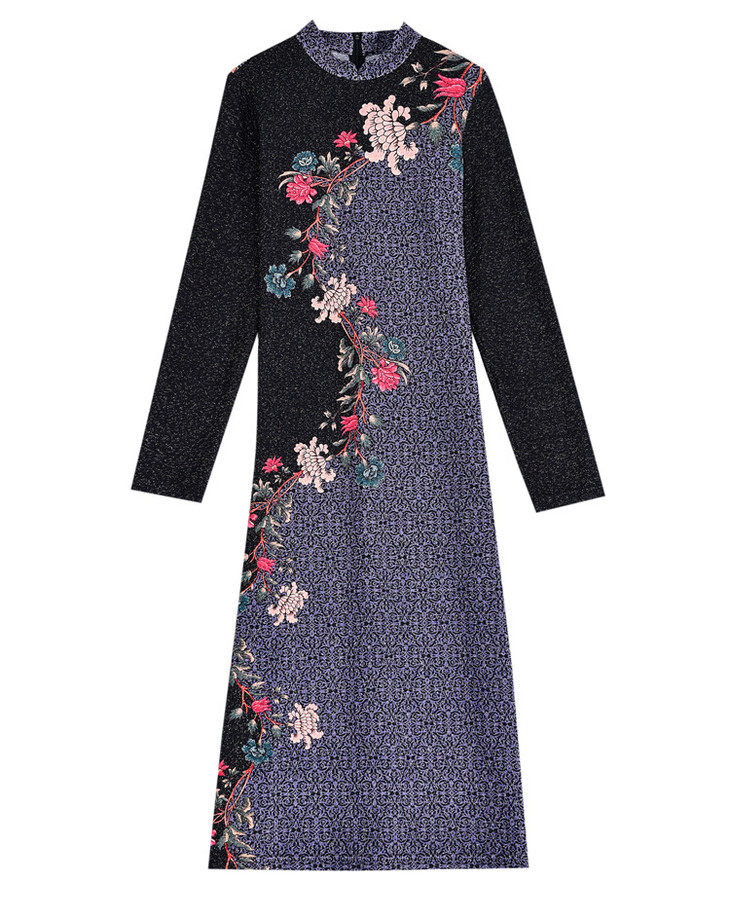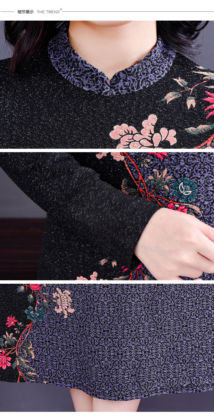 YMR-8195-秋季气质名媛蕾丝大码中长款连衣裙 唐织绾