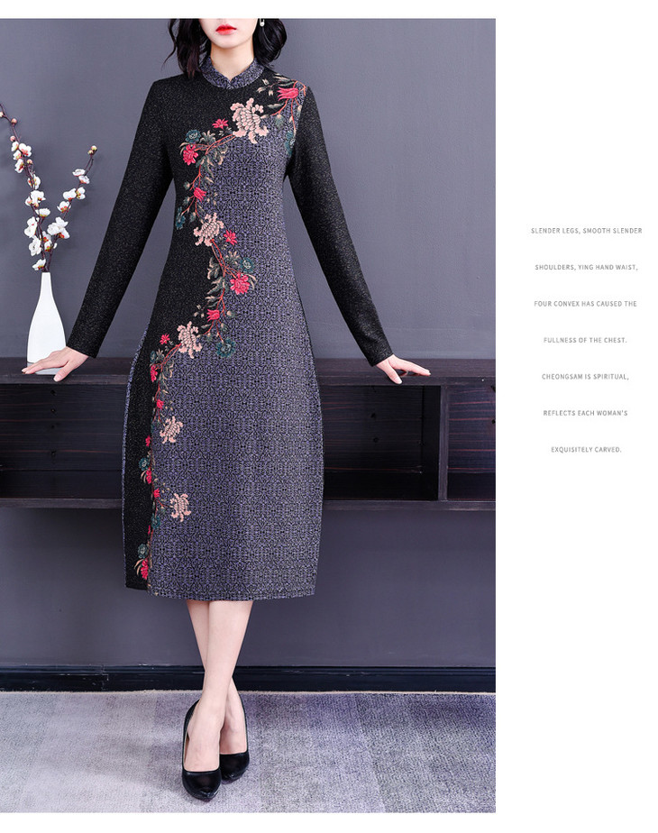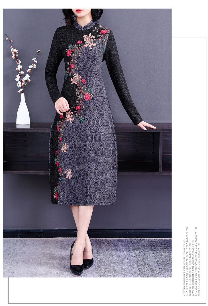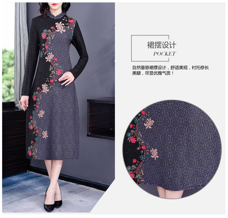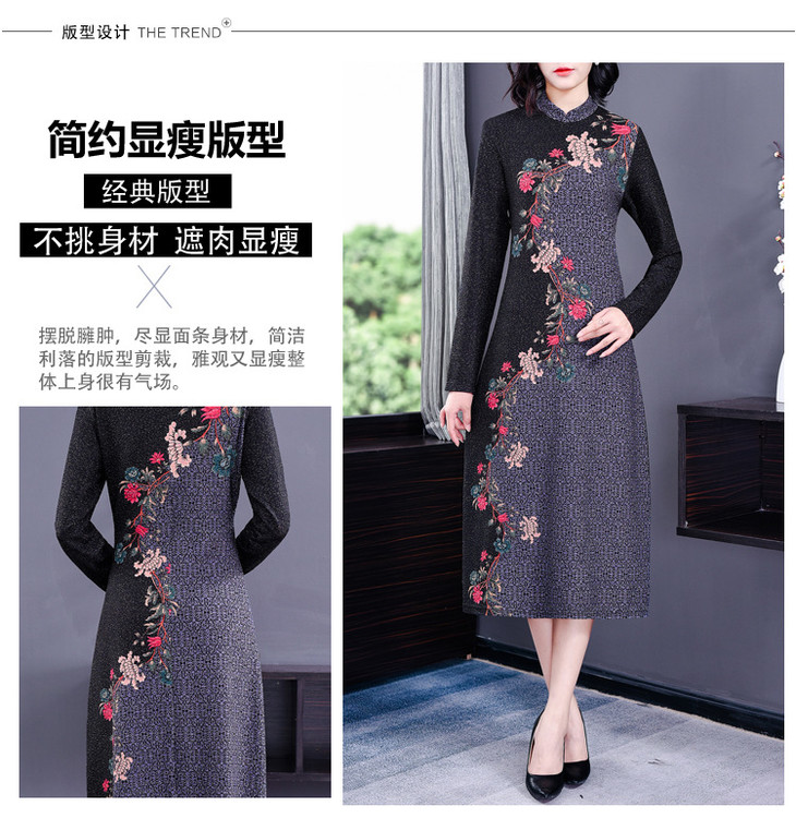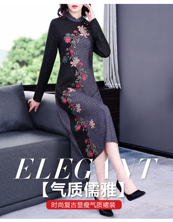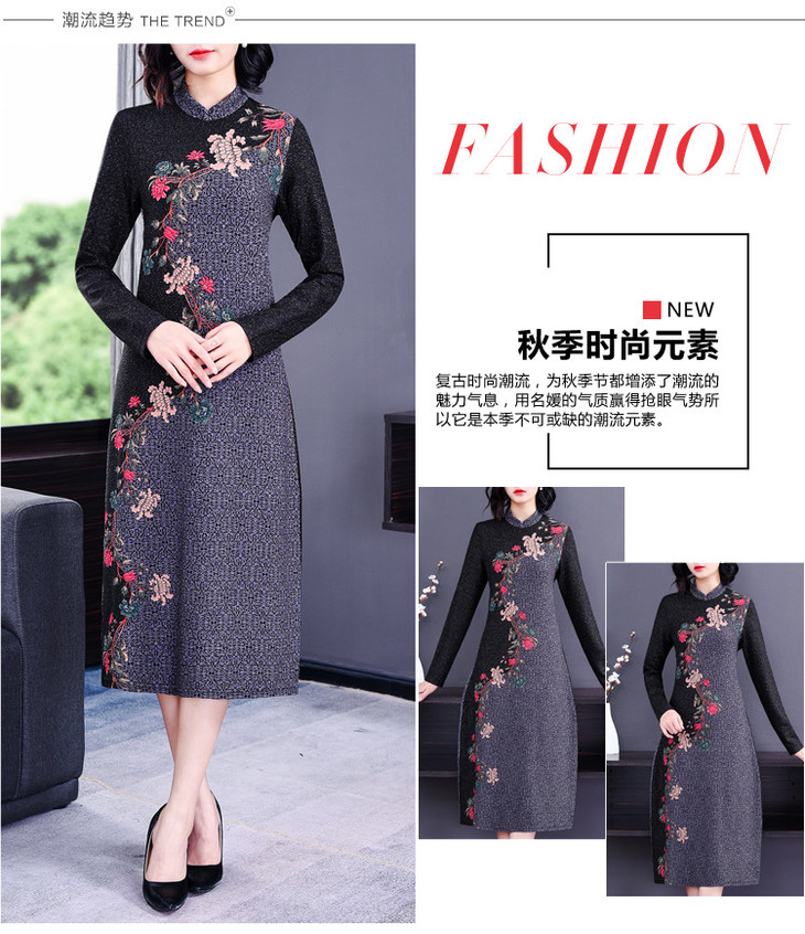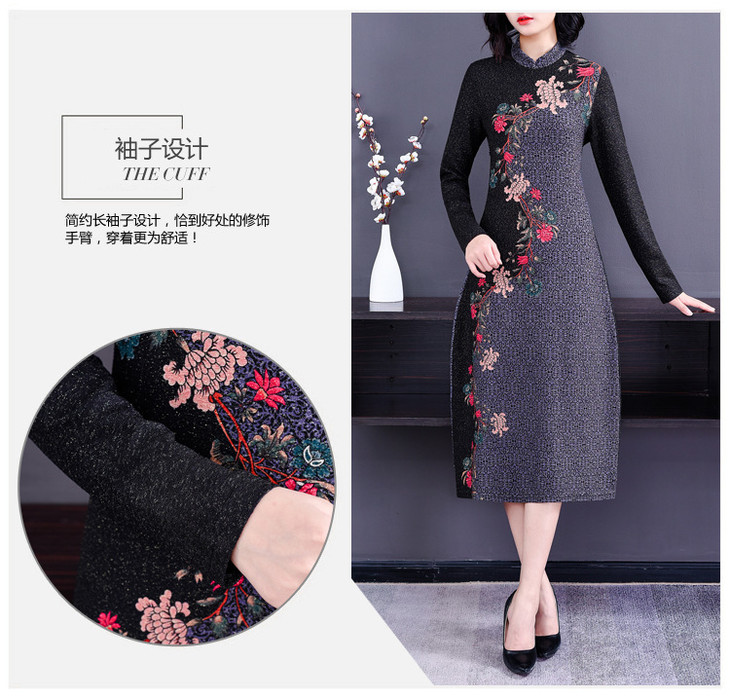 HT-BH-321-8037复古气质收腰显瘦针织连衣裙