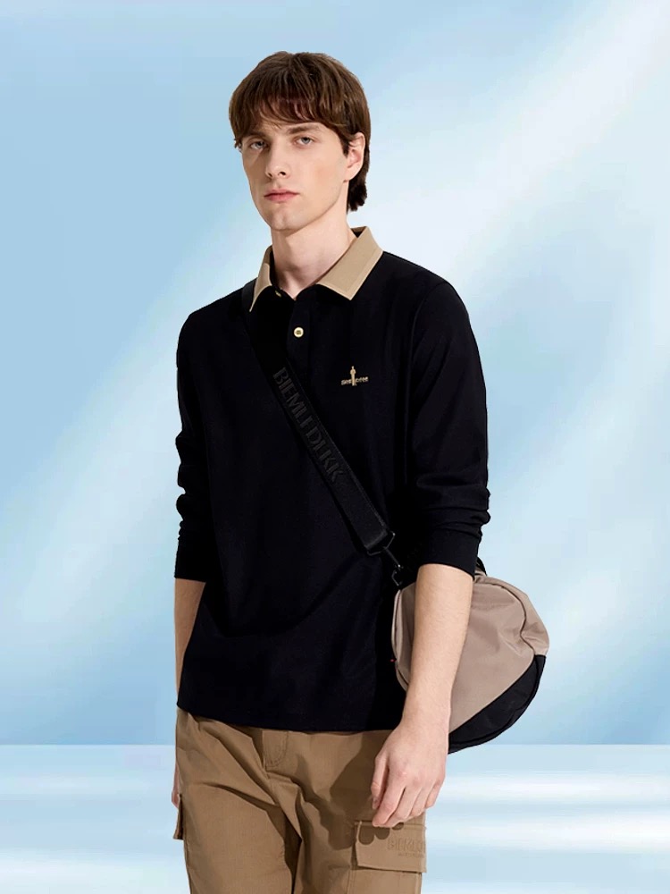 145 货号125773145 ss 加绒款!!!比音男款 螺纹领POLO衫长袖