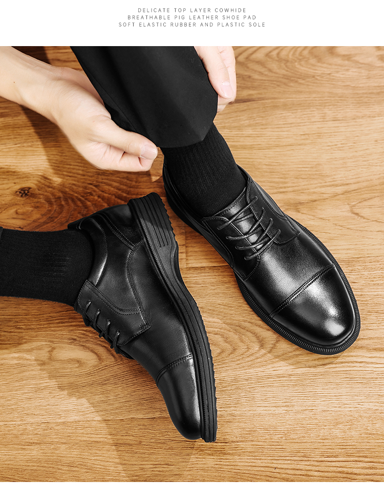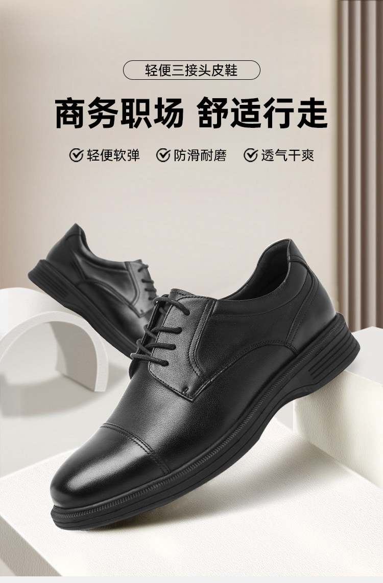 【轻便三接头系带皮鞋】通勤商务正装皮鞋 轻便软弹牛皮皮鞋