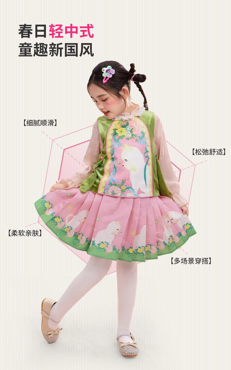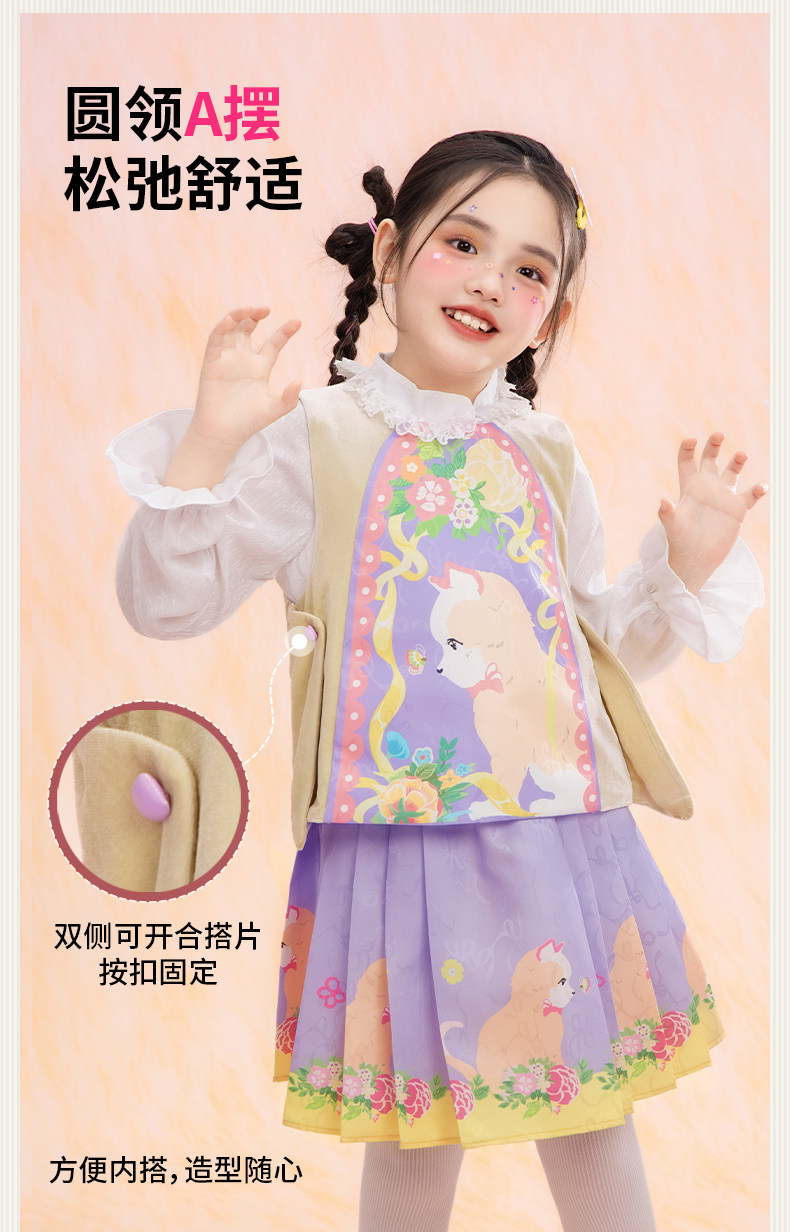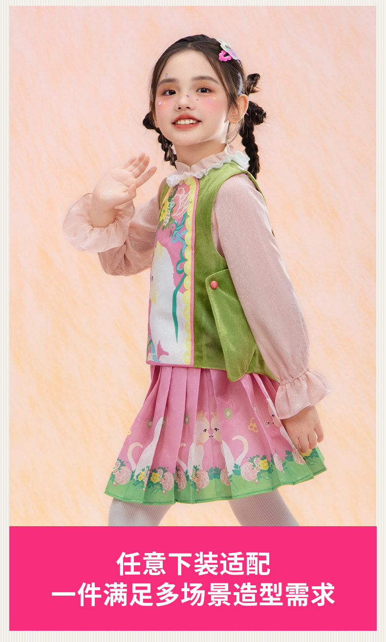 年衣童装儿童马甲春季新款女童中式古风汉服唐装春意融融马甲N1261029A05