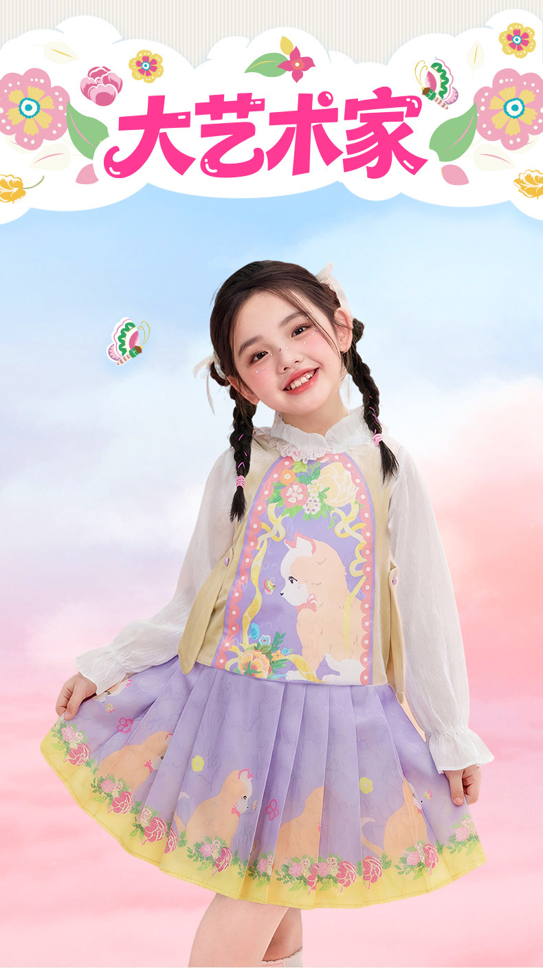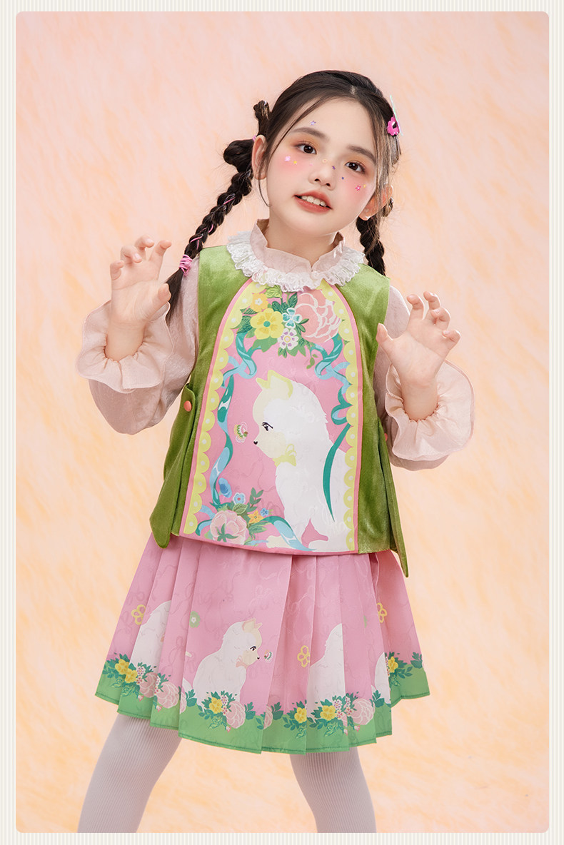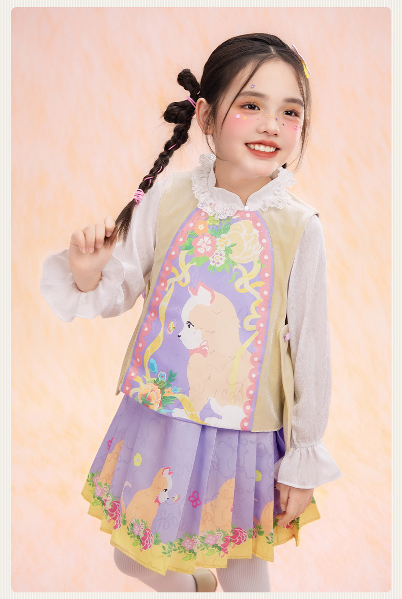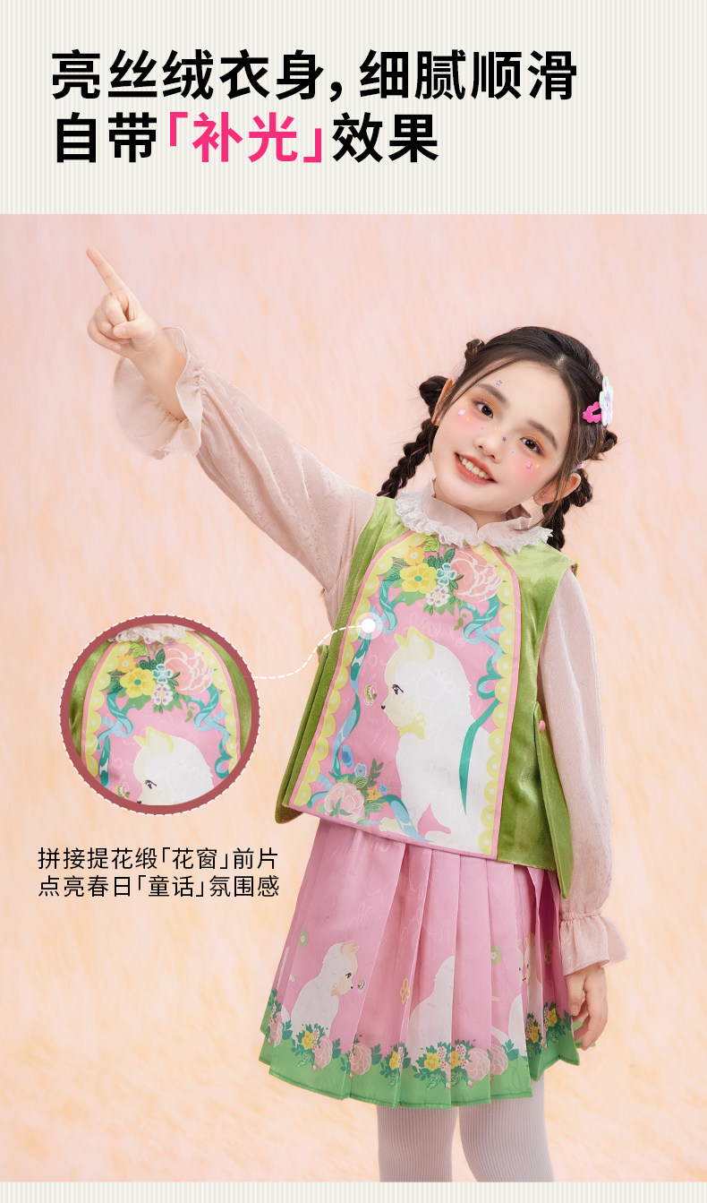 年衣童装儿童马甲春季新款女童中式古风汉服唐装春意融融马甲N1261029A05