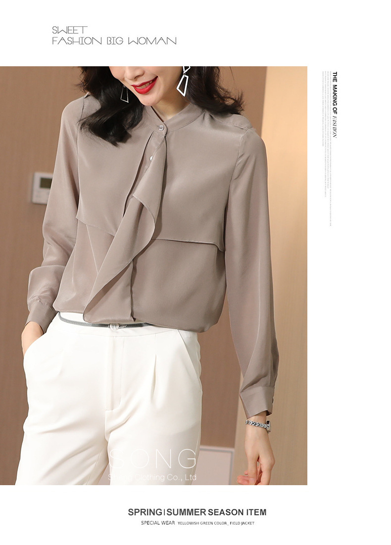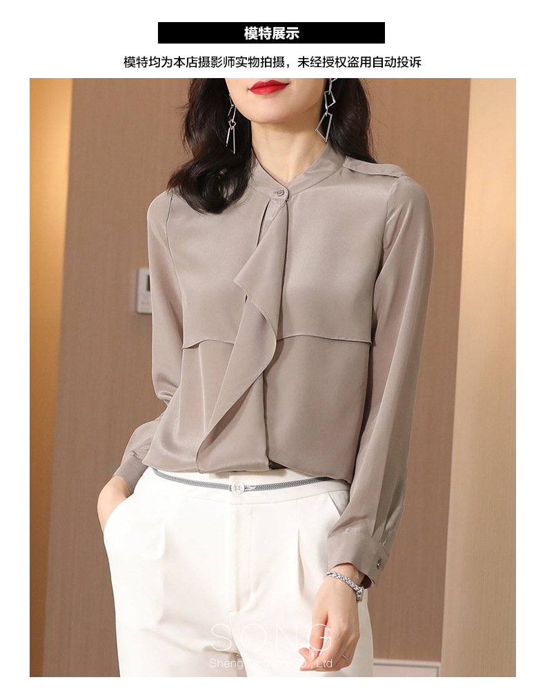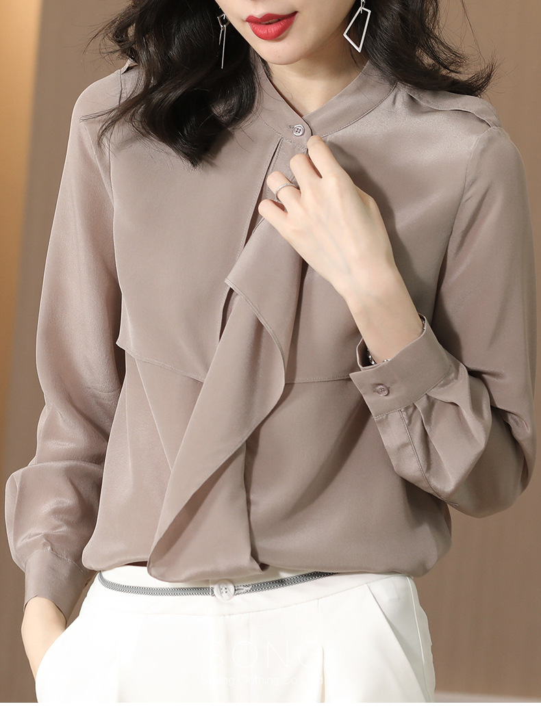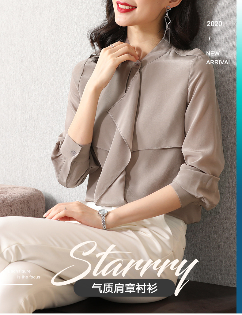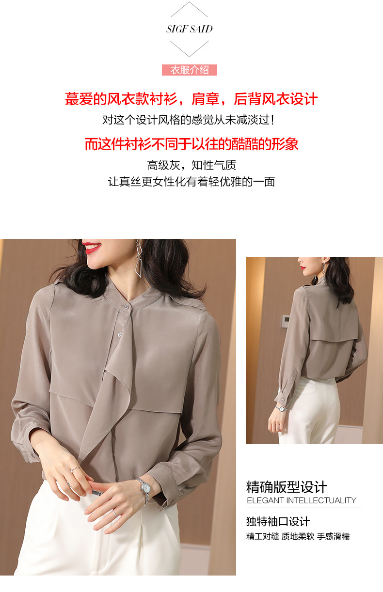 SS-9222高级感满满气质肩章风衣款双层荷叶边领长袖真丝衬衫