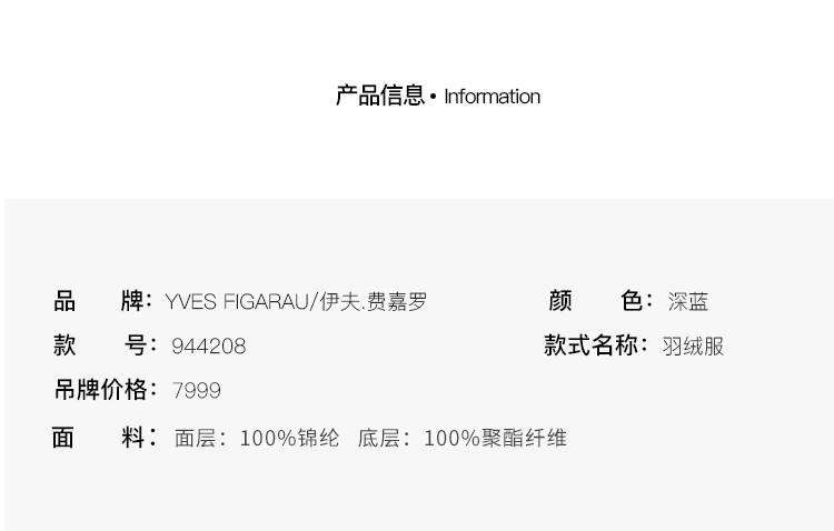 YvesFigarau伊夫·费嘉罗羽绒服944208