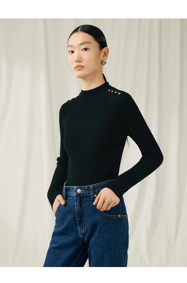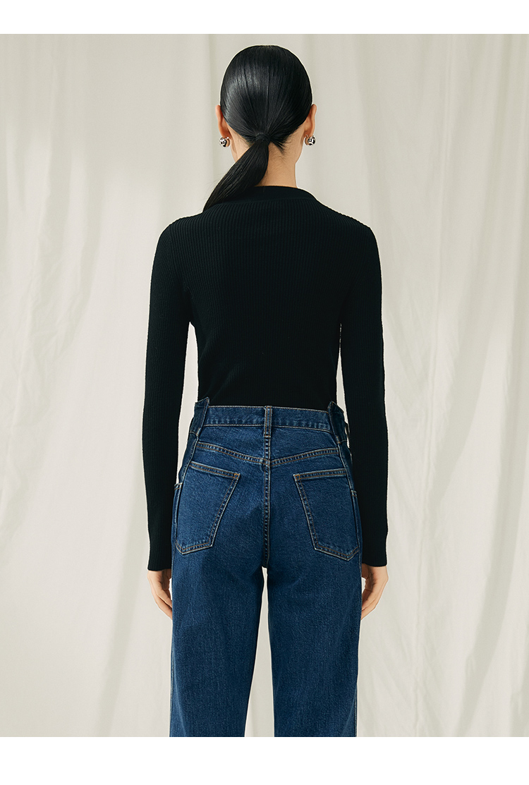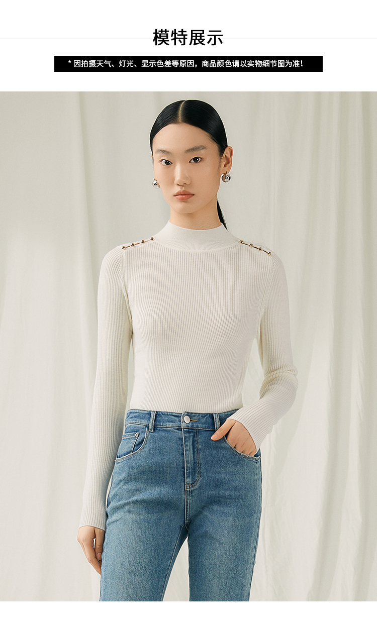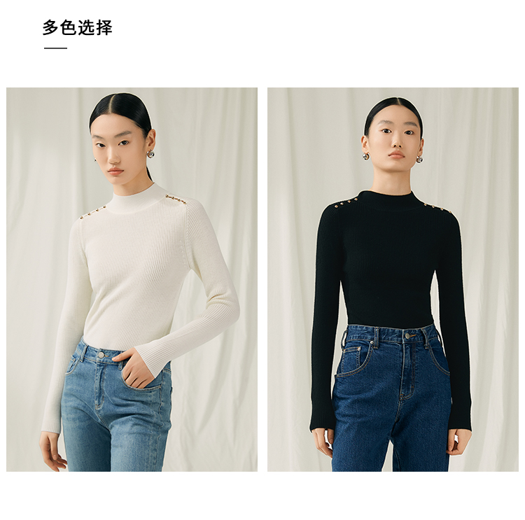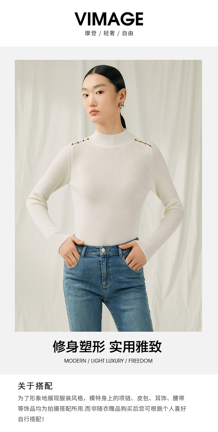 VIMAGE纬漫纪秋新款100%绵羊毛小立领套头纯色薄款打底基础款修身针织衫V1801422