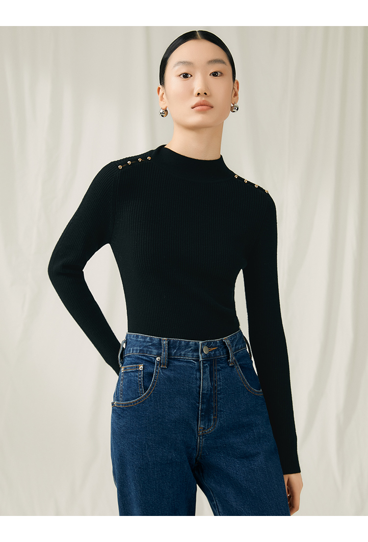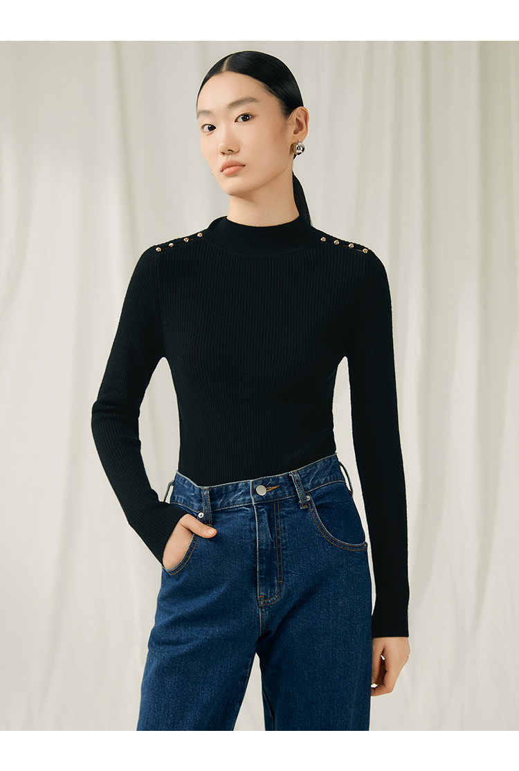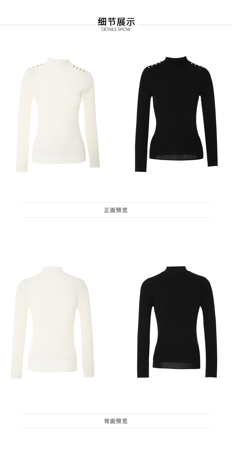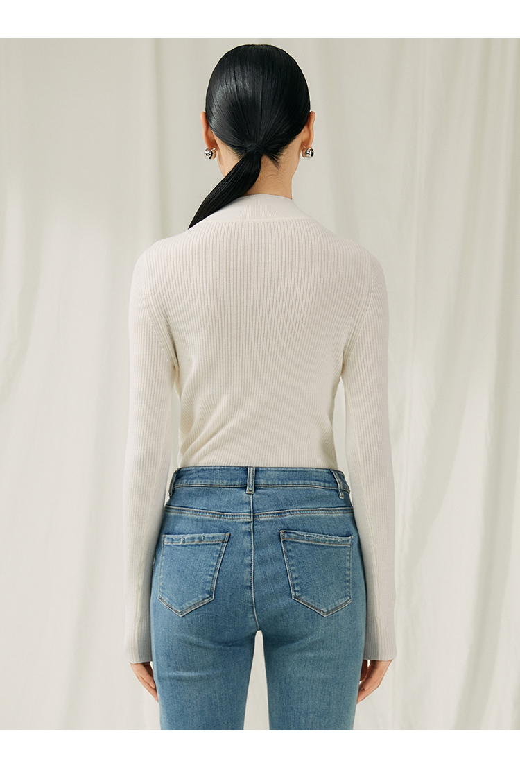 VIMAGE纬漫纪秋新款100%绵羊毛小立领套头纯色薄款打底基础款修身针织衫V1801422