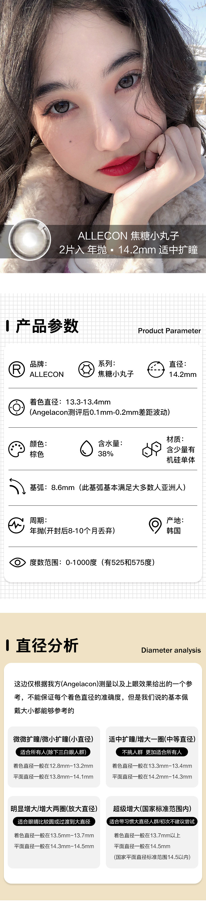 ALLECON / 焦糖小丸子 / 美瞳半年抛 / 2片入 / 14.2mm / 适中扩瞳圆环自然款