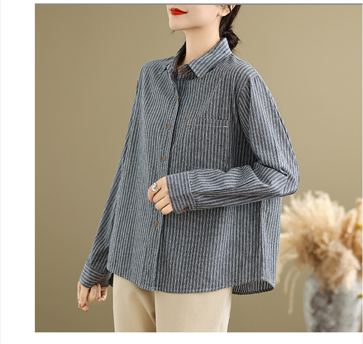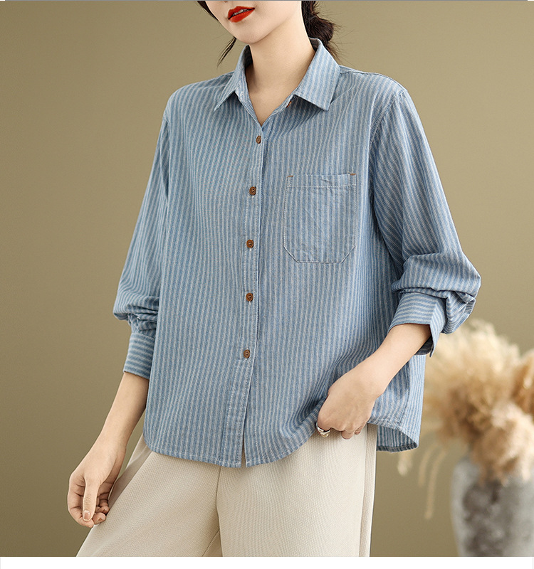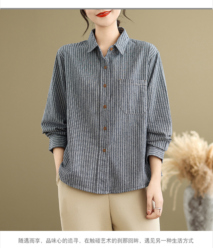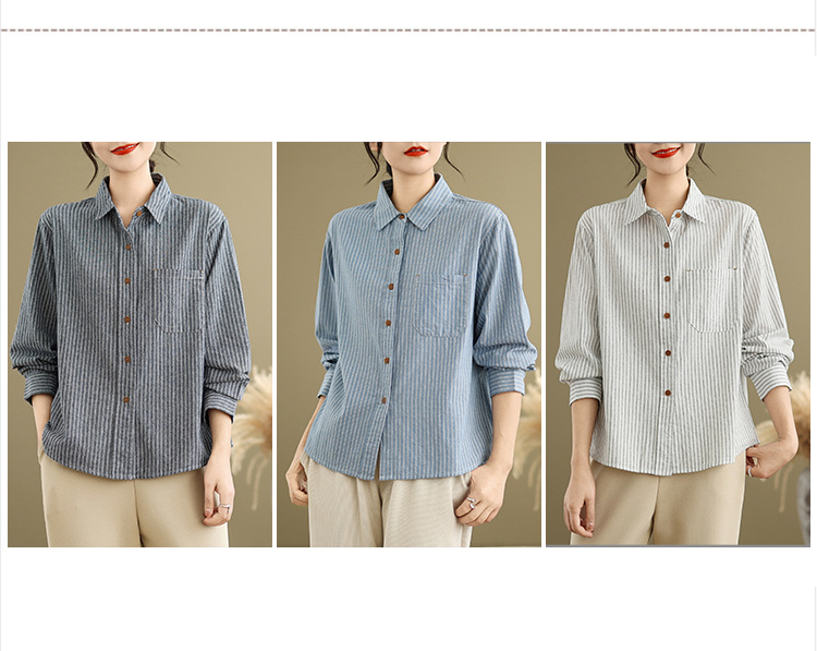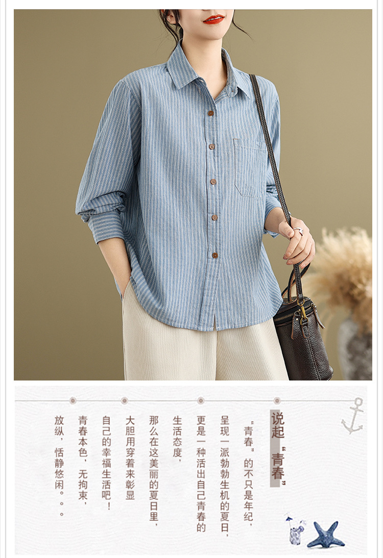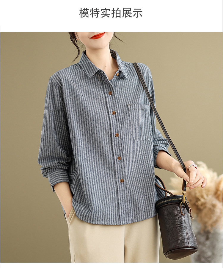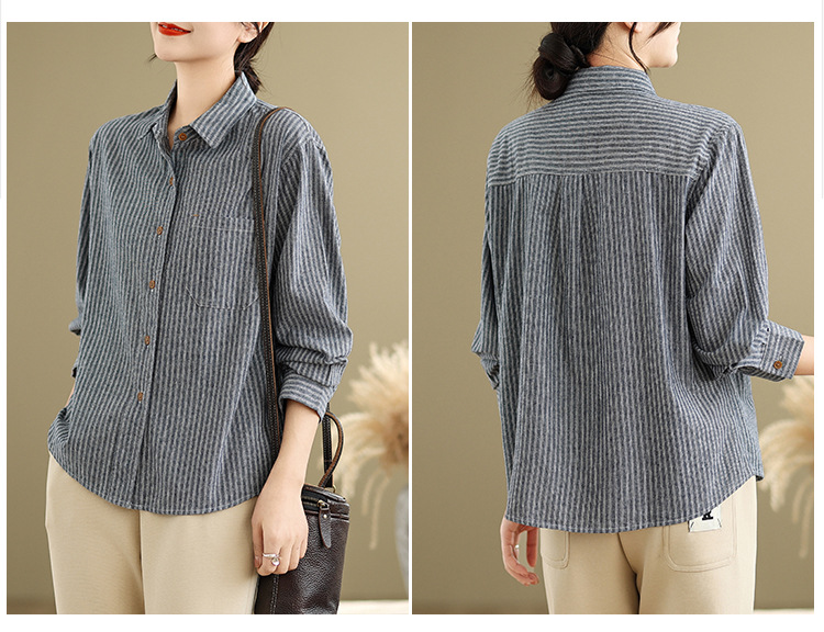GYH 9532条纹衬衫翻领休闲宽松显瘦韩版长袖衬衣
