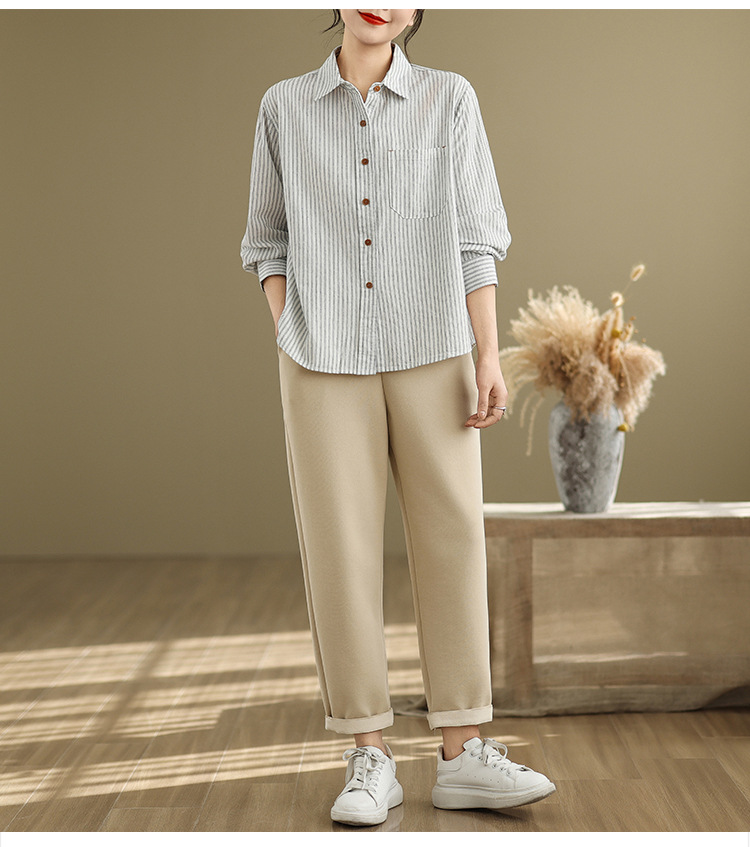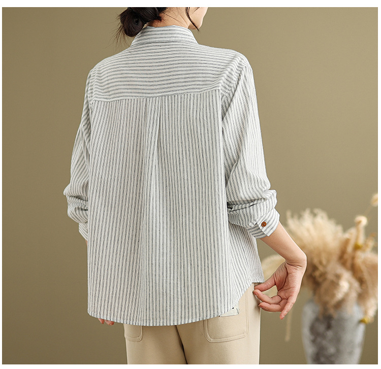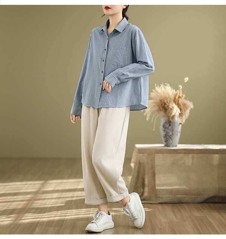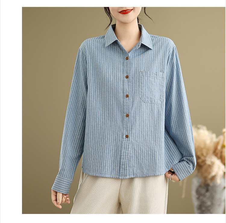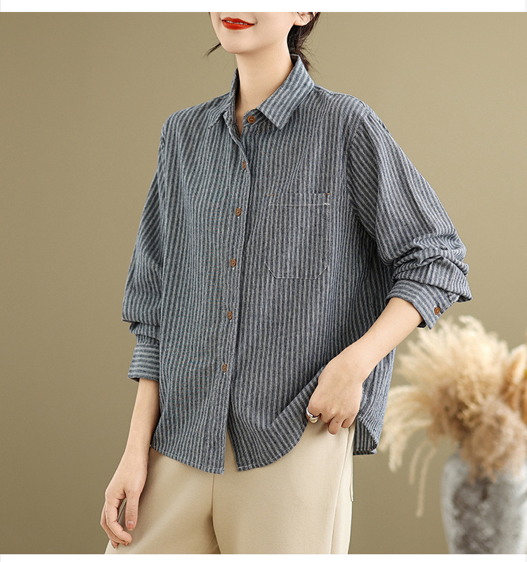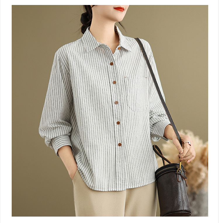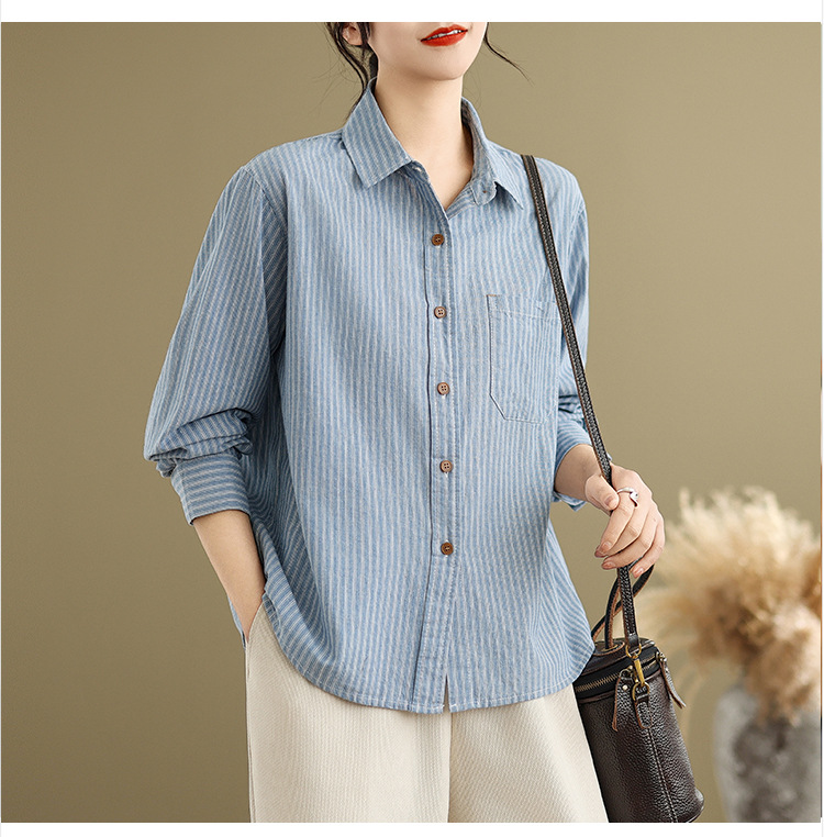 GYH 9532条纹衬衫翻领休闲宽松显瘦韩版长袖衬衣