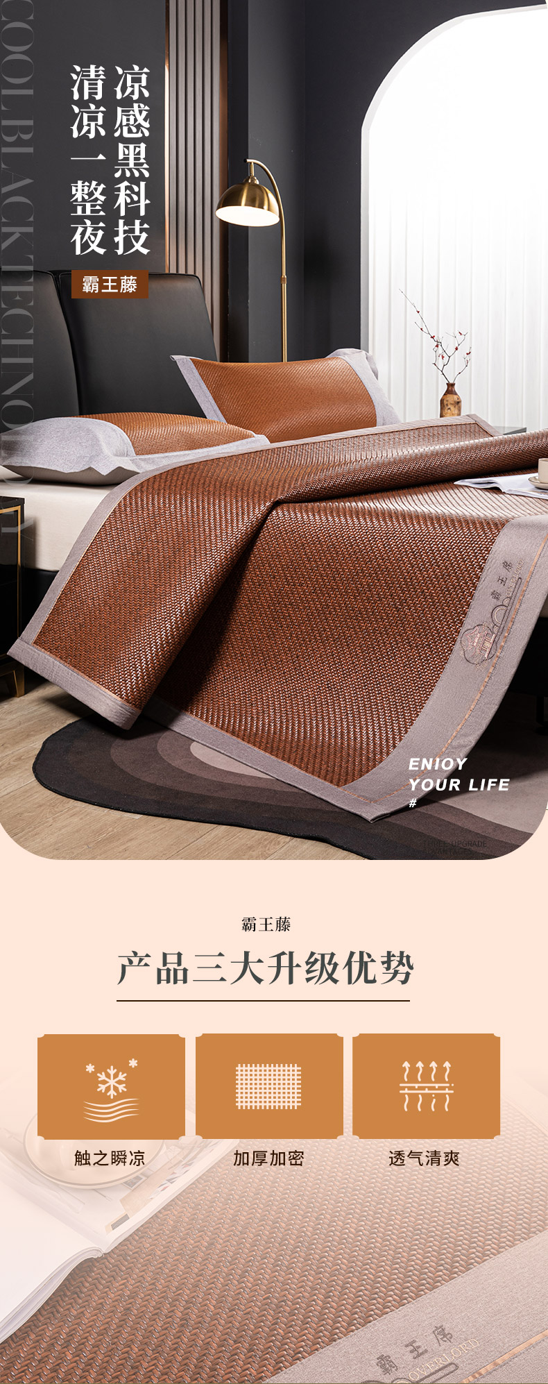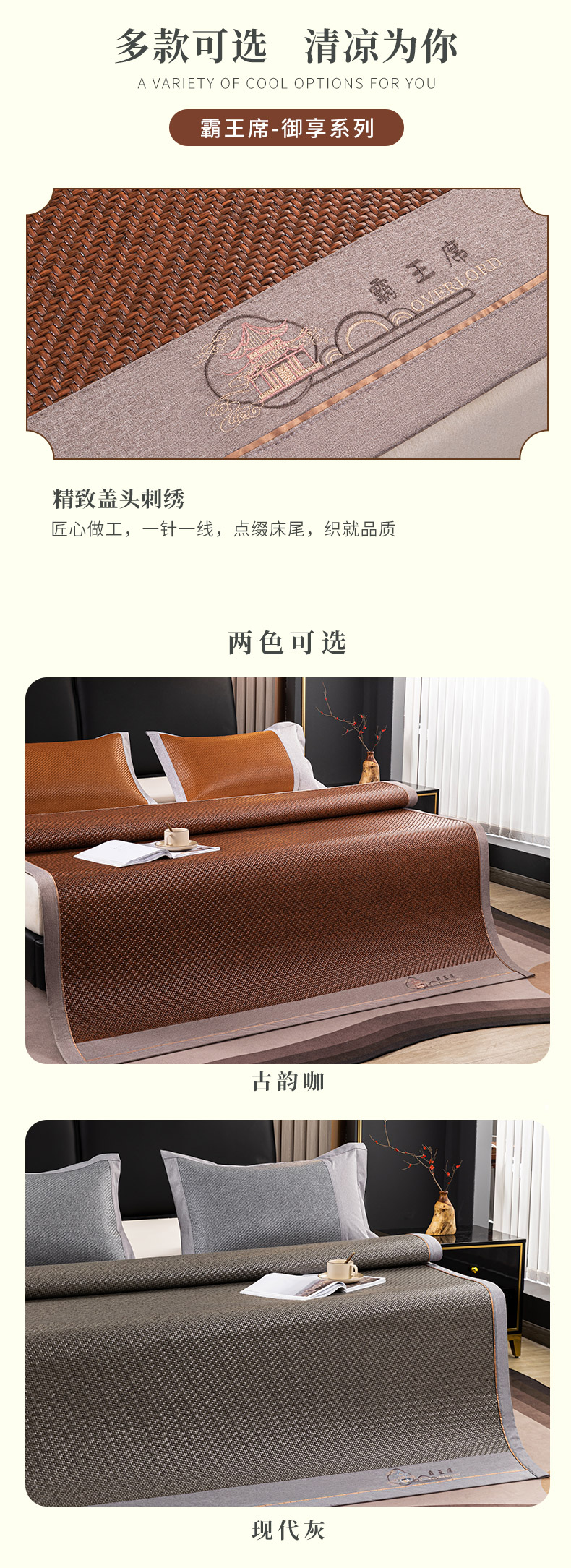 多喜爱 霸王席单件-青州/御享(咖/灰)/福禄(咖/灰) 【四角弹力绑带】【精致盖头刺绣】加厚加密 藤席编织更紧密 间隙更小 无毛刺 3D蜂窝层 席面可卷曲