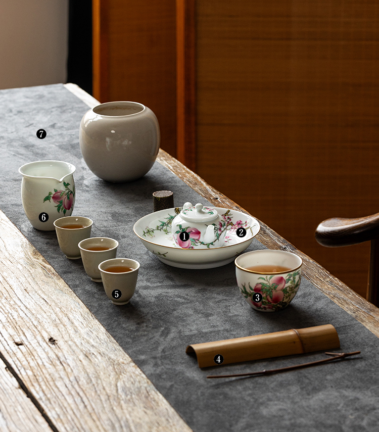 茶香记景德镇徐窑新品五桃莲子壶100ml宫廷粉彩非遗手绘陶瓷泡茶器瓷壶
