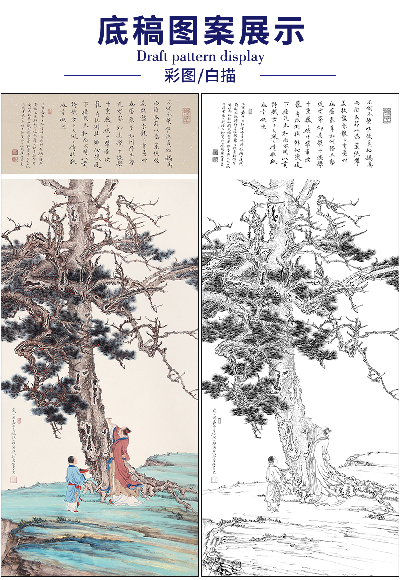 任重山水人物工笔画白描底稿《古松赞》临摹勾线高清打印稿RD52