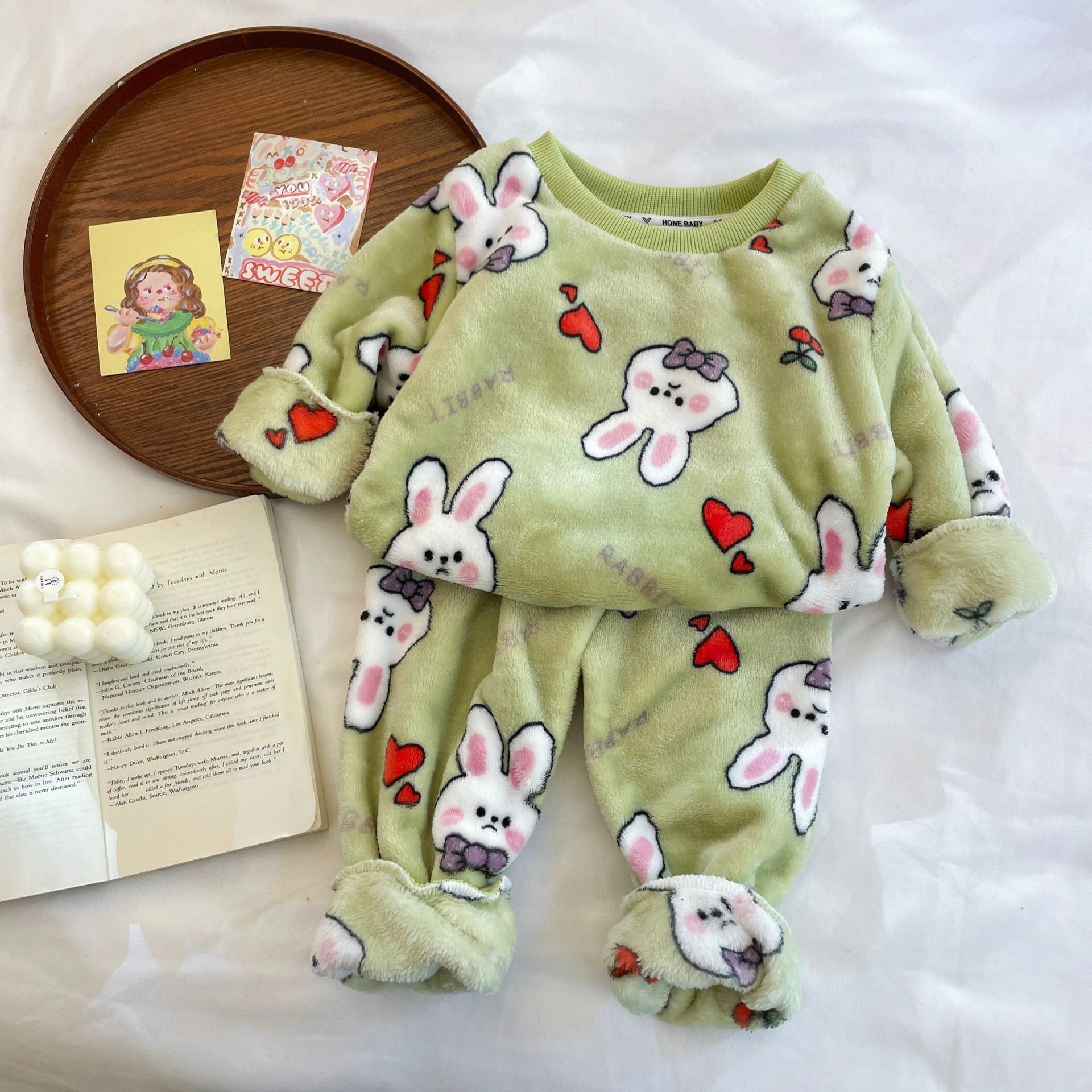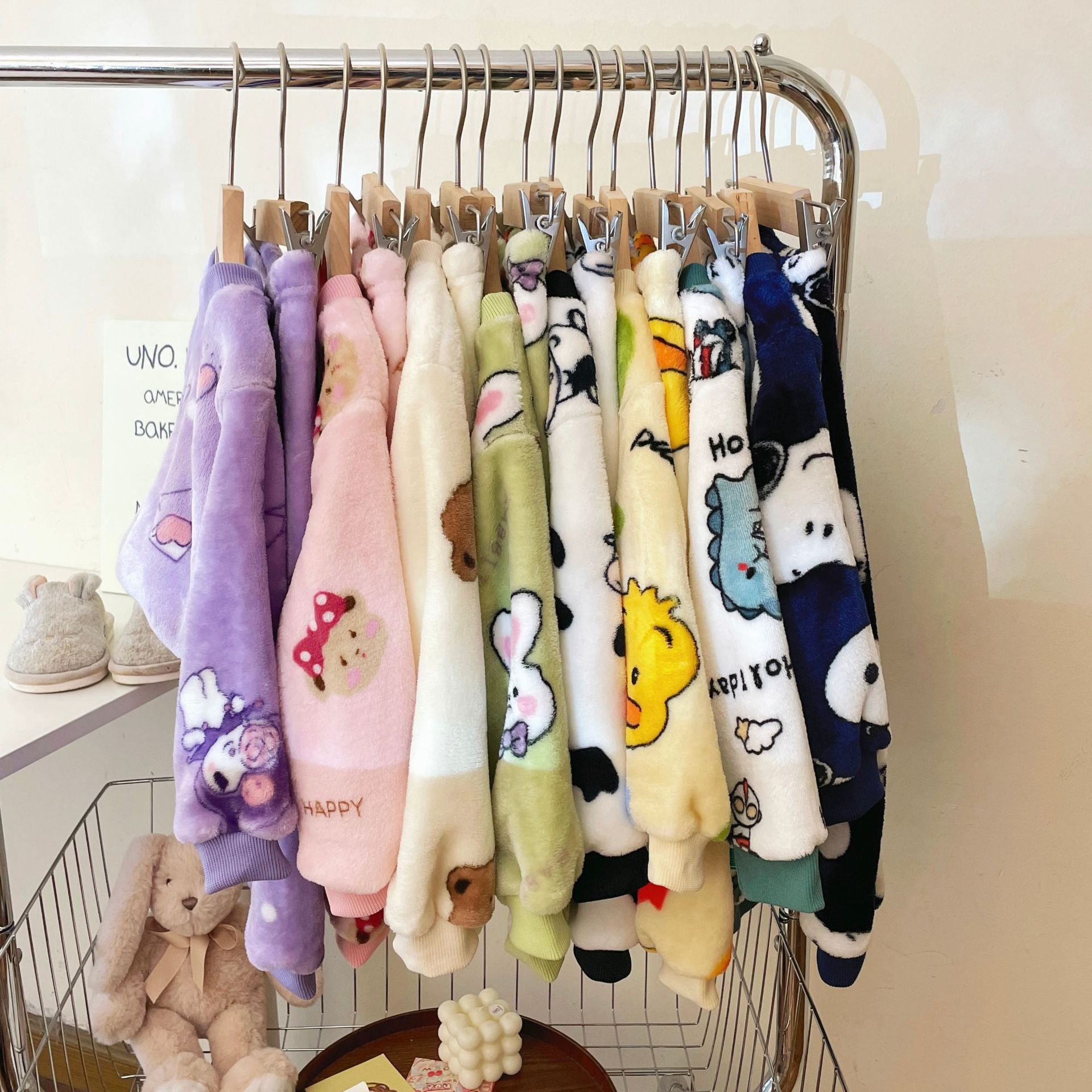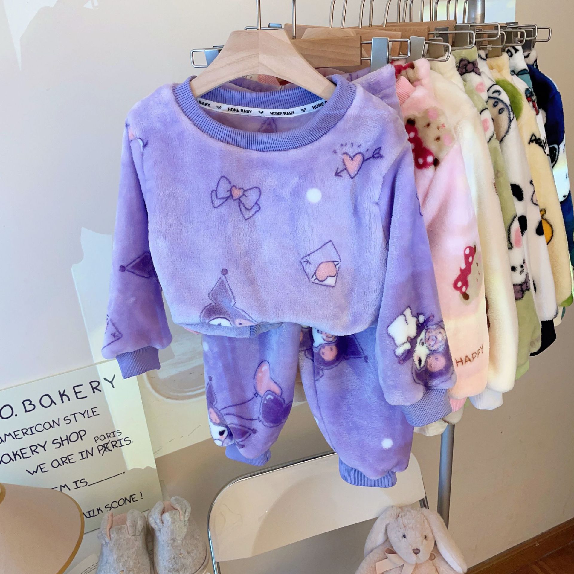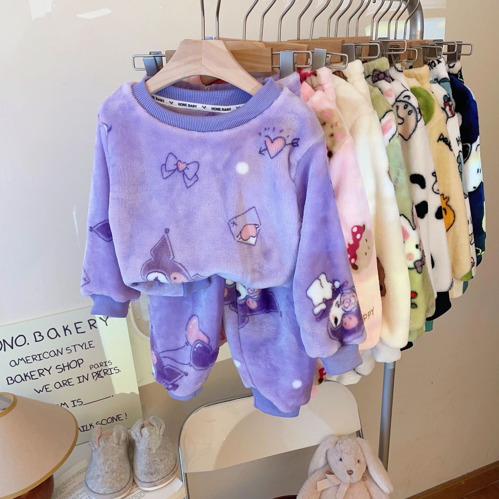 【柔软亲肤!男女童法兰绒睡衣】2023秋冬新款中大童加厚套头秋衣秋裤家居服套装,加厚设计,温暖呵护;简约套头设计,方便快捷。ry