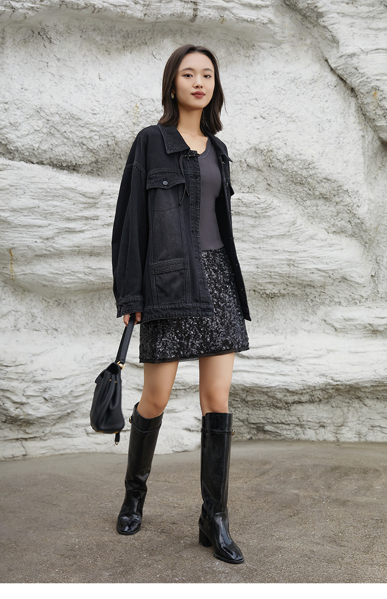 【派对吸睛款】黑色闪耀亮片迷你裙 性感高腰显瘦 a 字半身裙短裙