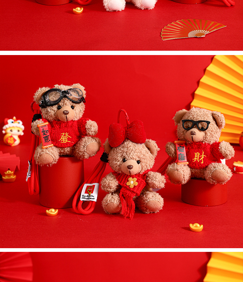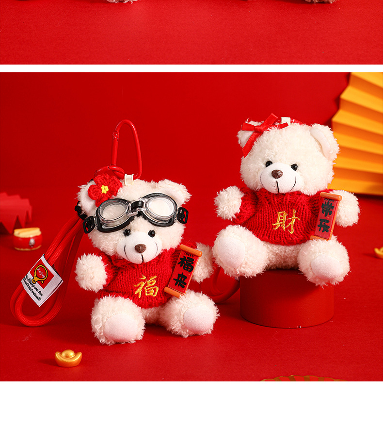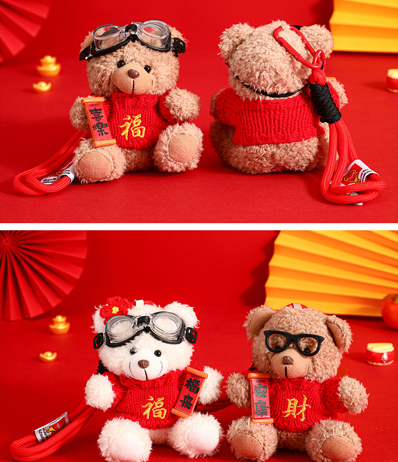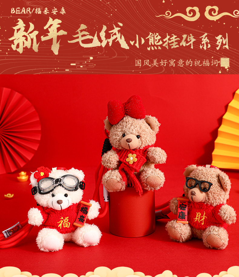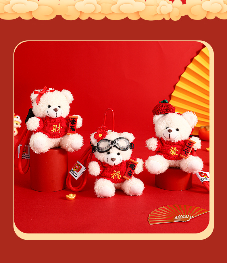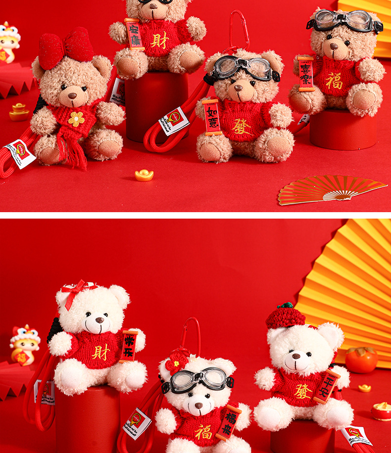 正版新年毛绒小熊钥匙扣挂件公仔创意背包挂饰情侣小礼品