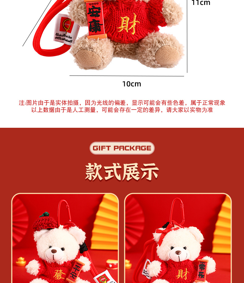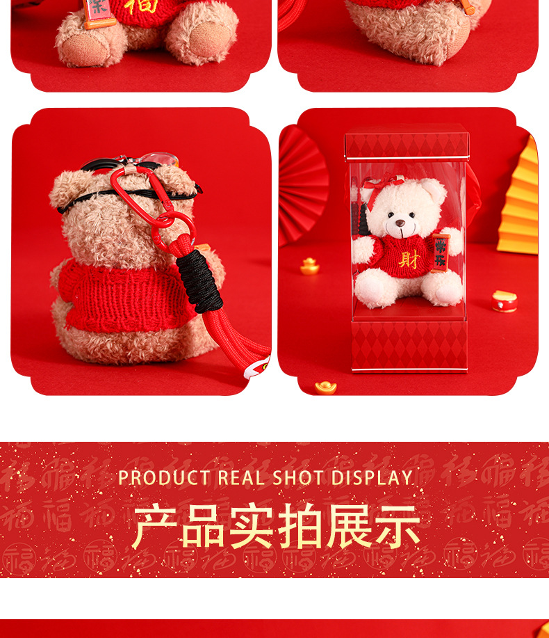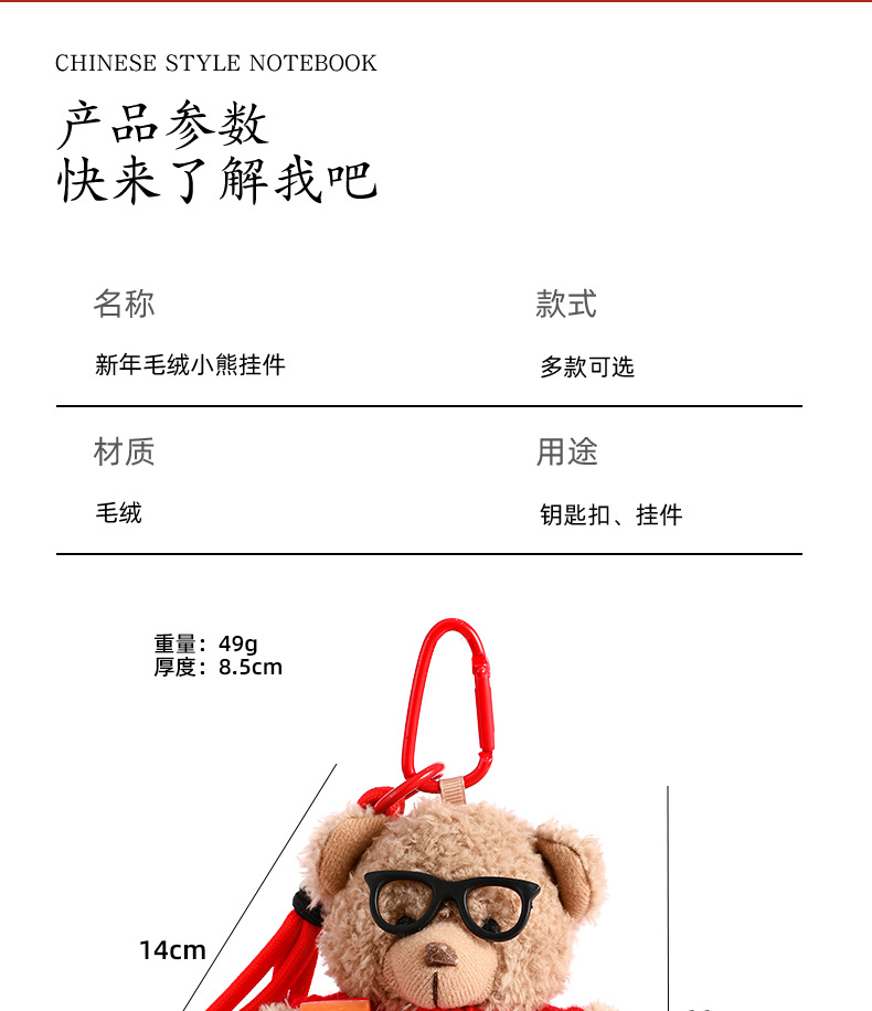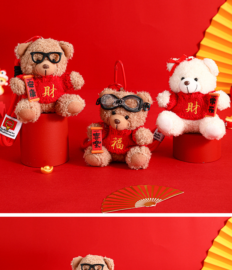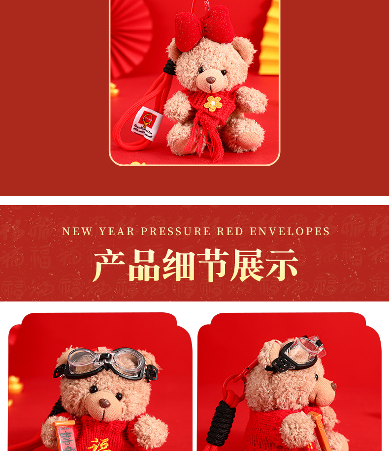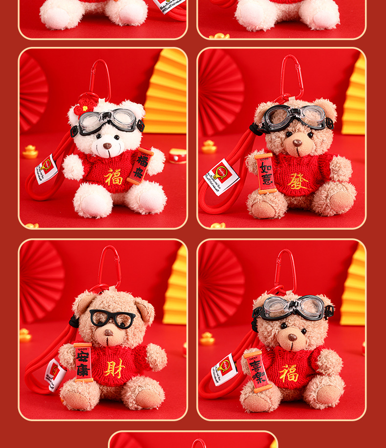 正版新年毛绒小熊钥匙扣挂件公仔创意背包挂饰情侣小礼品