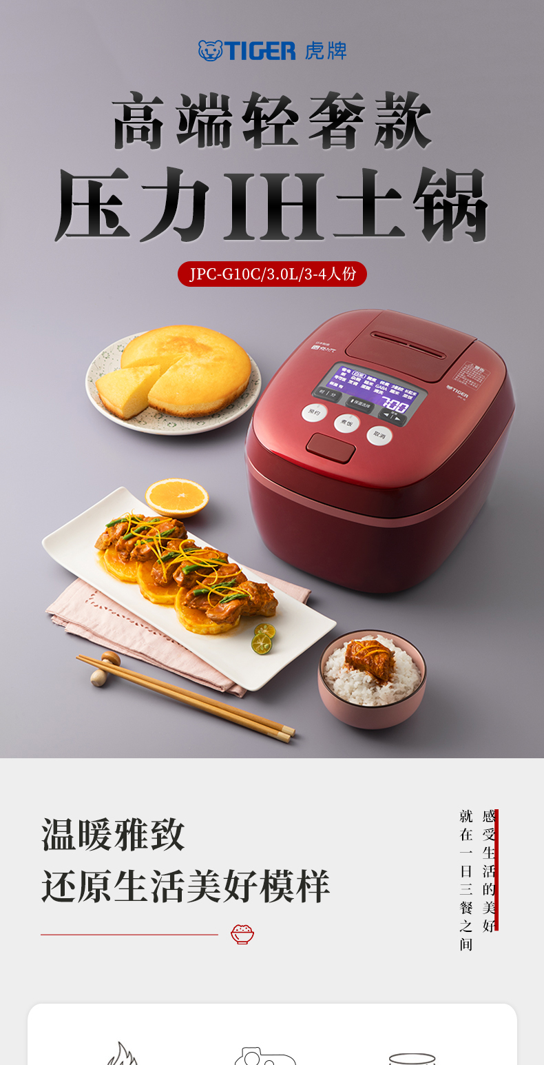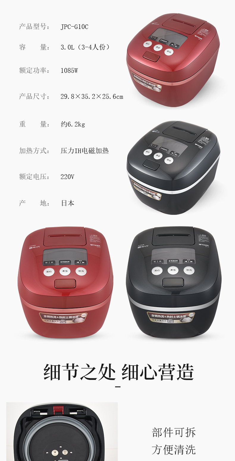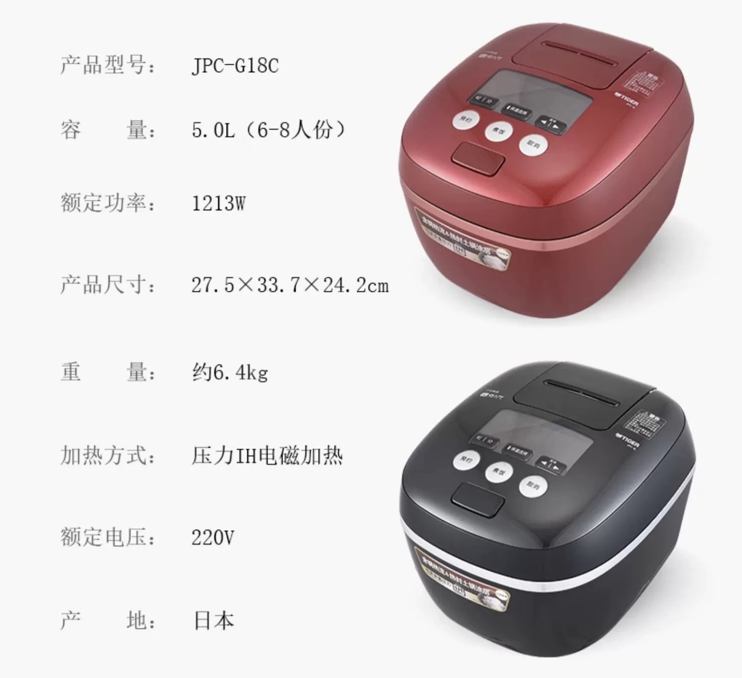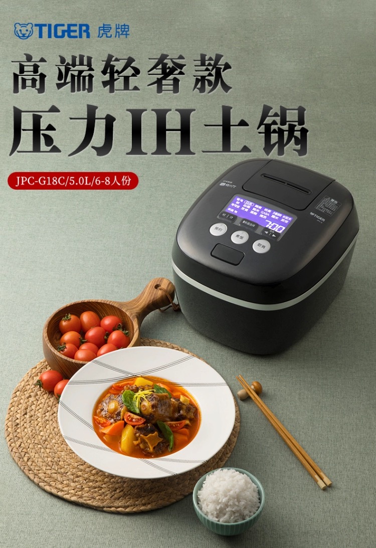 TIGER/虎牌 JPC-G10C/18C 智能压力IH土锅涂层电饭煲3L/5L