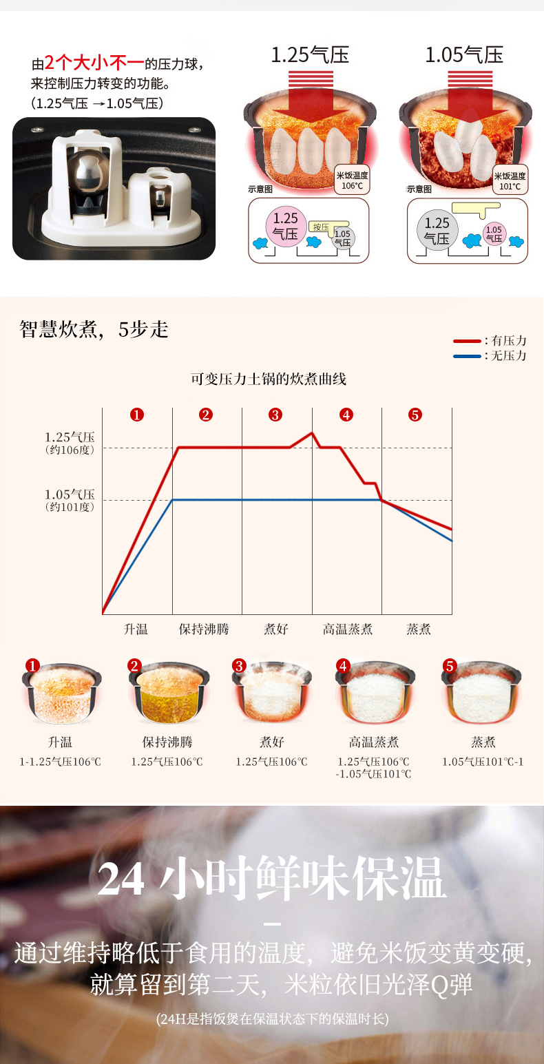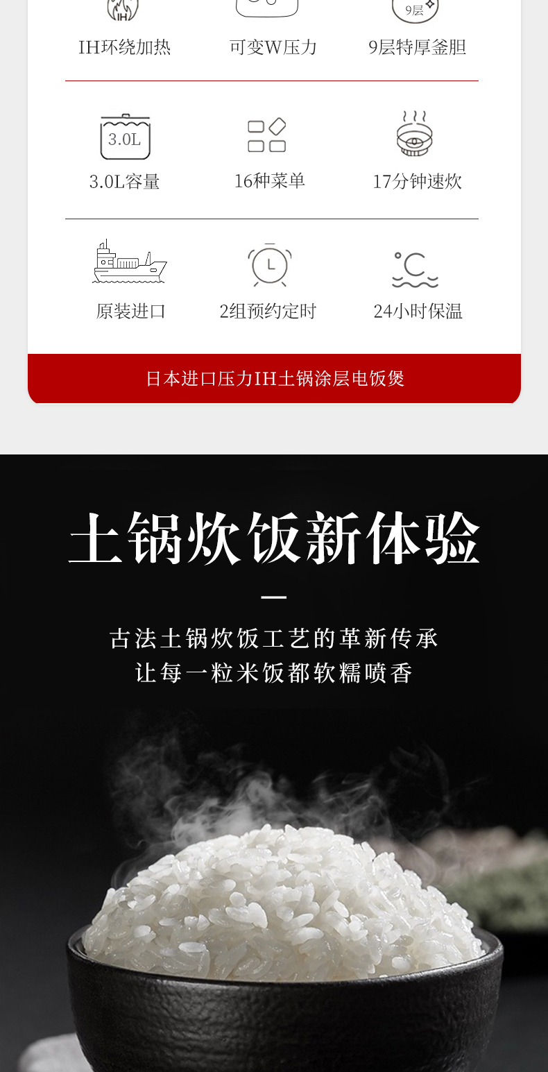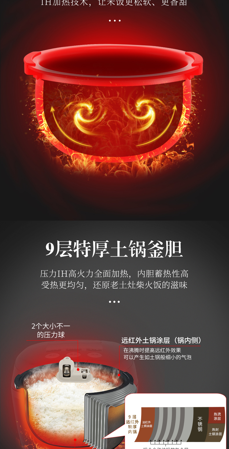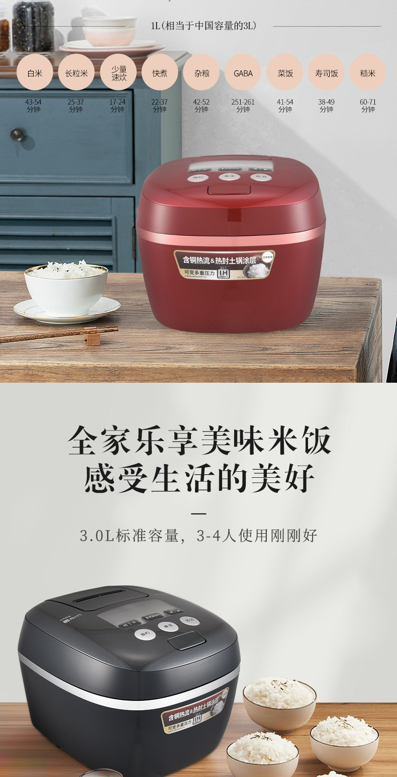 TIGER/虎牌 JPC-G10C/18C 智能压力IH土锅涂层电饭煲3L/5L