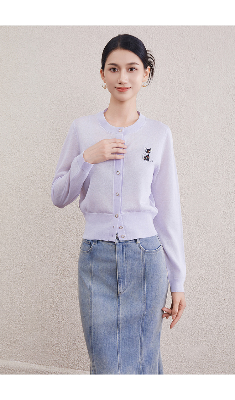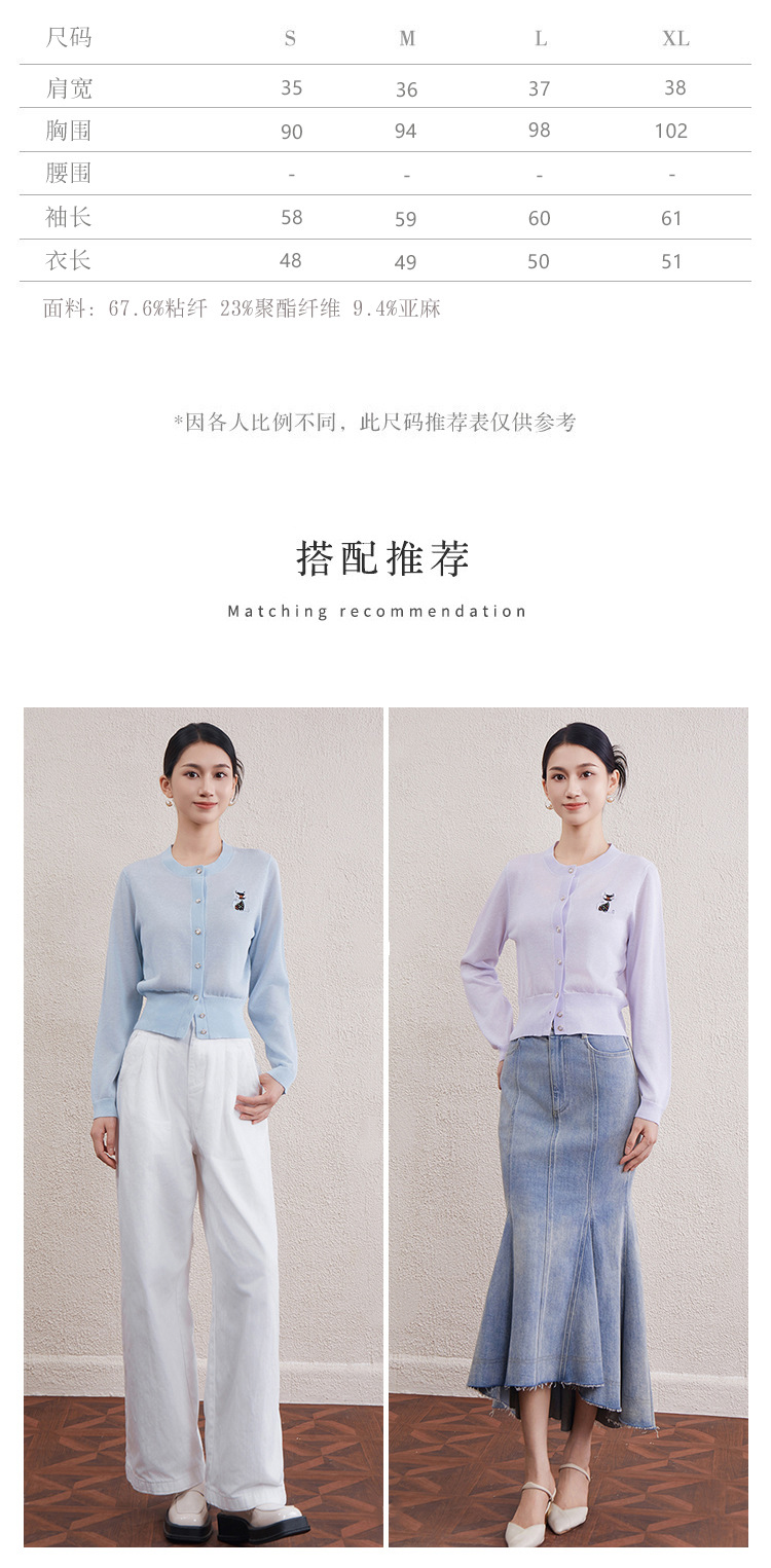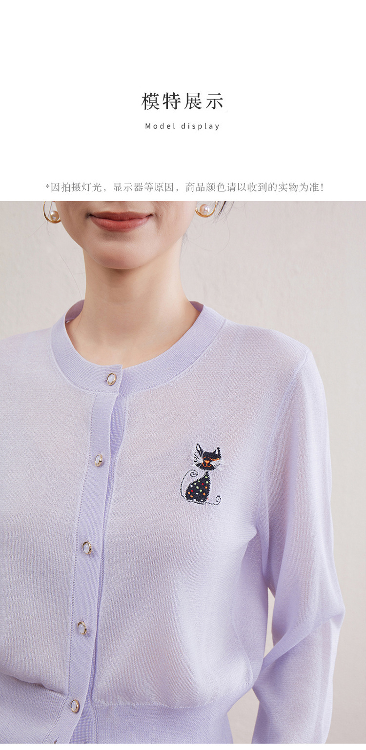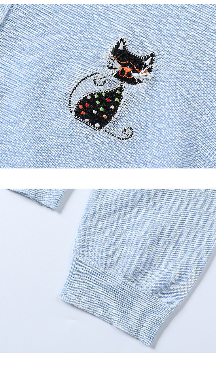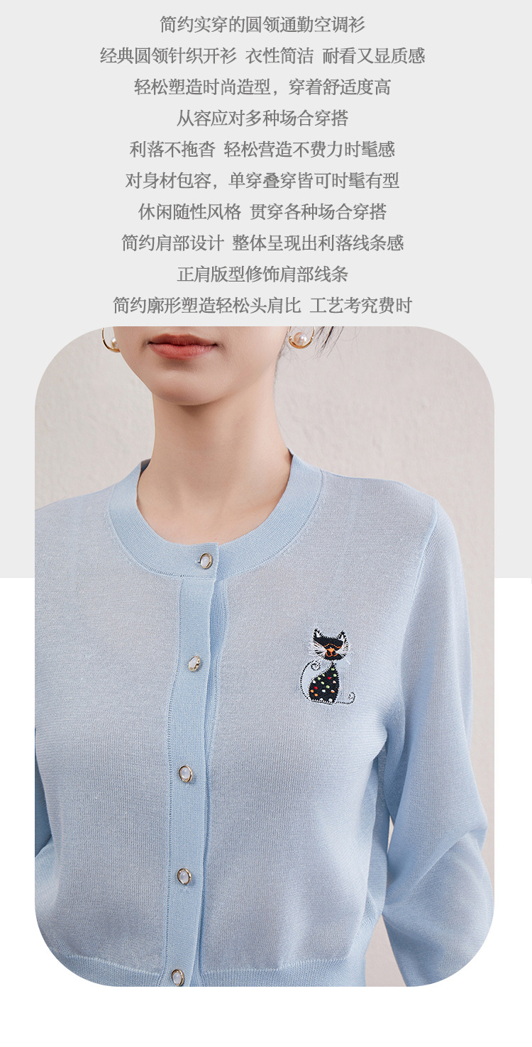 「自」全新升级【铂金会员284/天猫379/差价95】(44441)洛诗琳气质小猫刺绣针织上衣2025秋季百搭显瘦针织开衫女