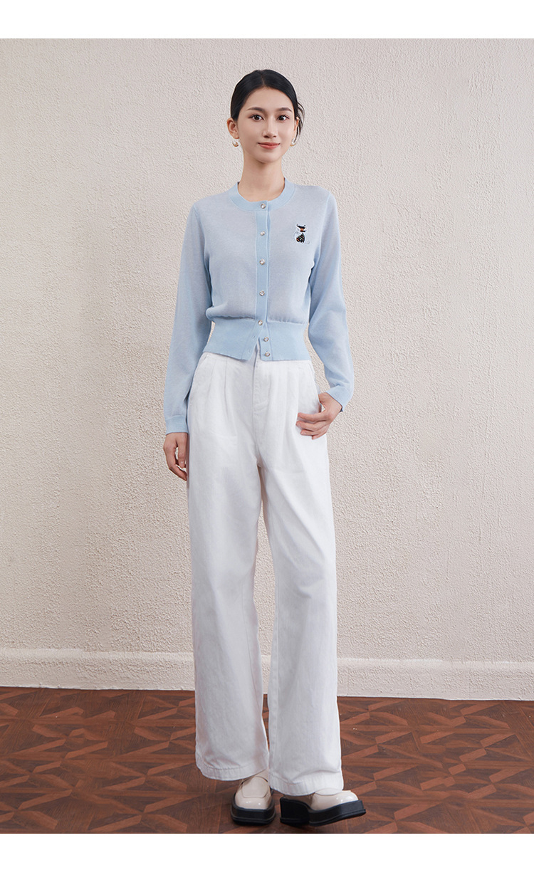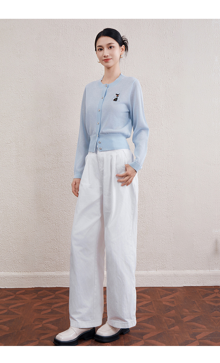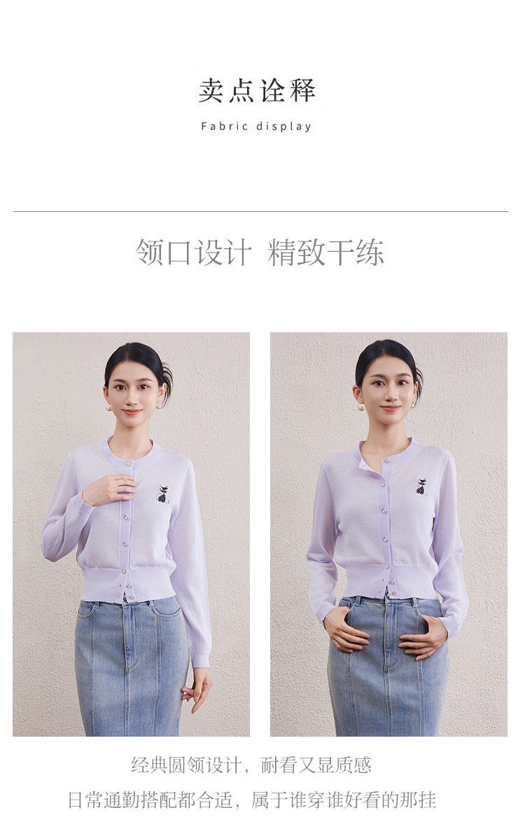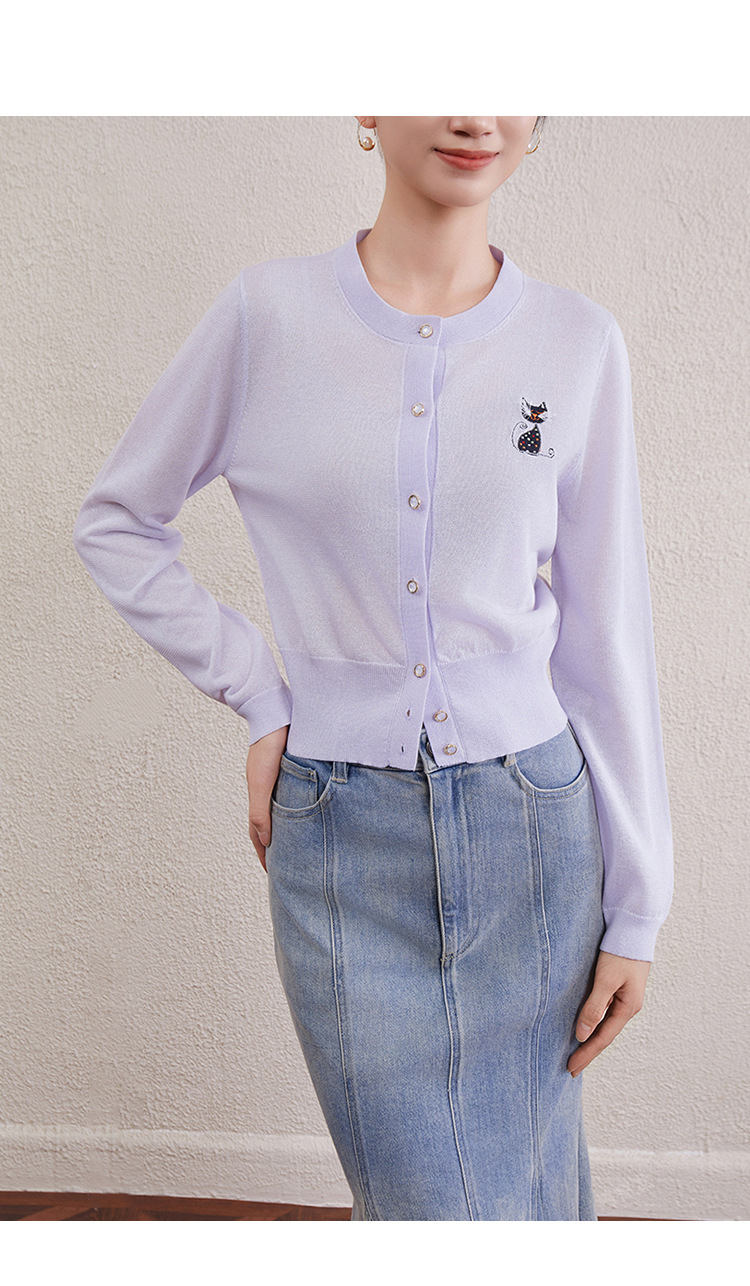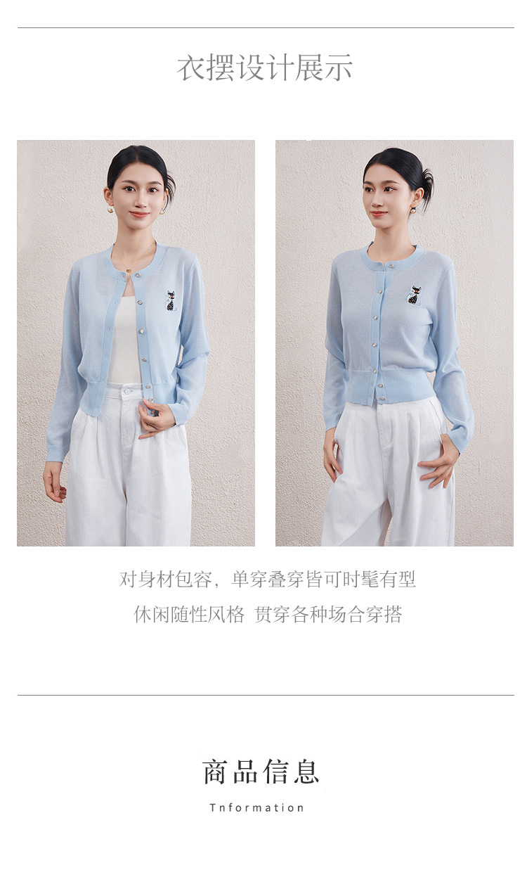 「自」全新升级【铂金会员284/天猫379/差价95】(44441)洛诗琳气质小猫刺绣针织上衣2025秋季百搭显瘦针织开衫女