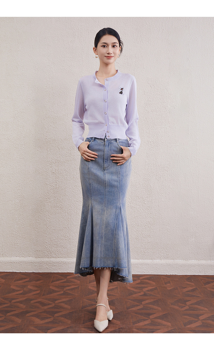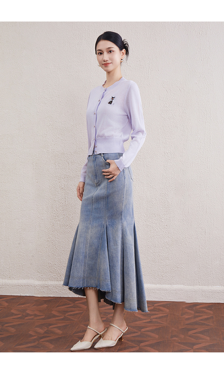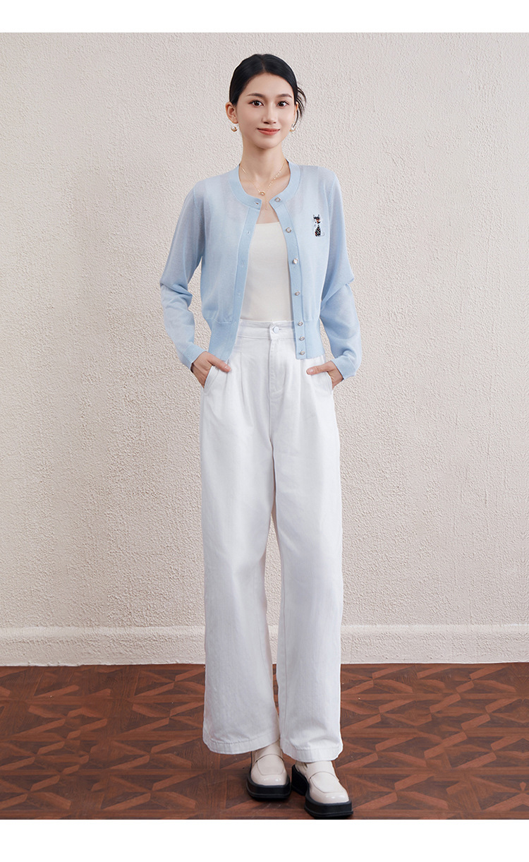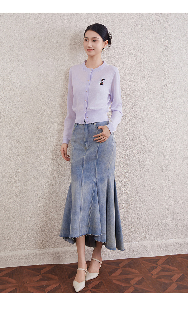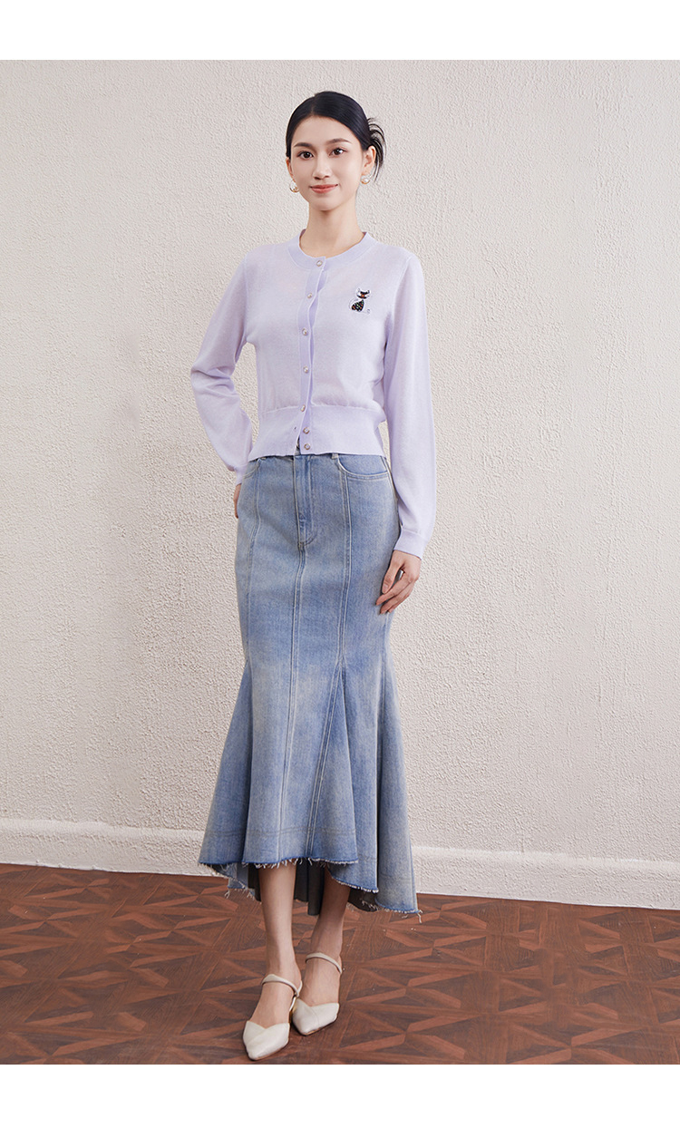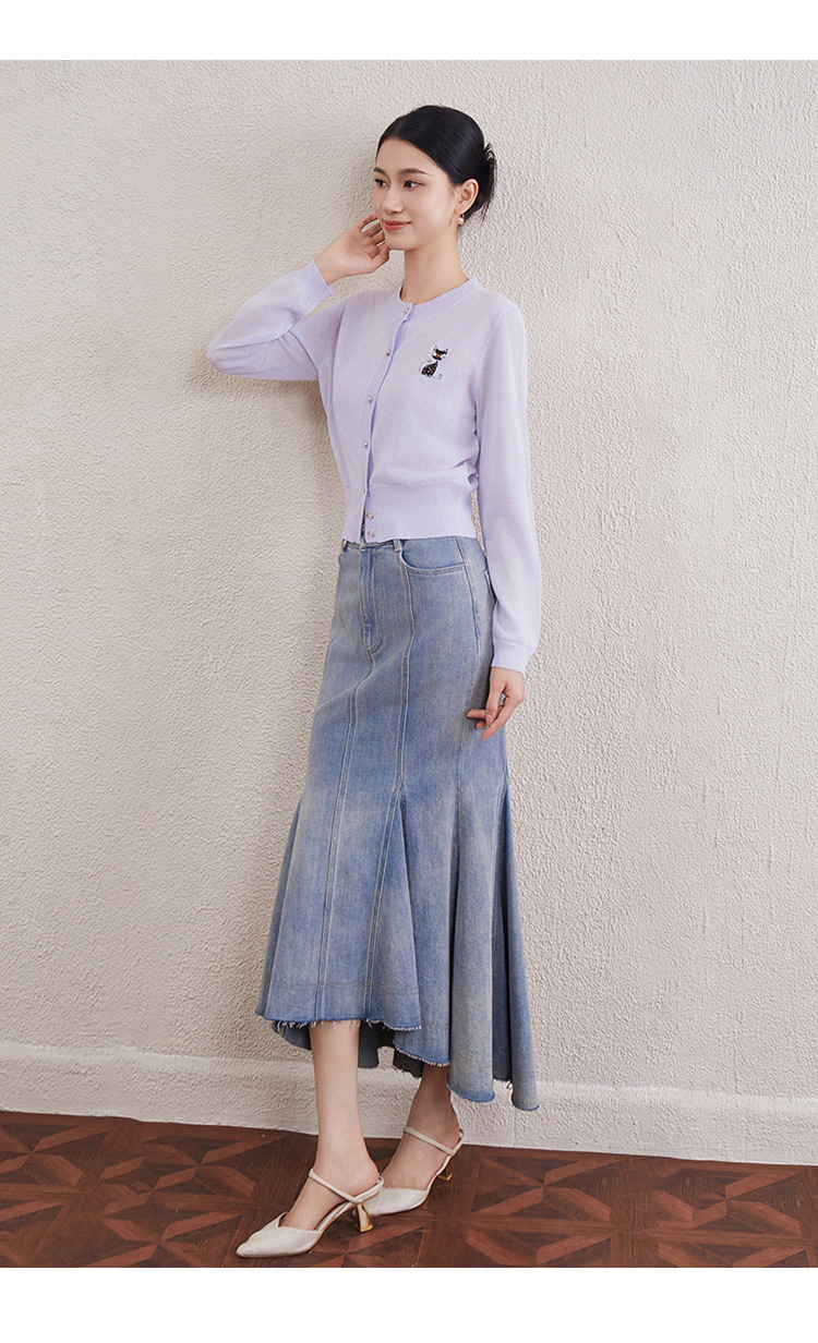 「自」全新升级【铂金会员284/天猫379/差价95】(44441)洛诗琳气质小猫刺绣针织上衣2025秋季百搭显瘦针织开衫女