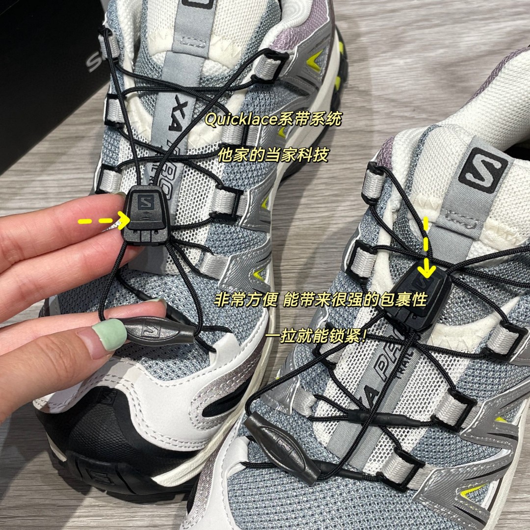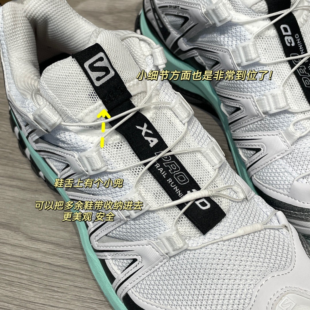 鞋带Quicklace系带系统,非常方便,能带来很强的包裹性,一拉就能锁紧!另外鞋舌上有个小兜,可以把多余鞋带收纳进去,更美观 小细节方面也是非常到位了!