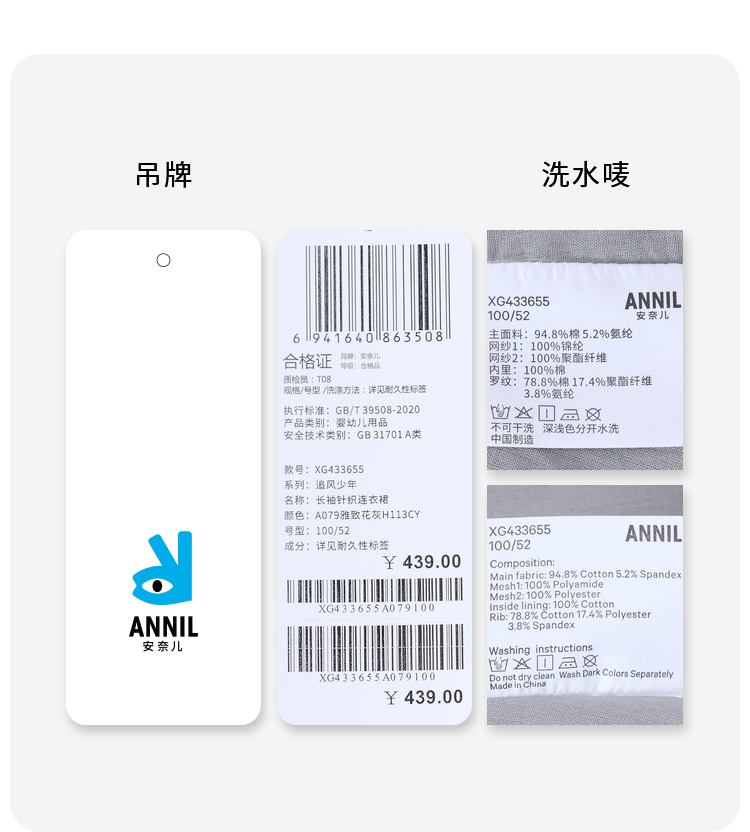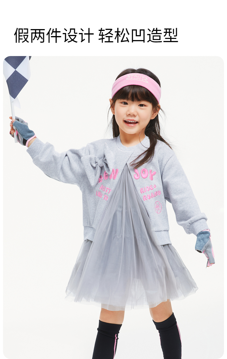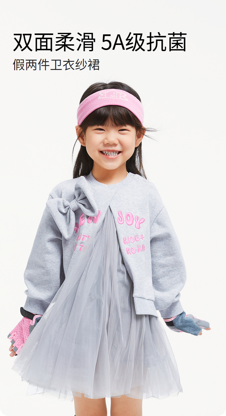 【5A级抗菌】女童假两件卫衣纱裙新款安奈儿童装实体店同款XG433655