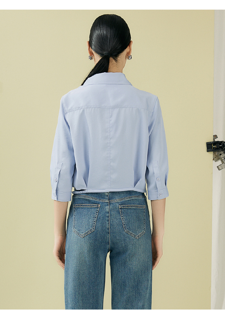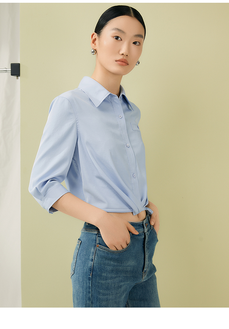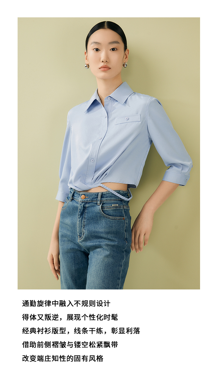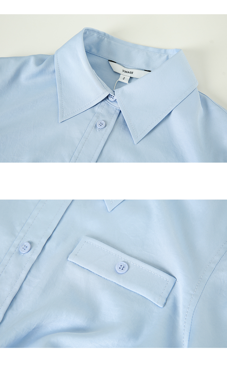 VIMAGE纬漫纪夏季新款百搭小众设计感短款衬衣衬衫V1909517