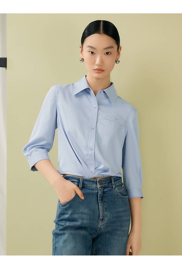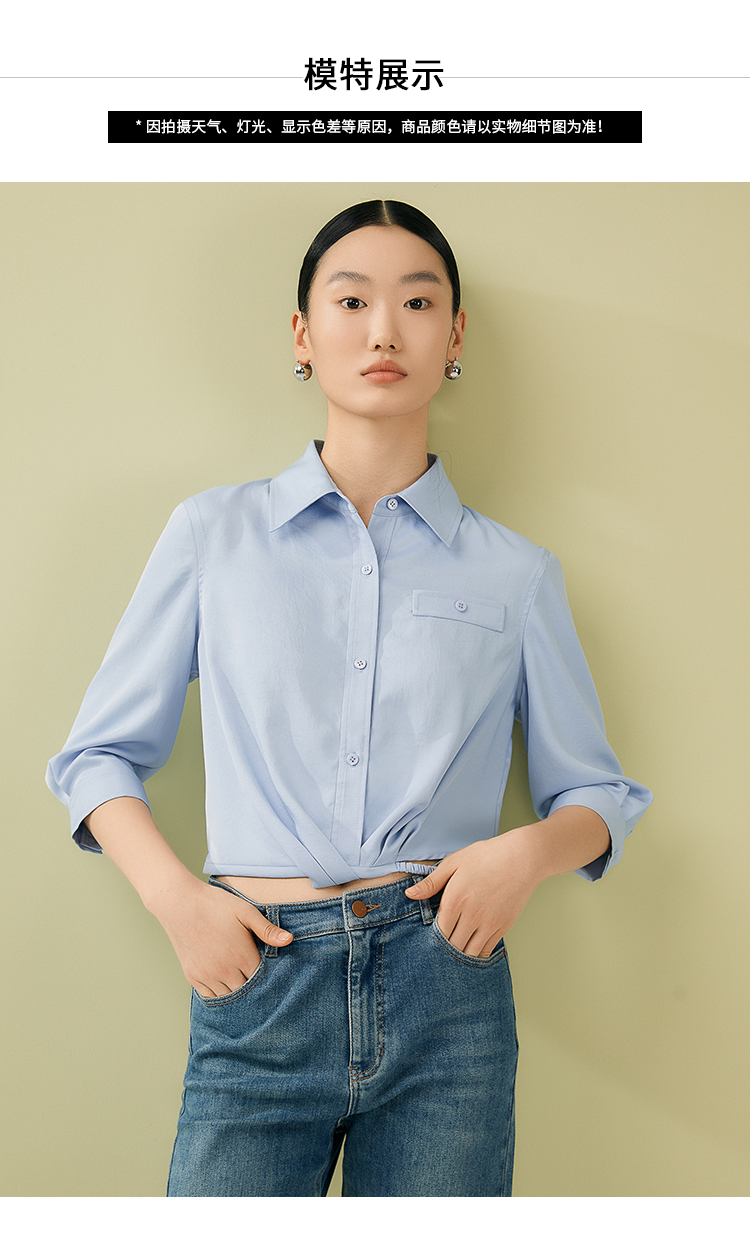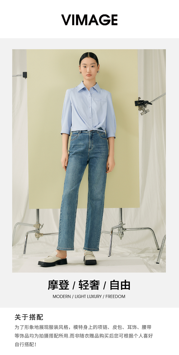 VIMAGE纬漫纪夏季新款百搭小众设计感短款衬衣衬衫V1909517