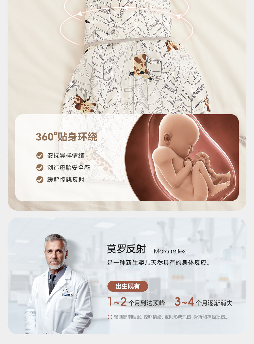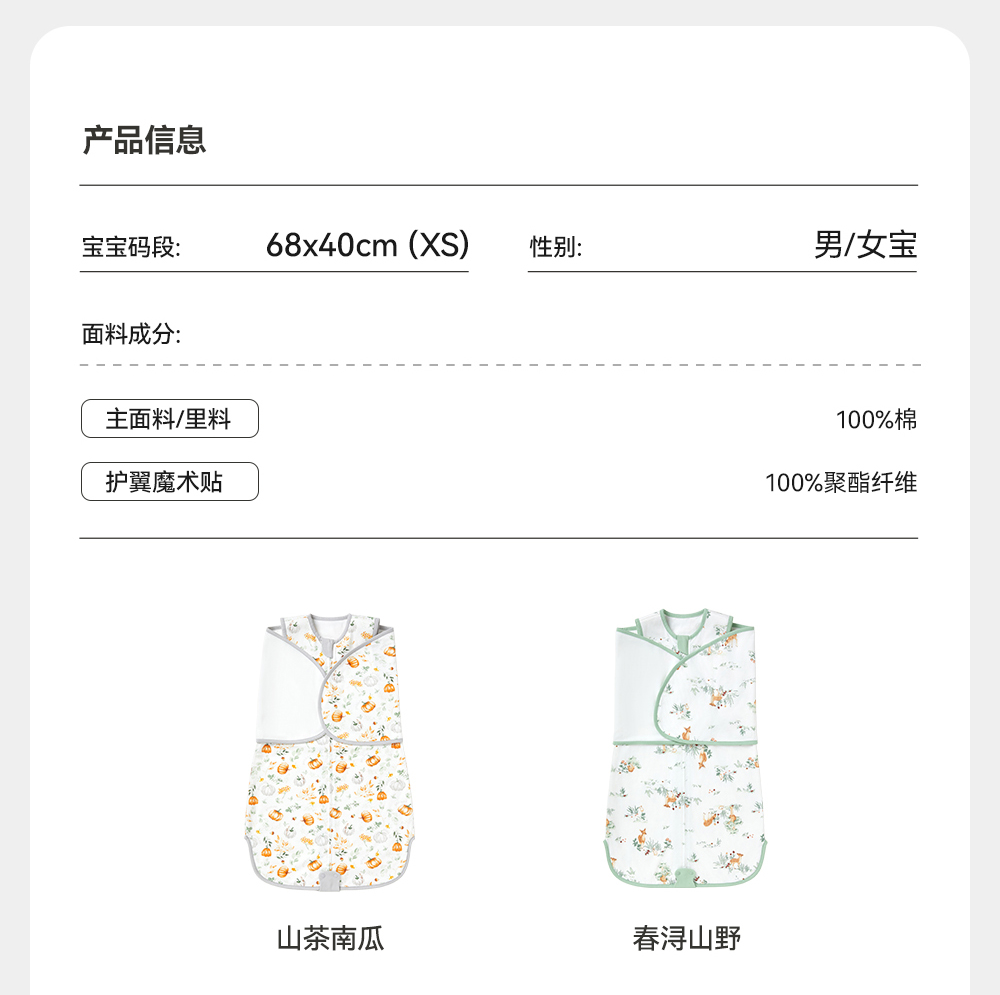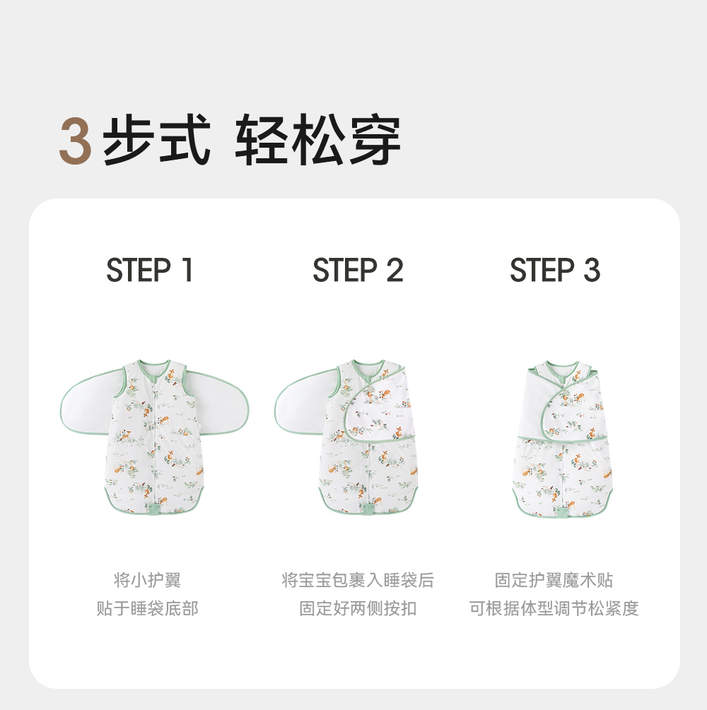 【防惊跳+乳木果】英氏防惊跳睡袋抑菌新生儿宝宝恒温襁褓
