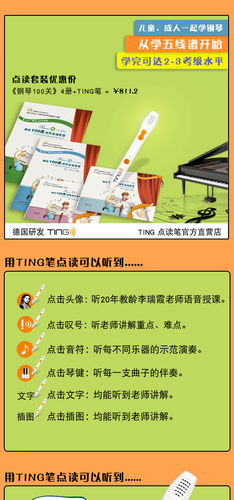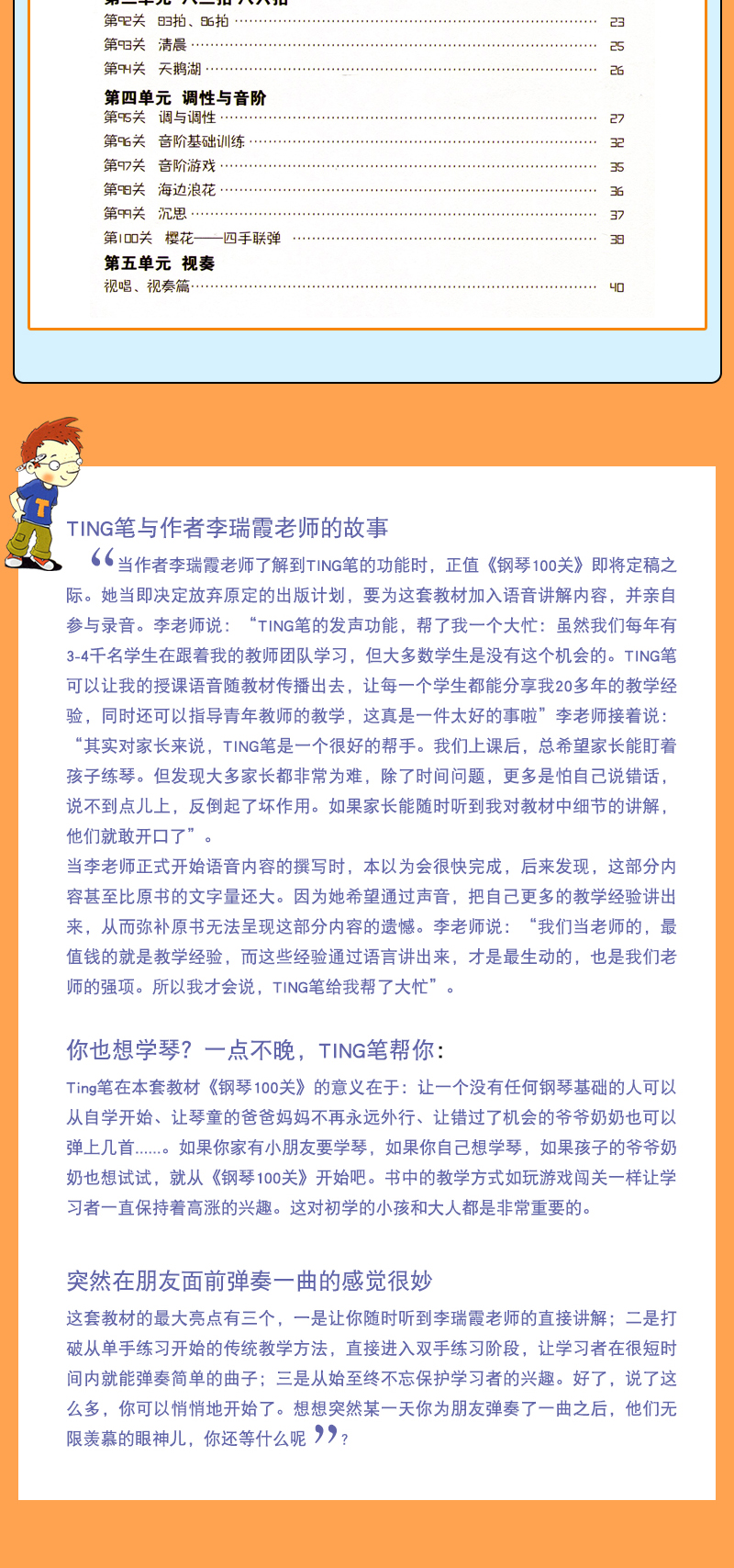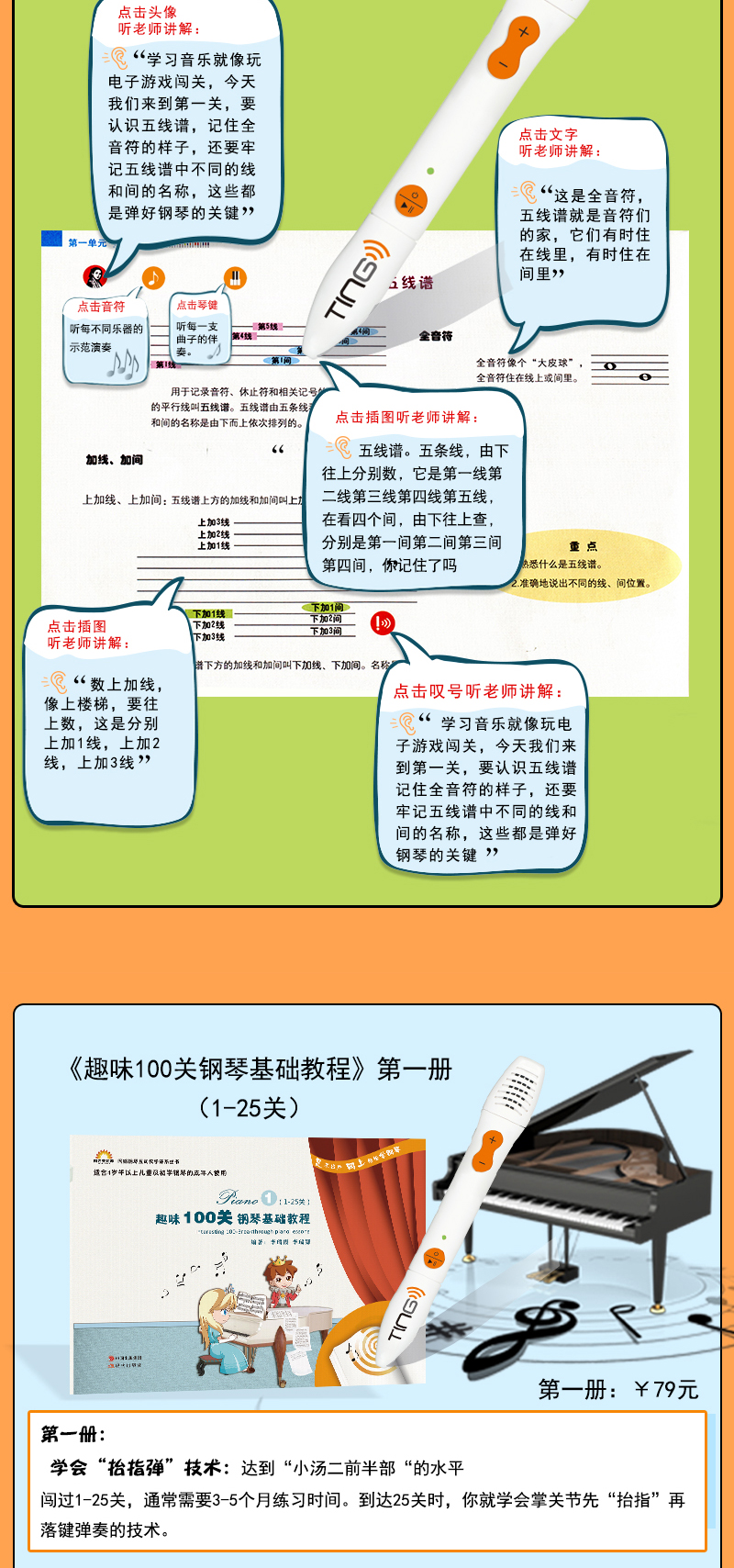 套装(含TING点读笔)趣味100关钢琴 自学零基础教材